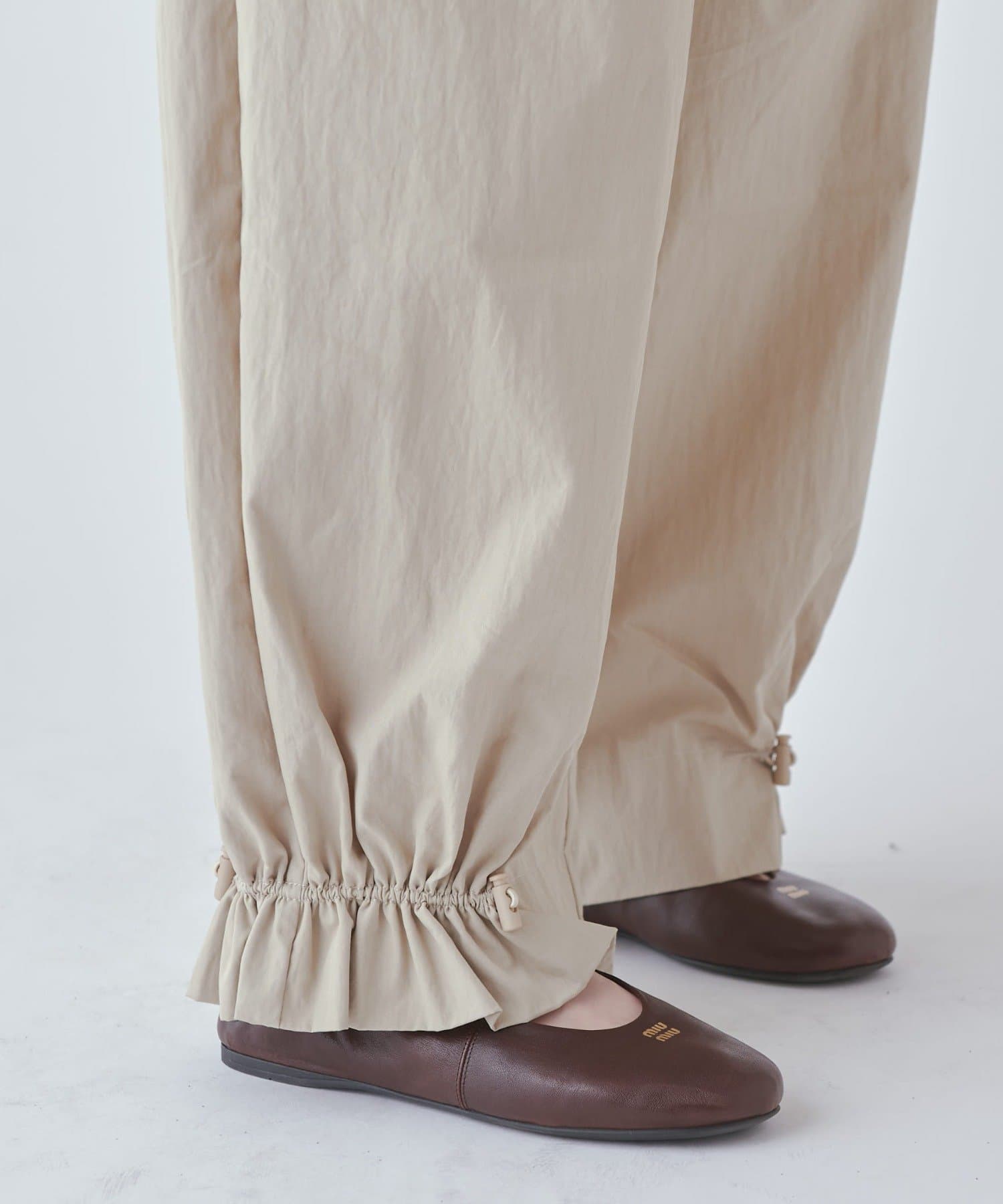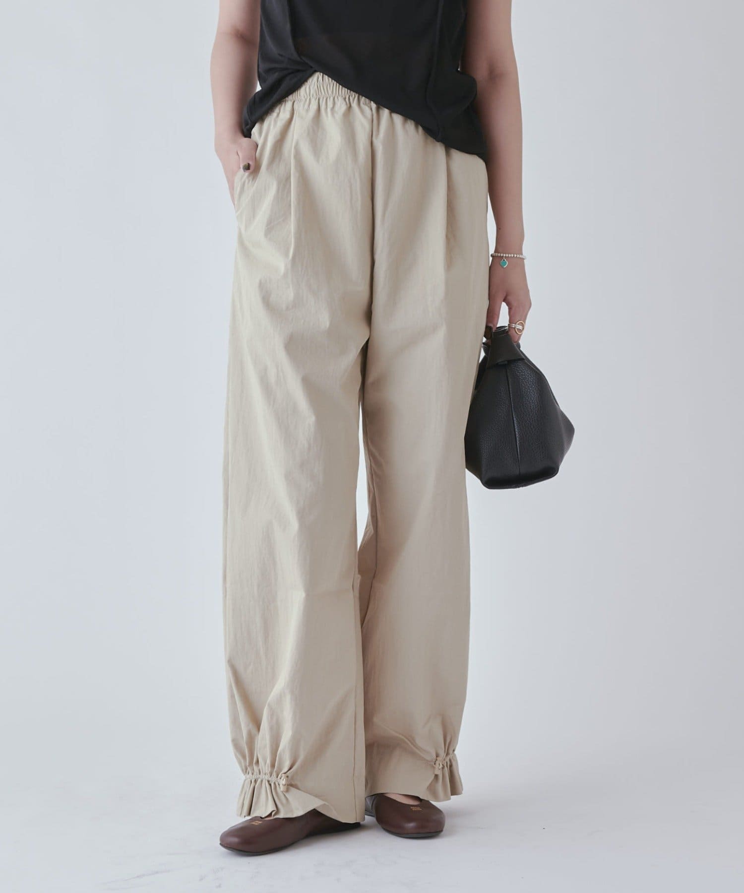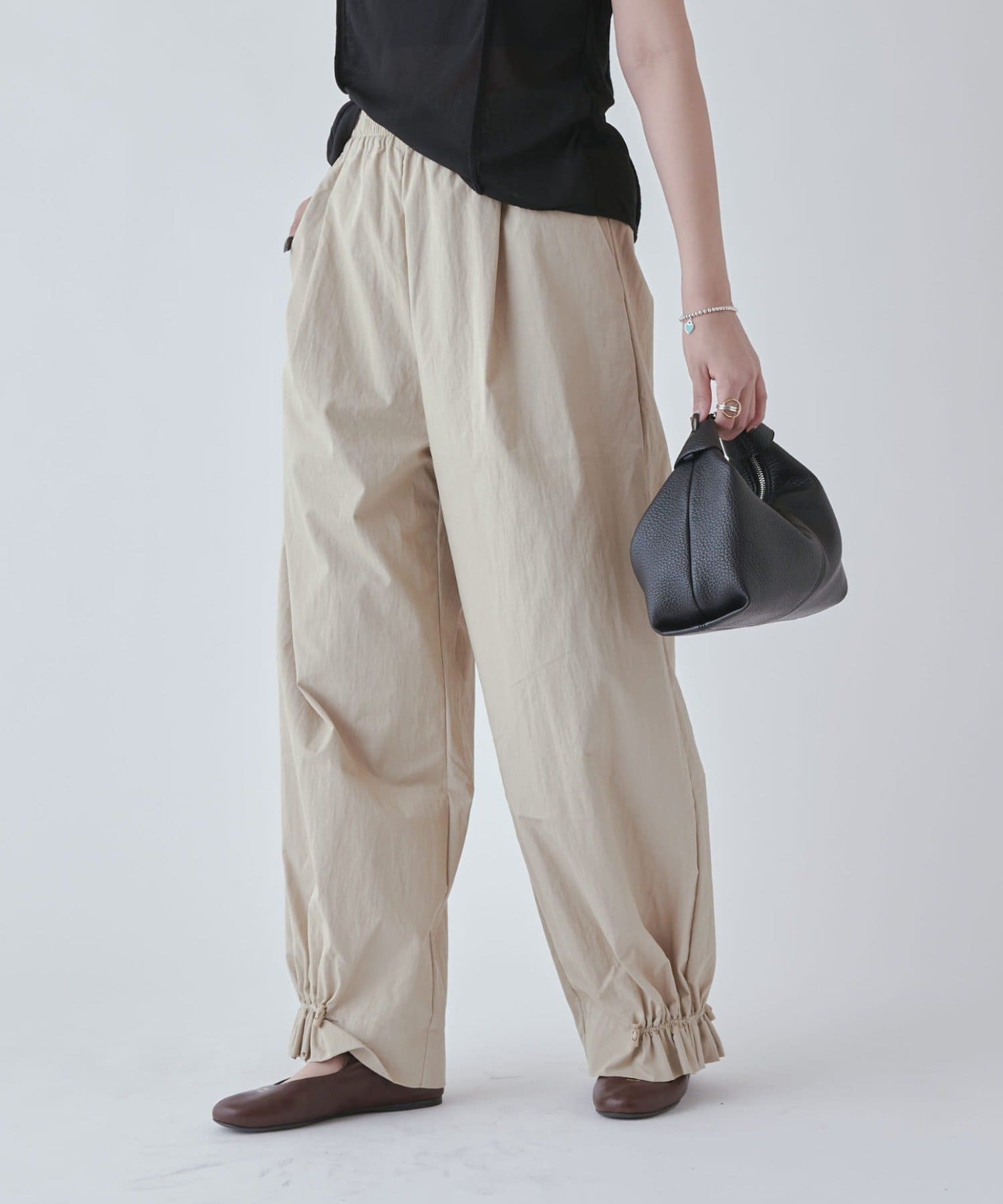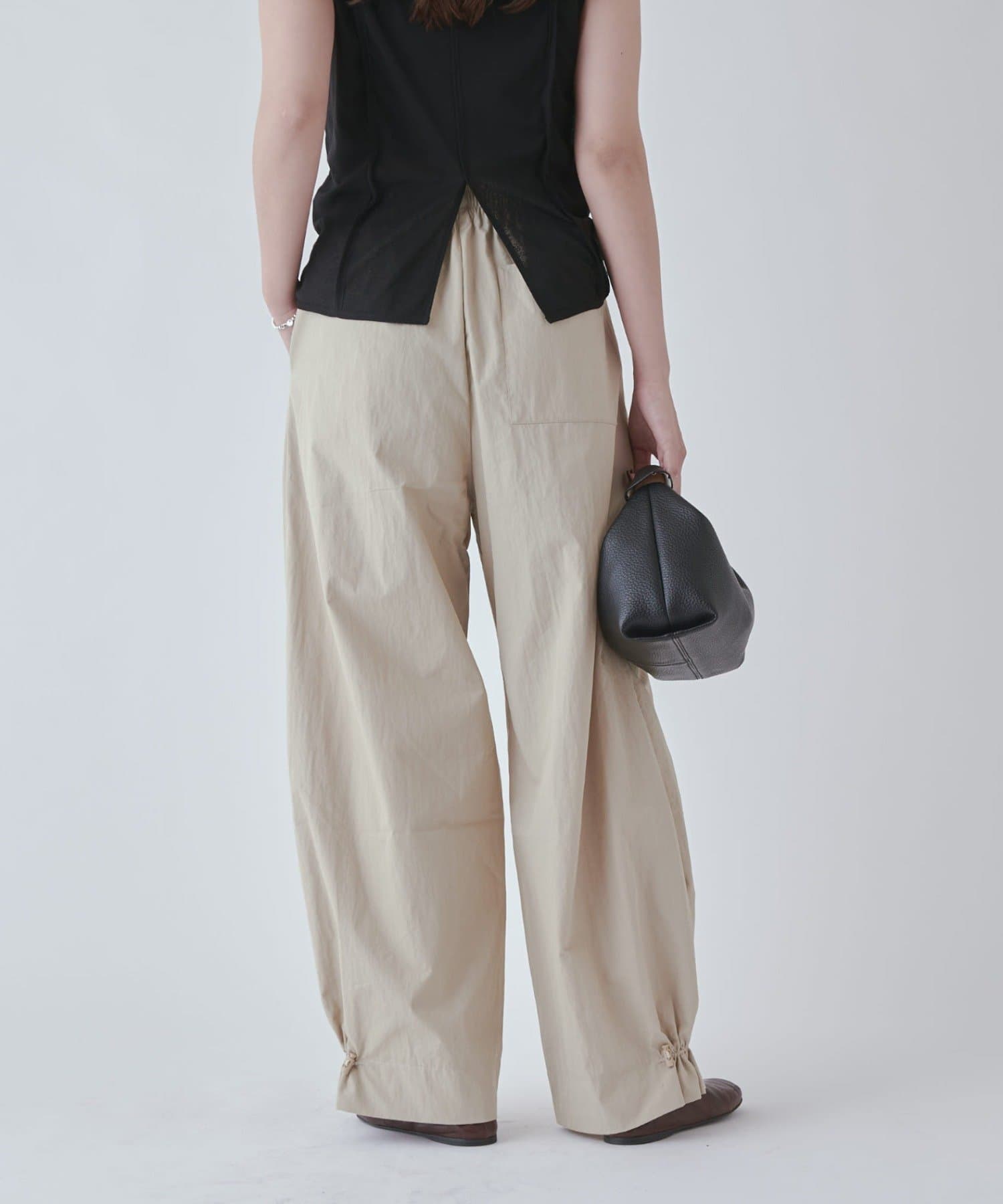 足首にはドローコードがついていて、少し絞ると全体のシルエットが変わり雰囲気も変わります。