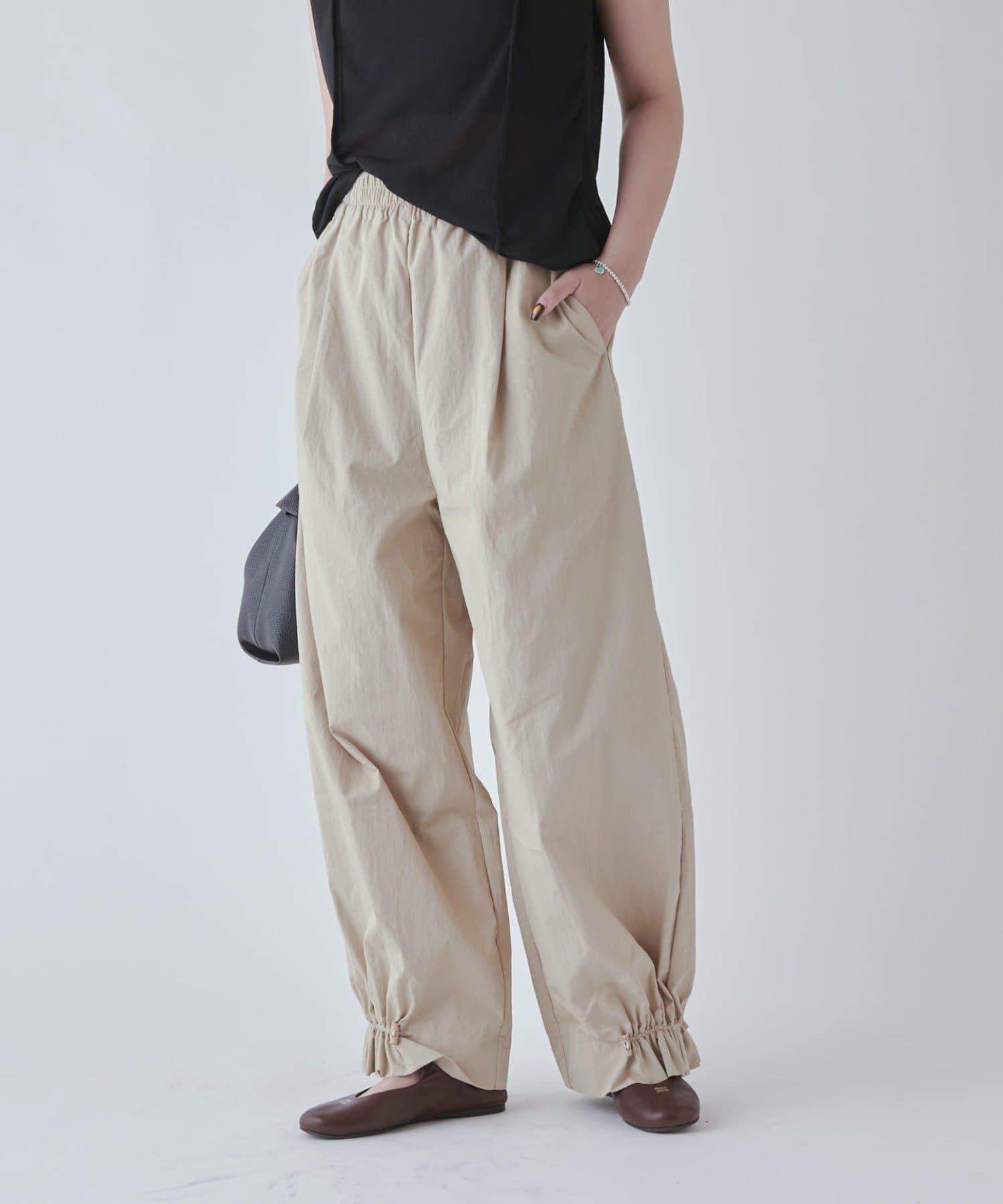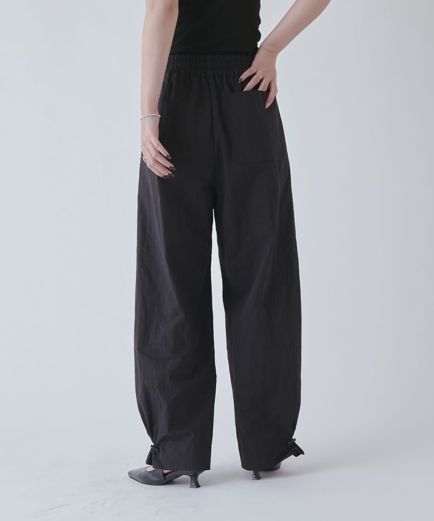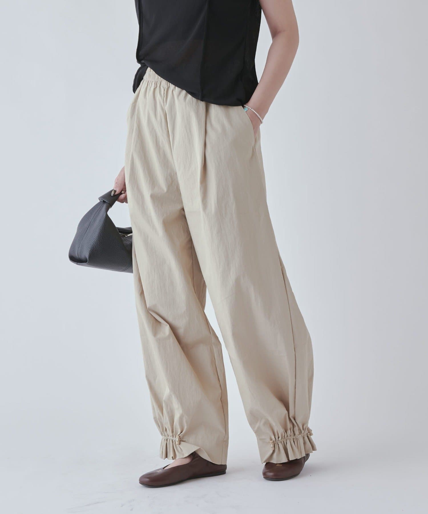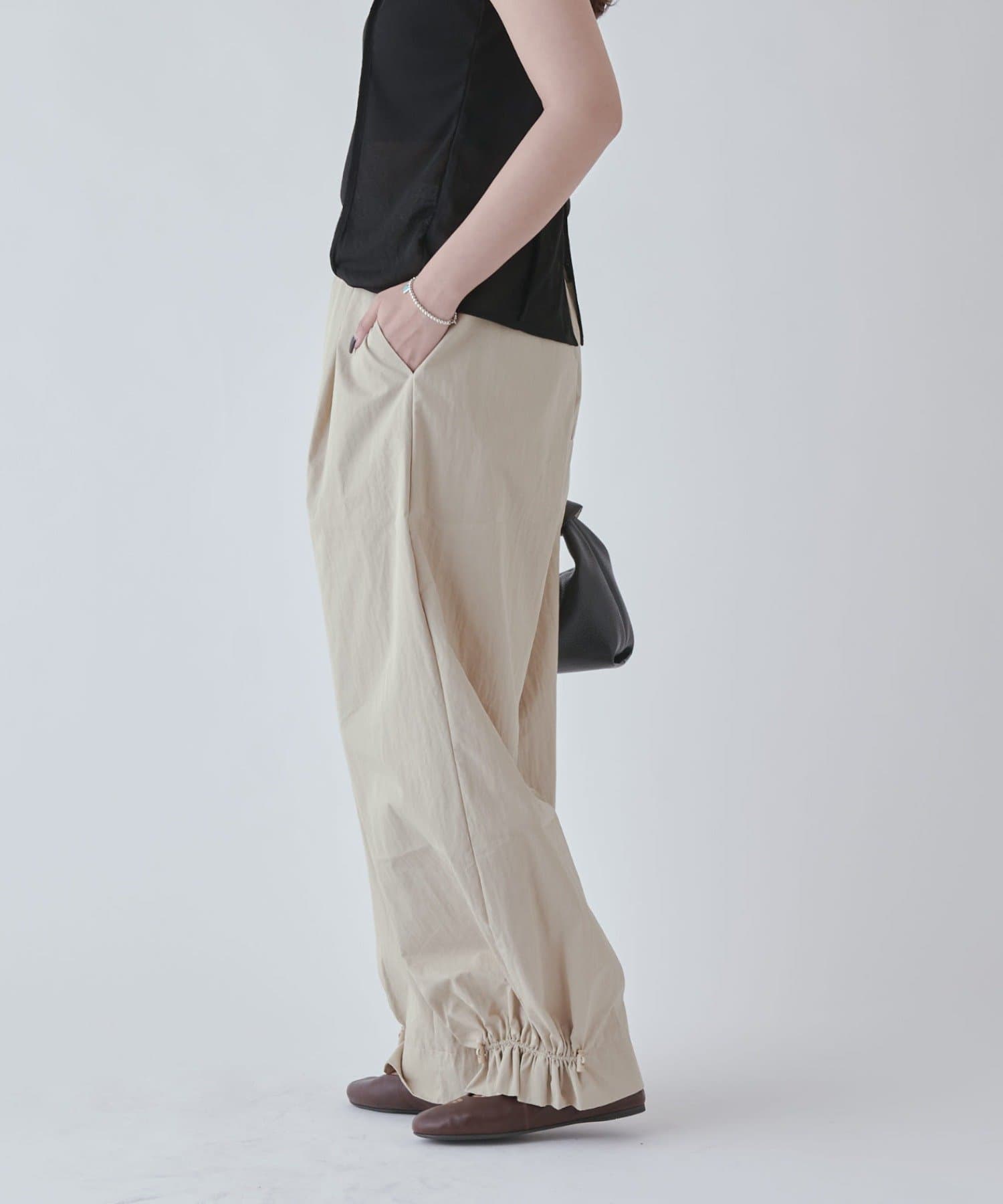 足首にはドローコードがついていて、少し絞ると全体のシルエットが変わり雰囲気も変わります。