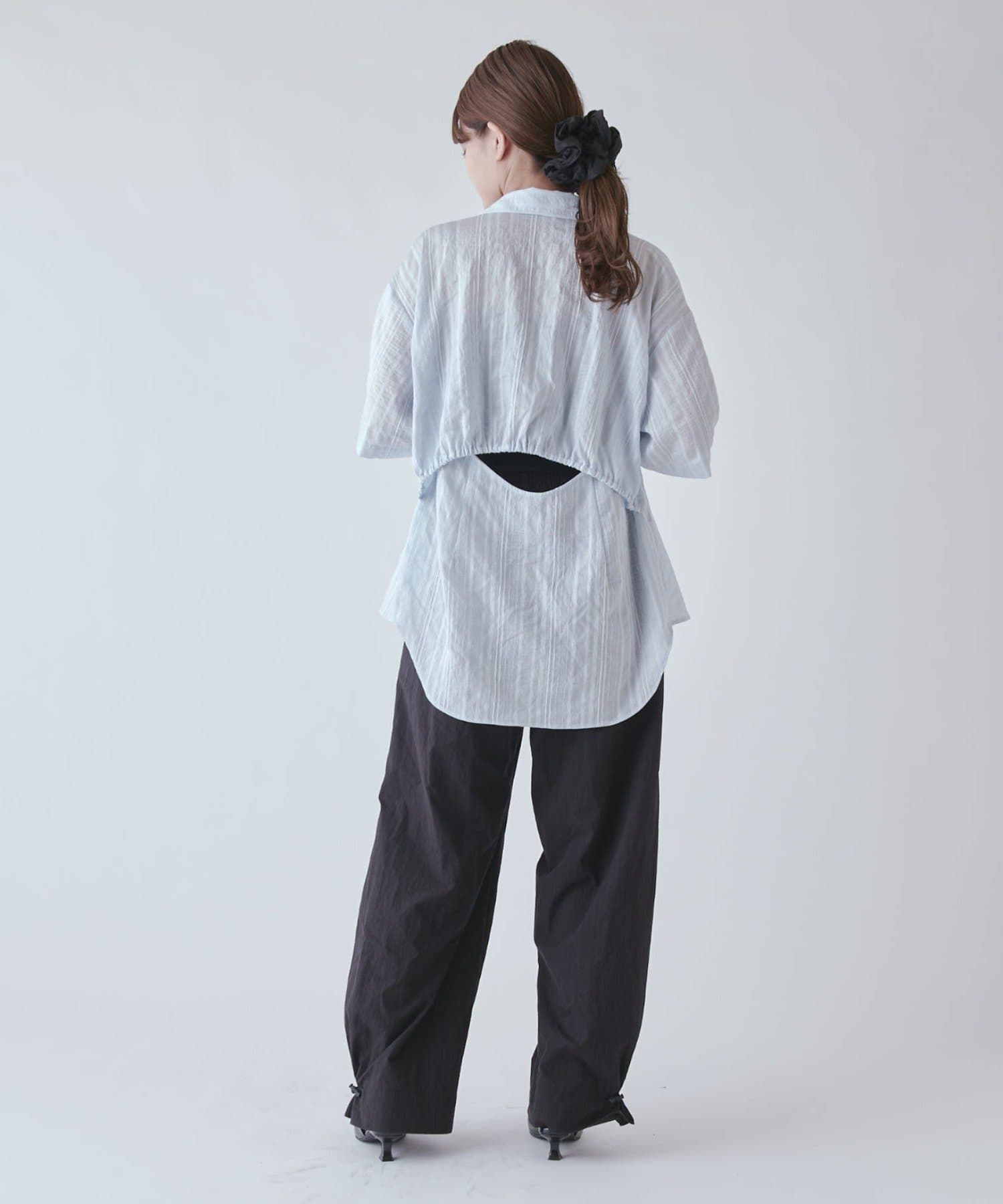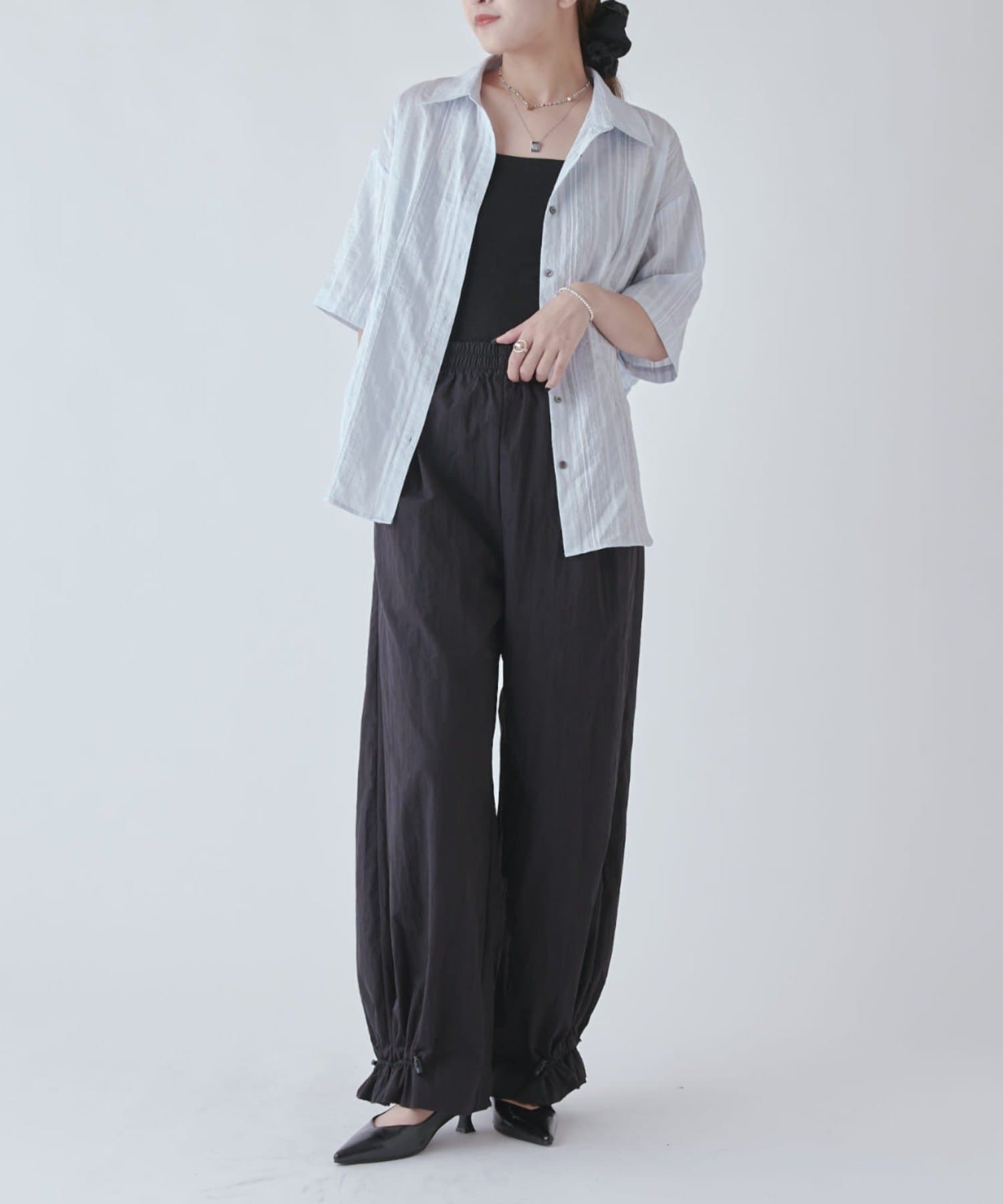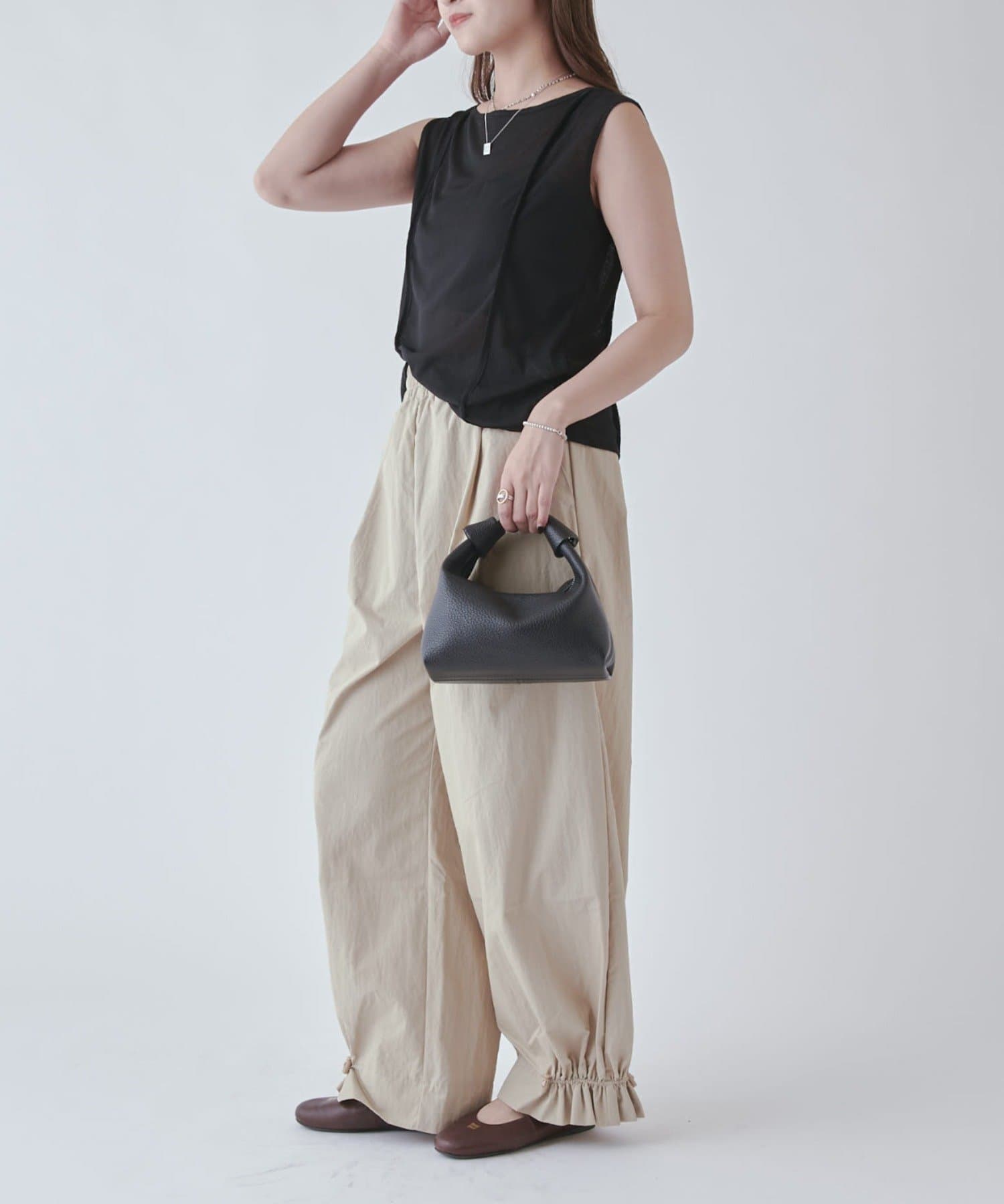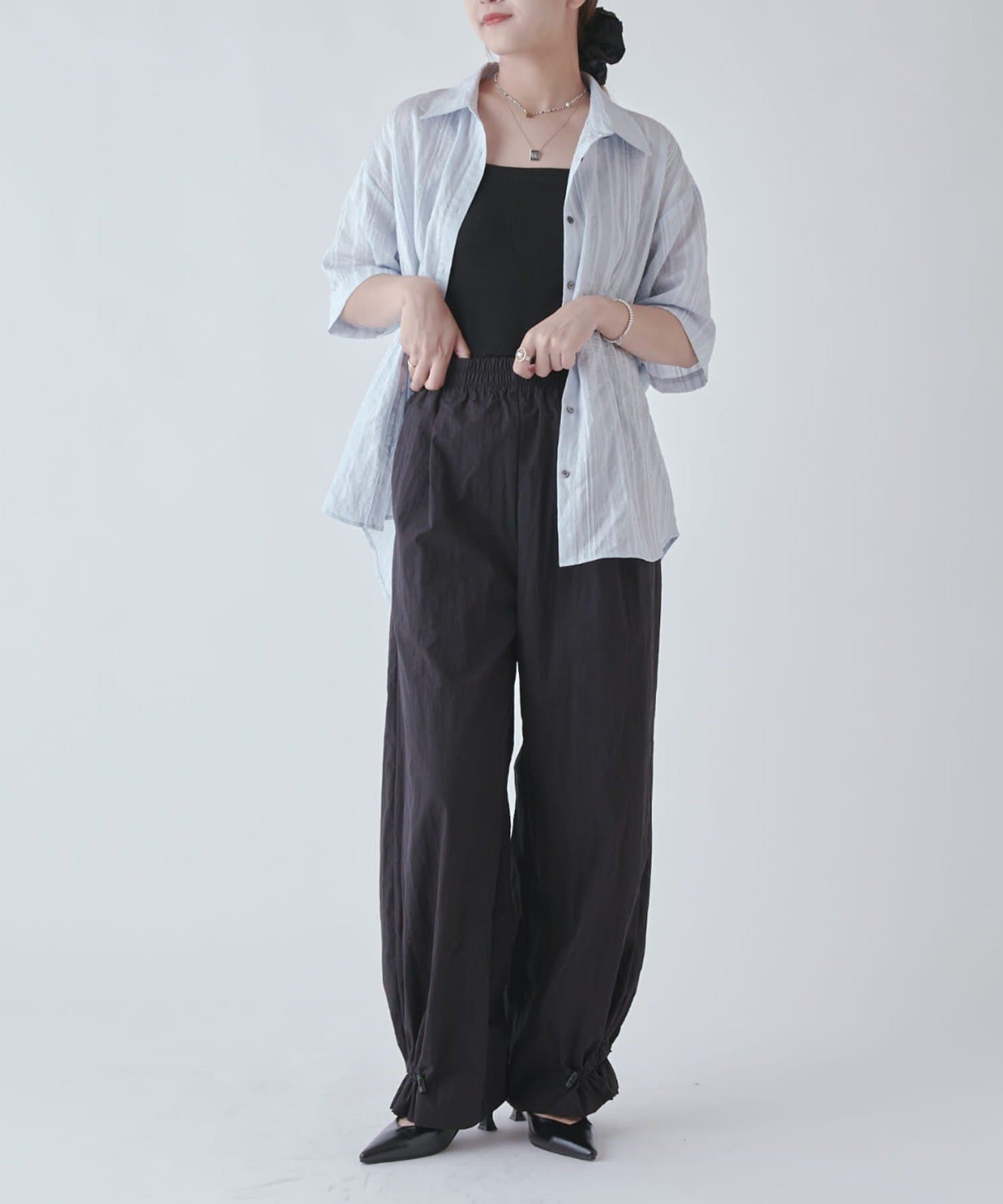 足首にはドローコードがついていて、少し絞ると全体のシルエットが変わり雰囲気も変わります。