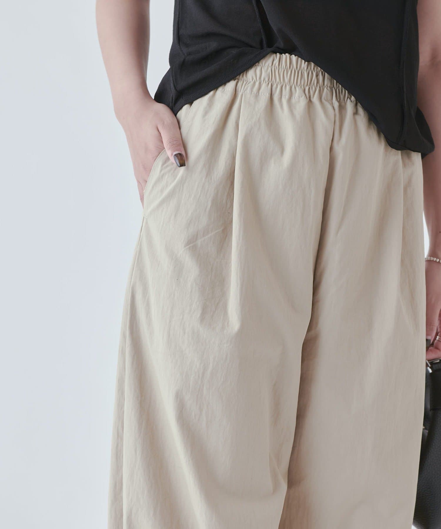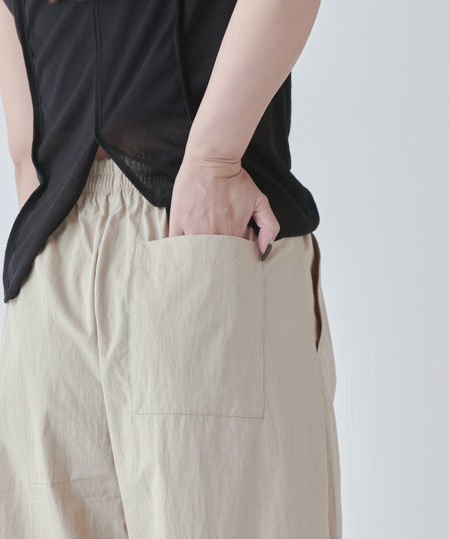 表面にシワ感もあり、シャカシャカとしたナイロン素材は薄手でサラッと軽い着用感です。