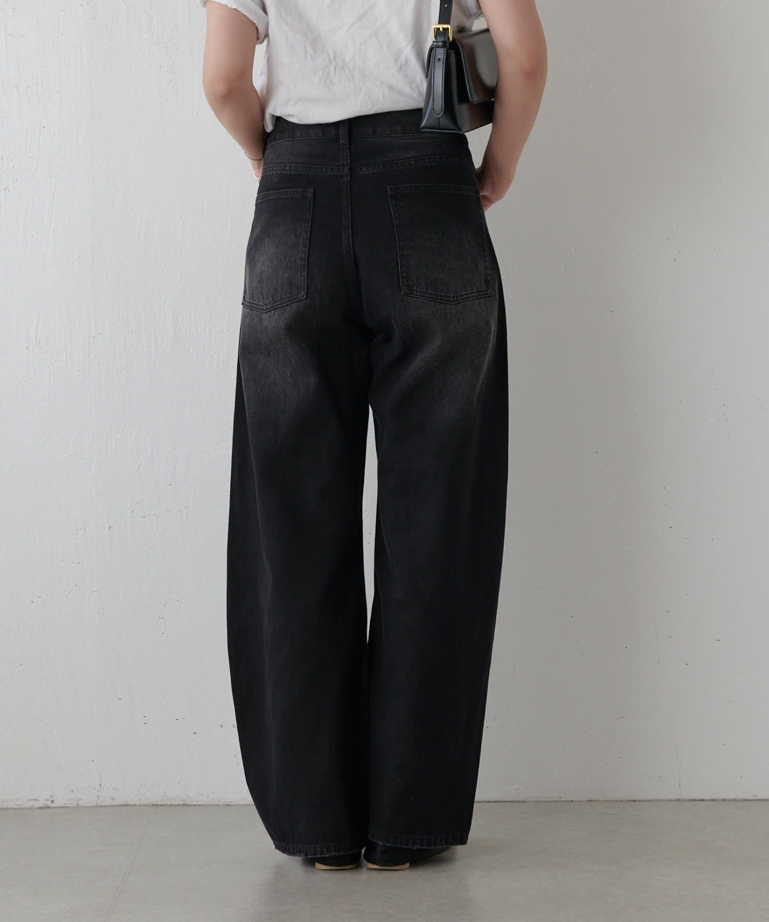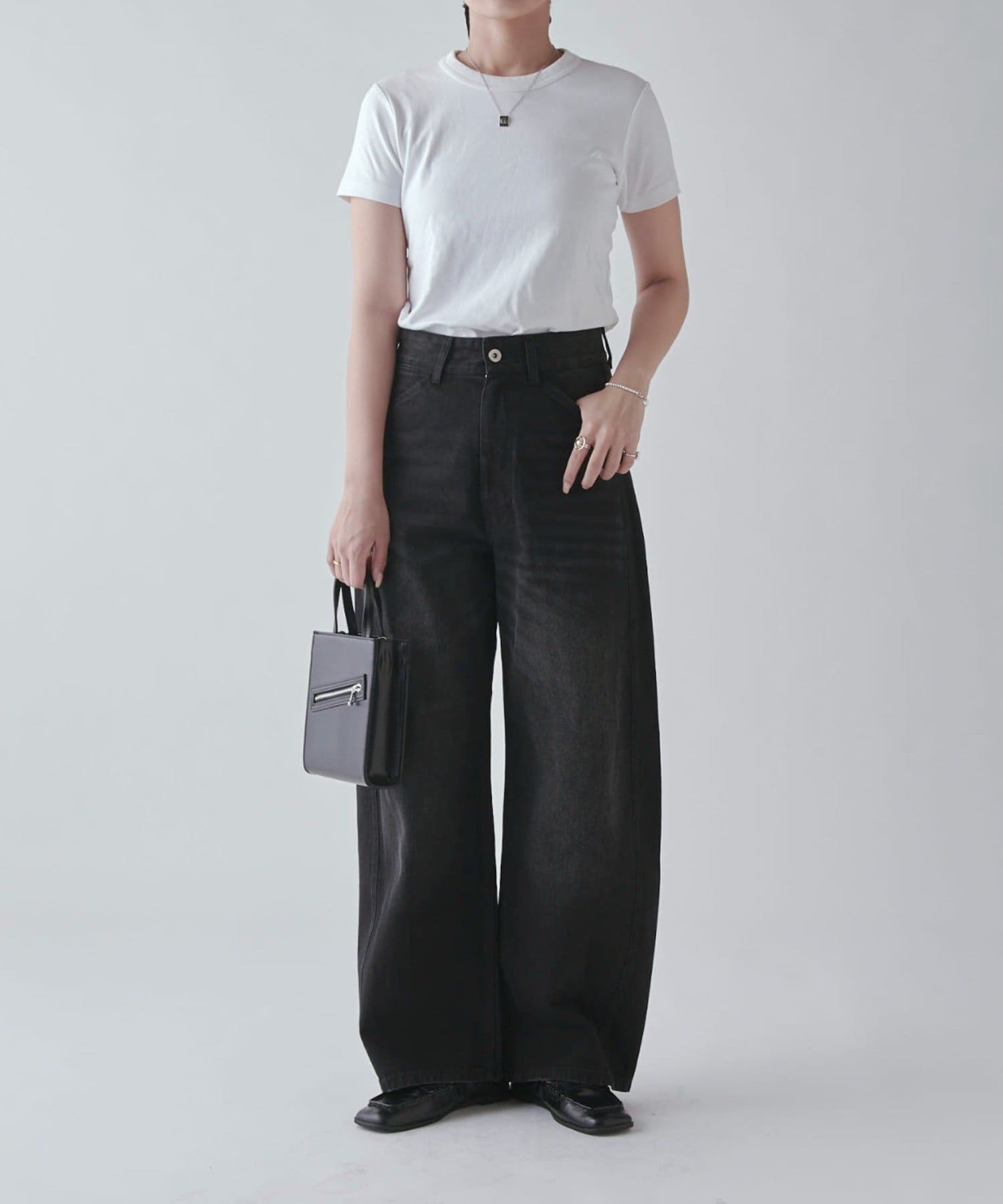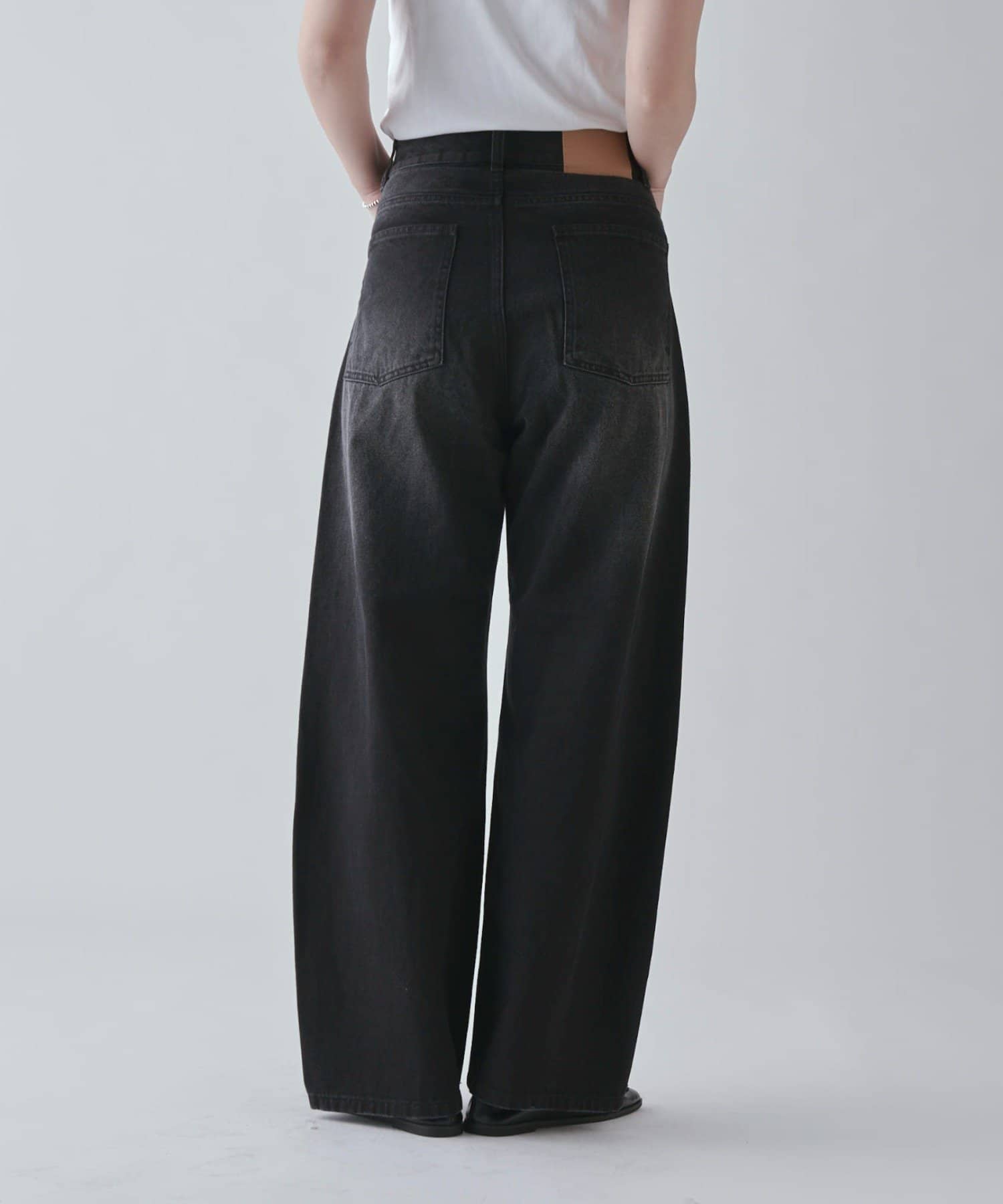 裾にかけてカーブしたレッグラインが特徴的なデニムパンツで、足のラインを気にすることなくお召いただけます。