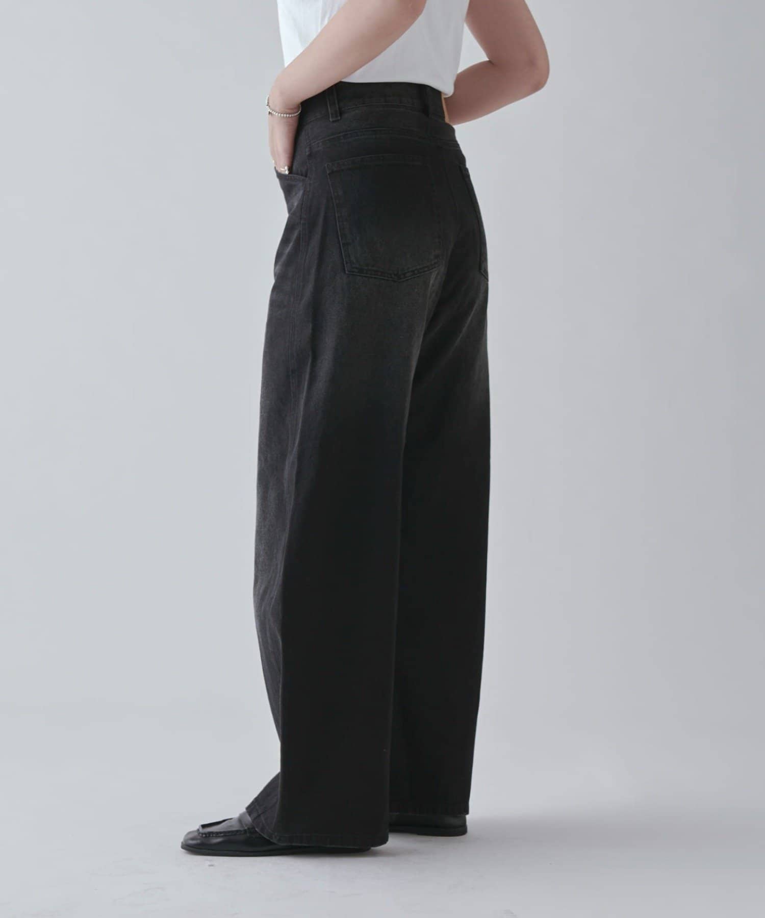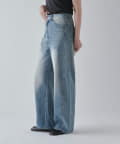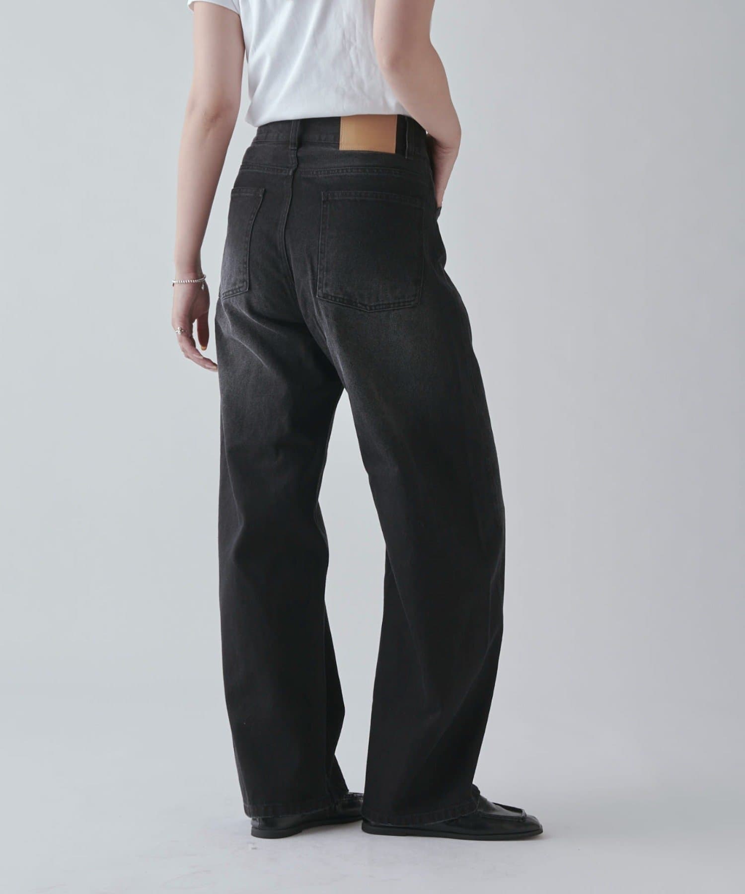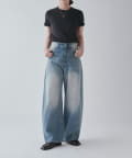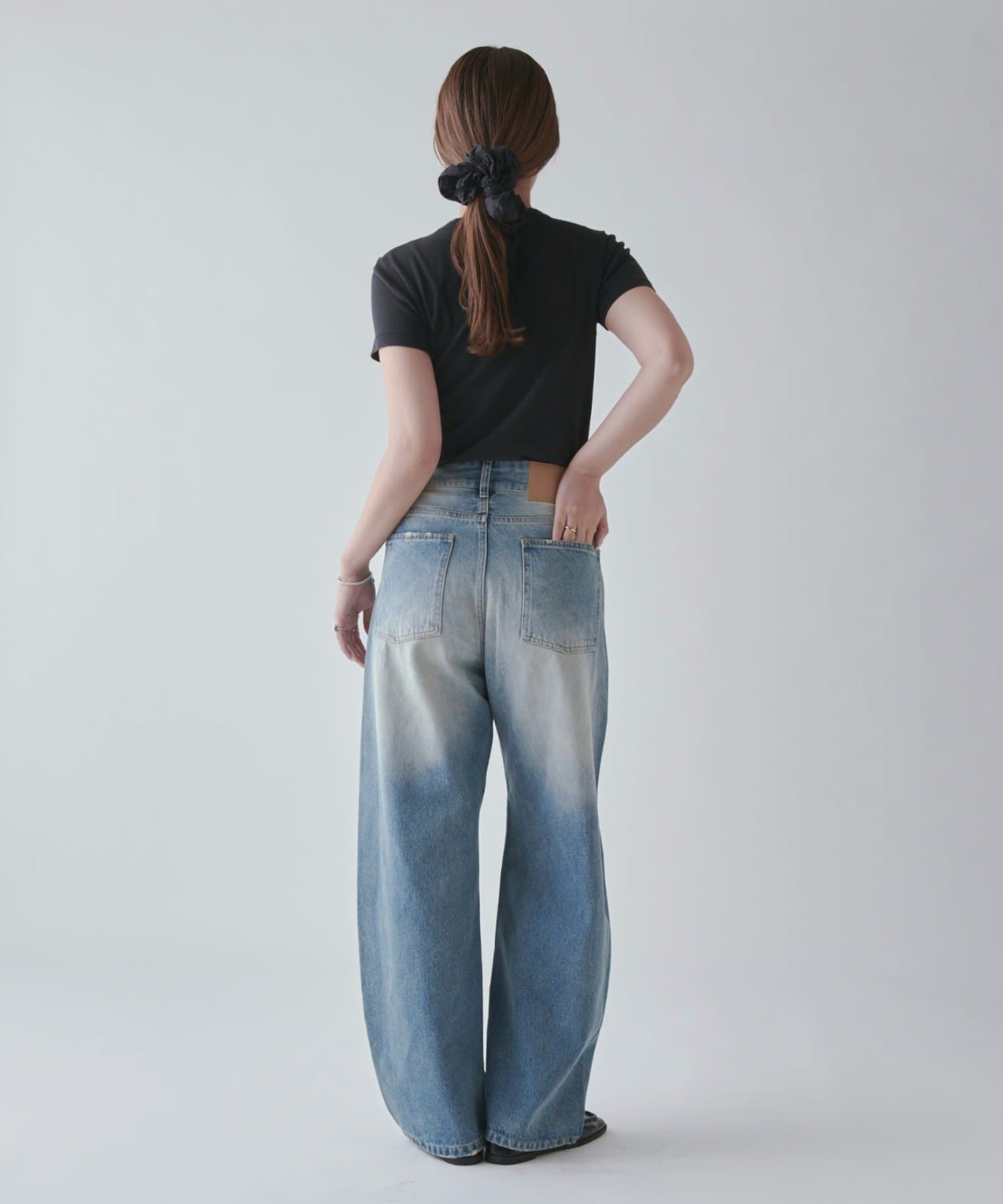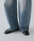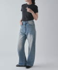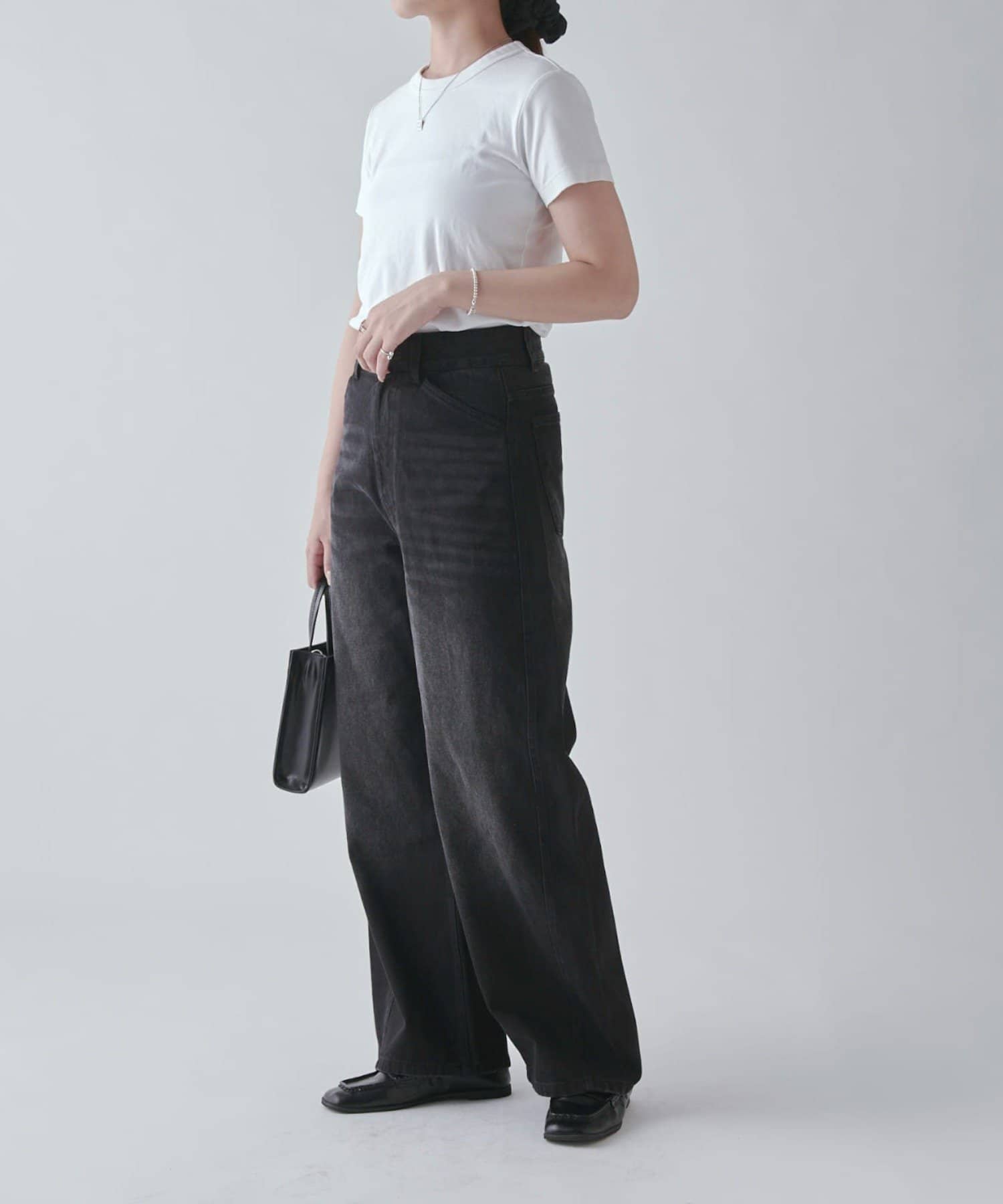 裾にかけてカーブしたレッグラインが特徴的なデニムパンツで、足のラインを気にすることなくお召いただけます。