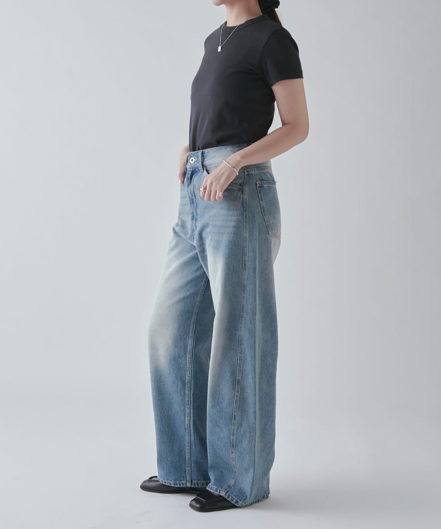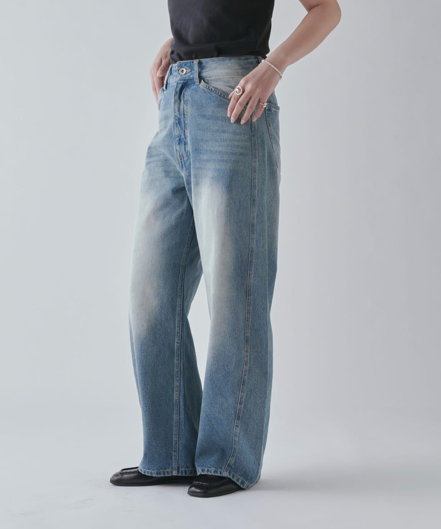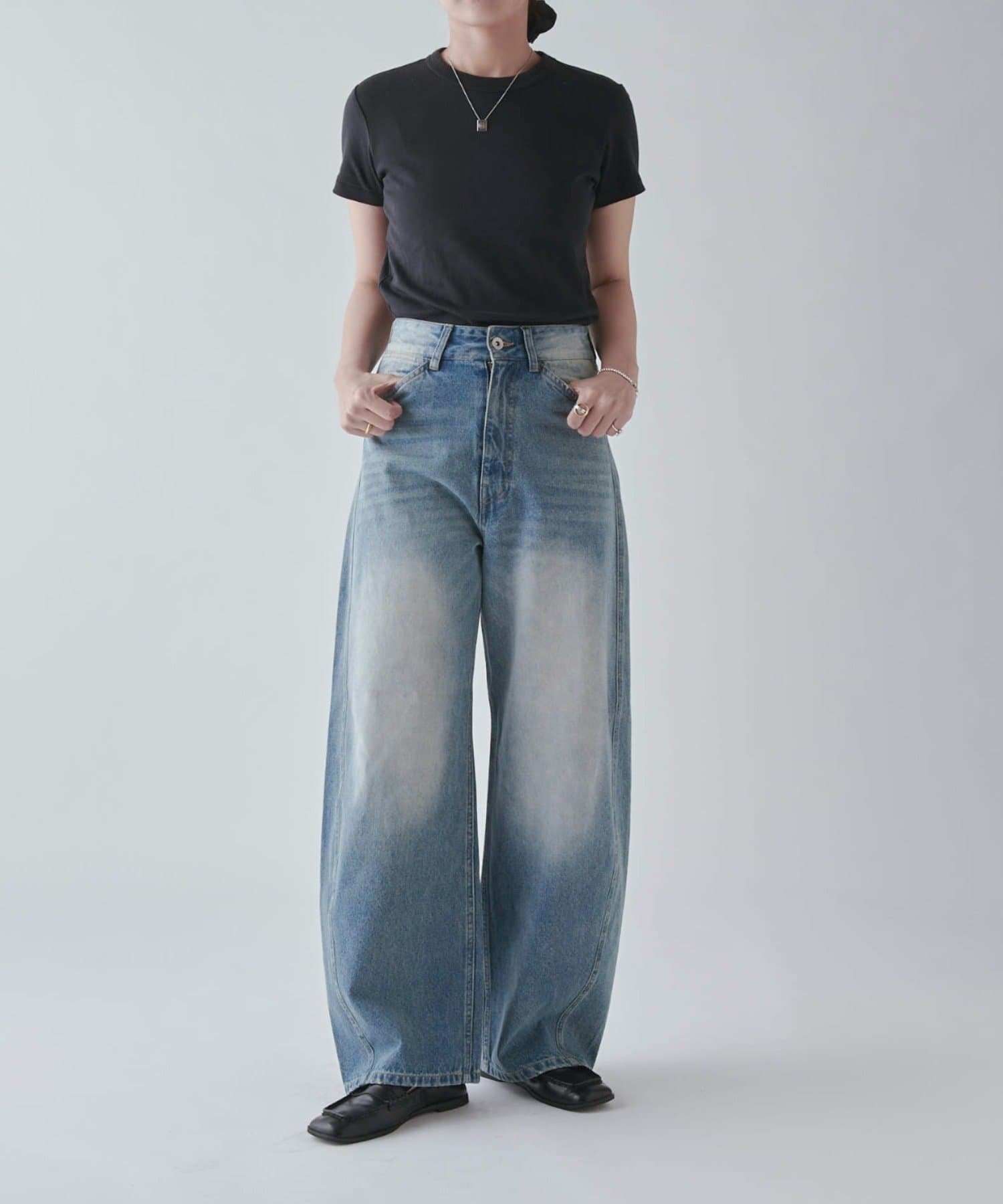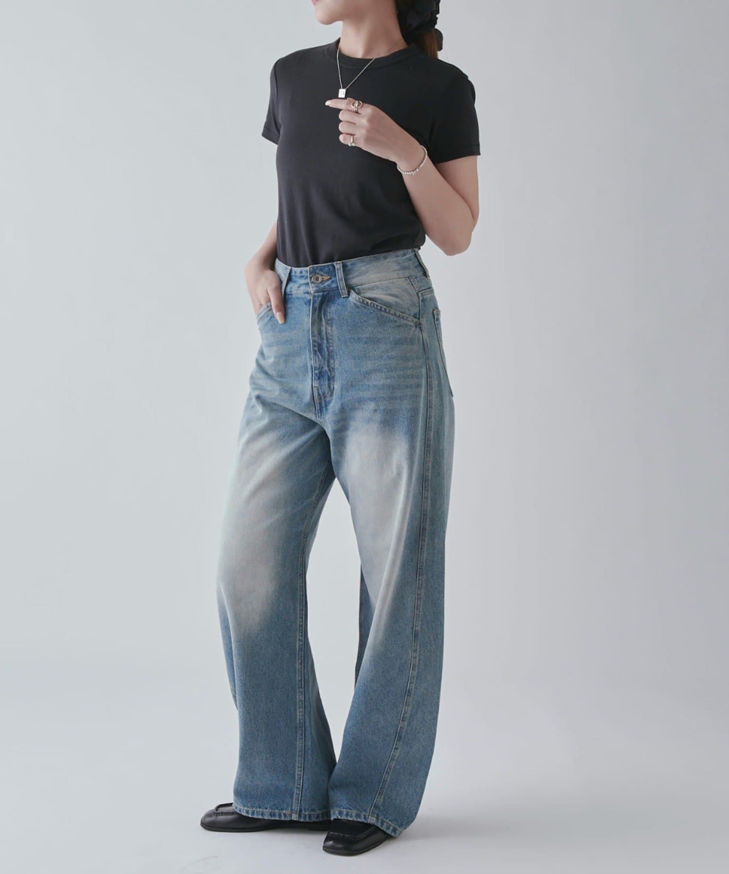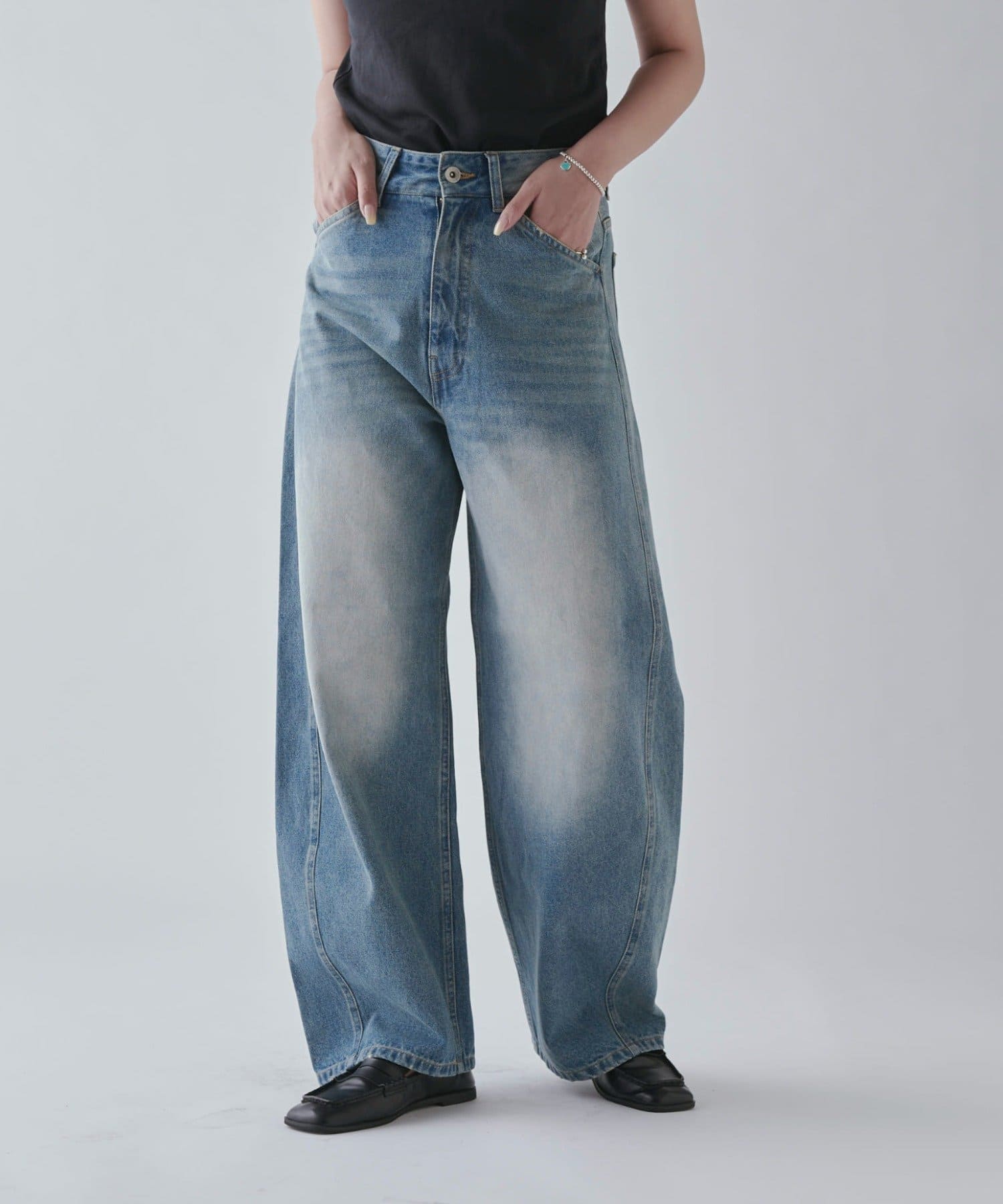 立体的なカーブラインがこなれ感を演出するデニムパンツ。