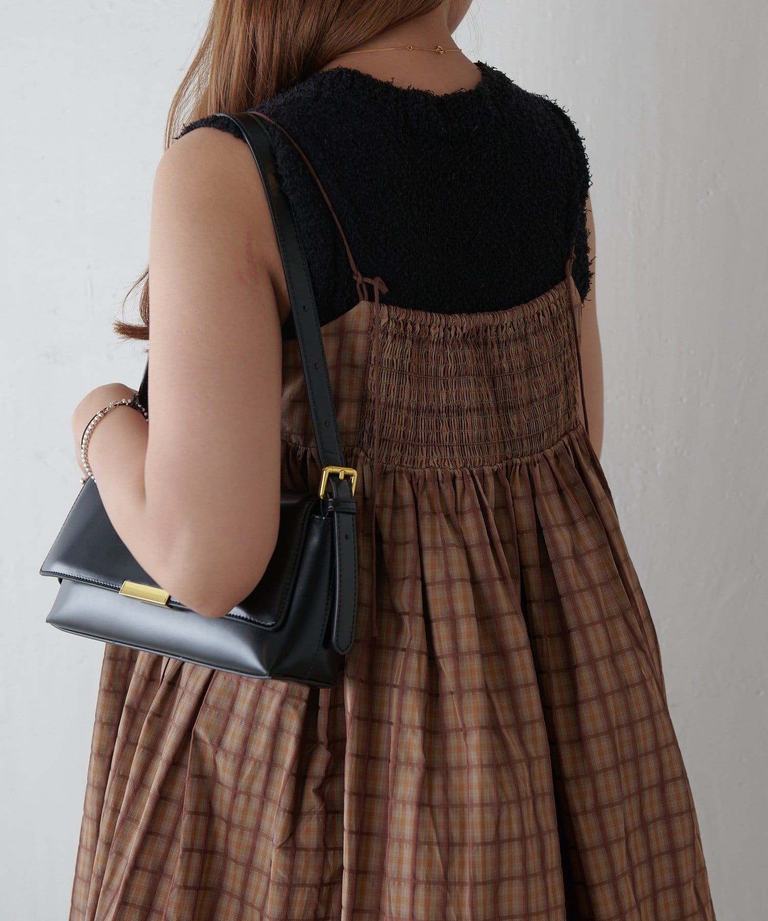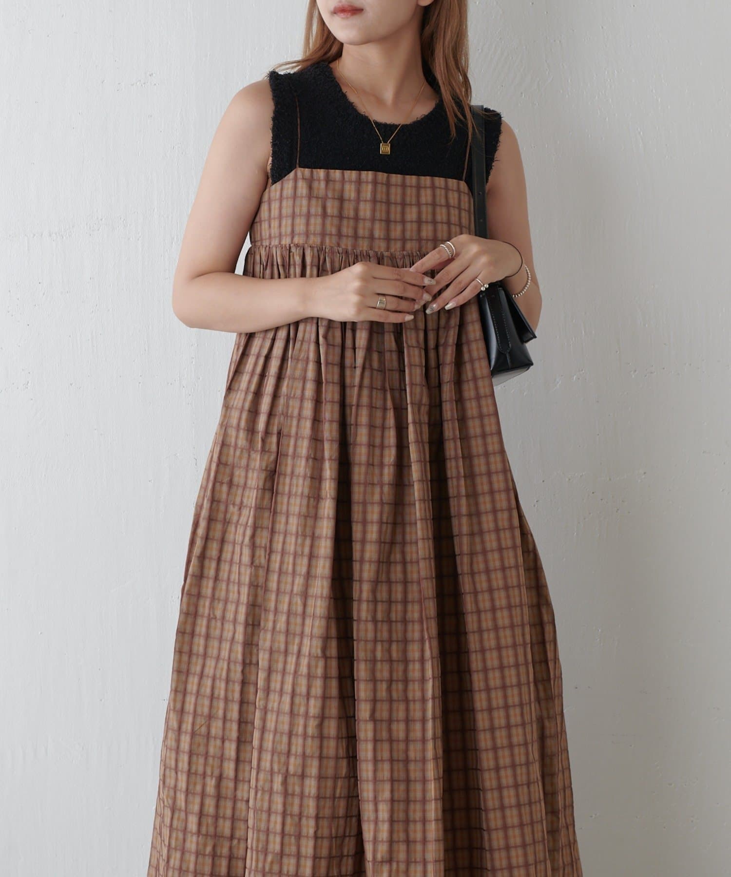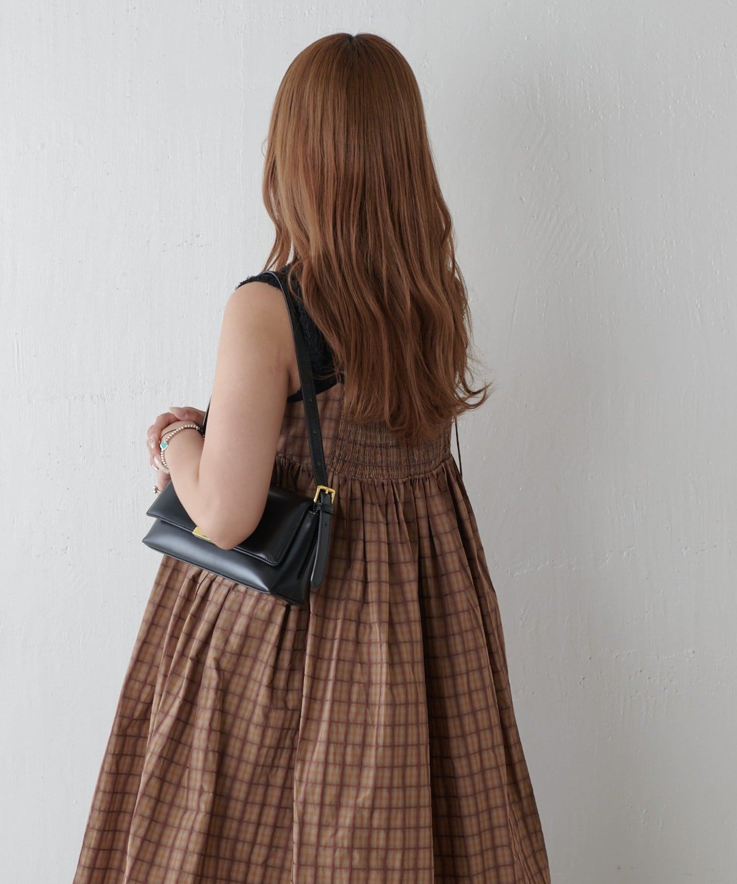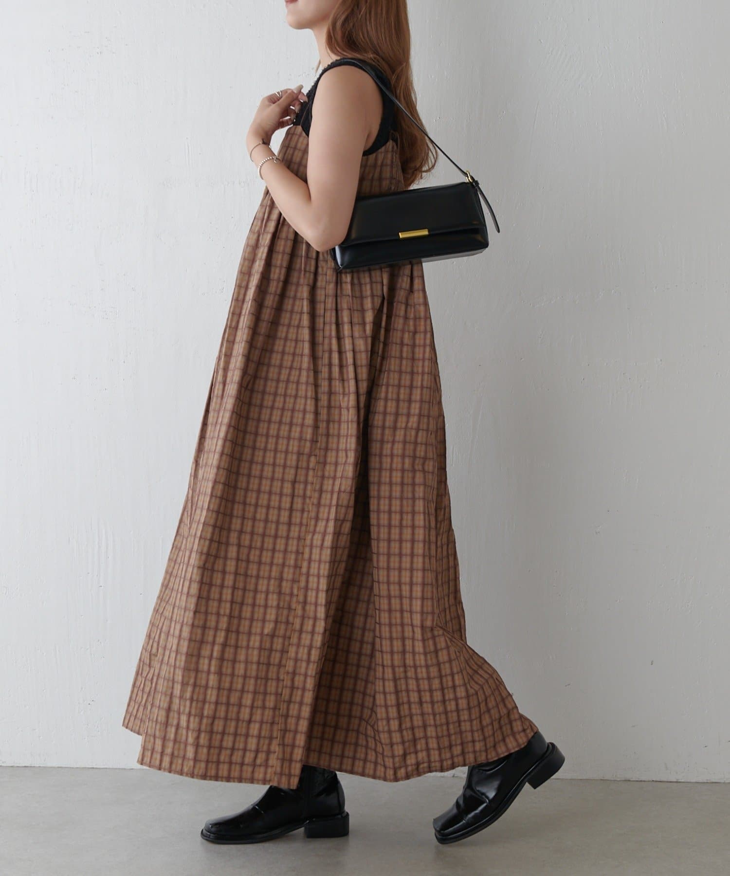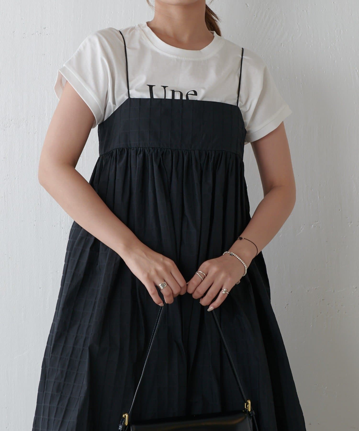 肩紐が細めで華奢な印象になるので、一枚づかいはもちろん、