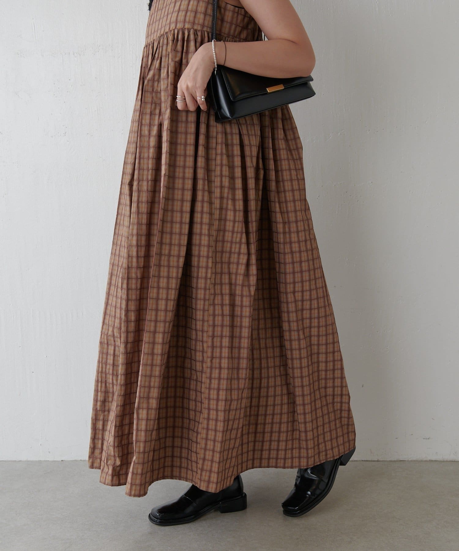 チェック柄ですがカジュアルすぎず、でもキレイ見えし過ぎないシャカっと素材を使用しているので