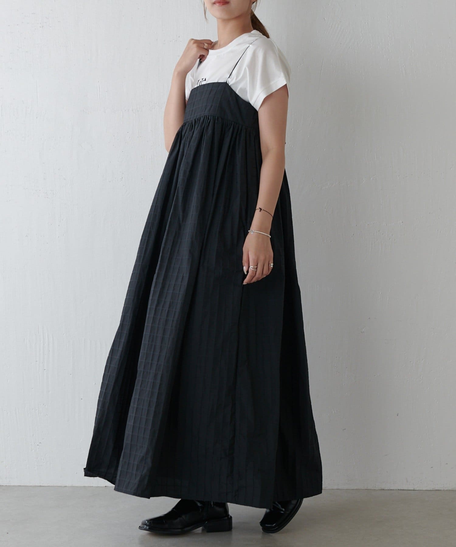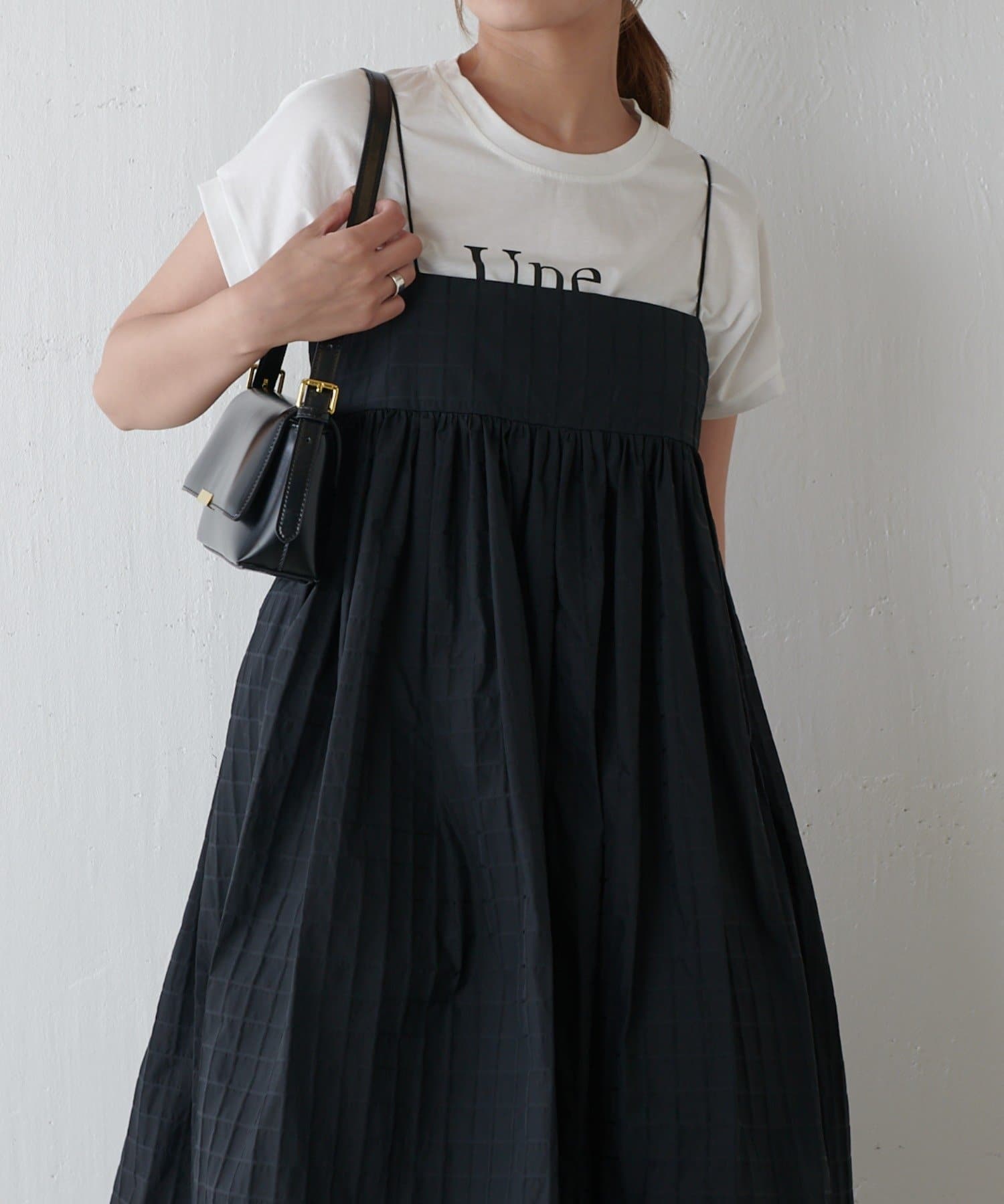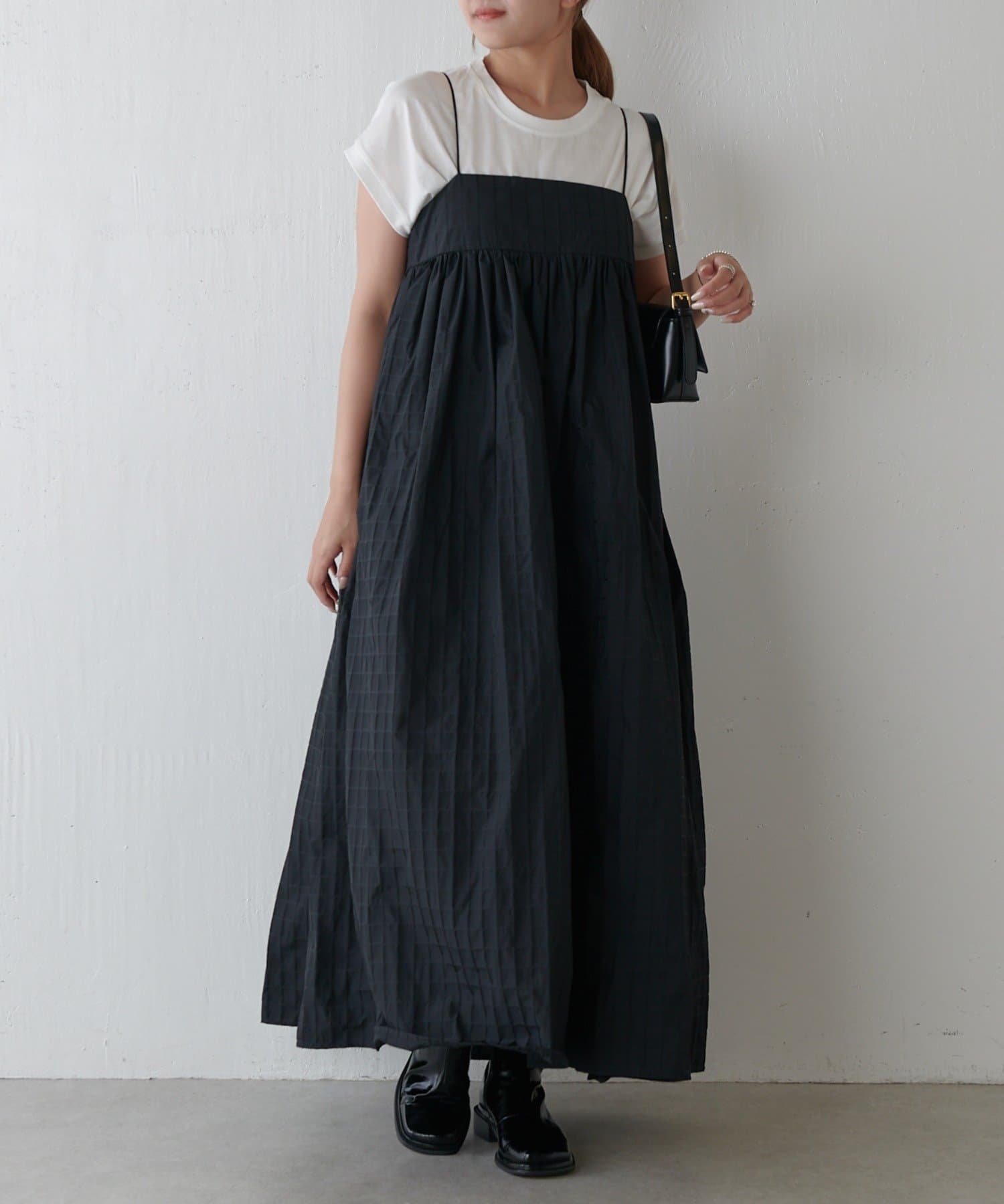 表面感が特徴的で、大人かわいいキャミワンピースです。