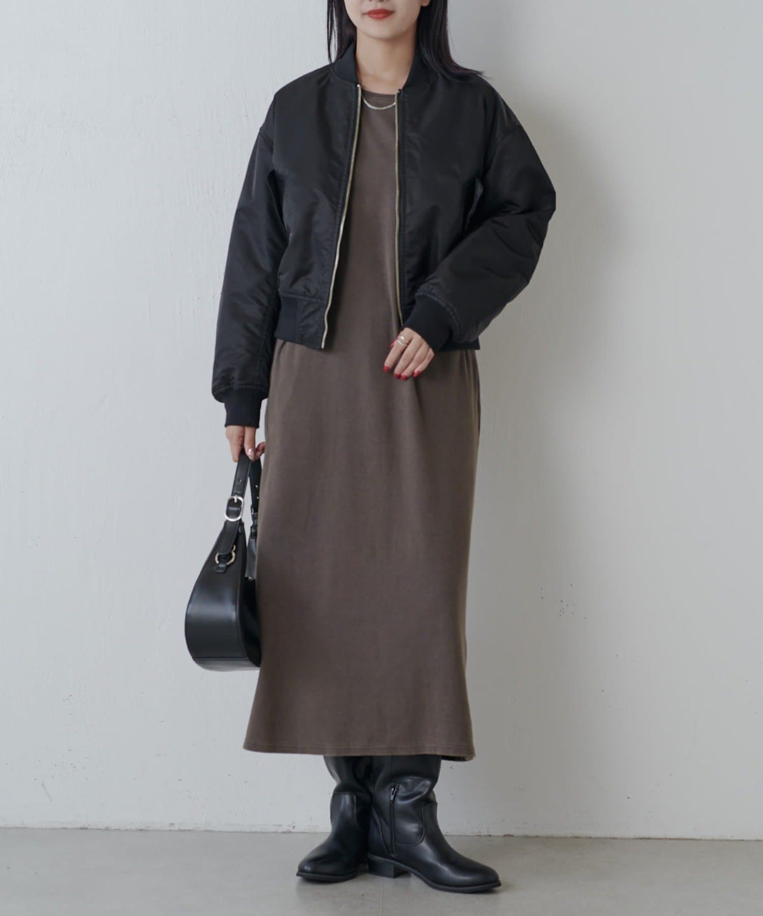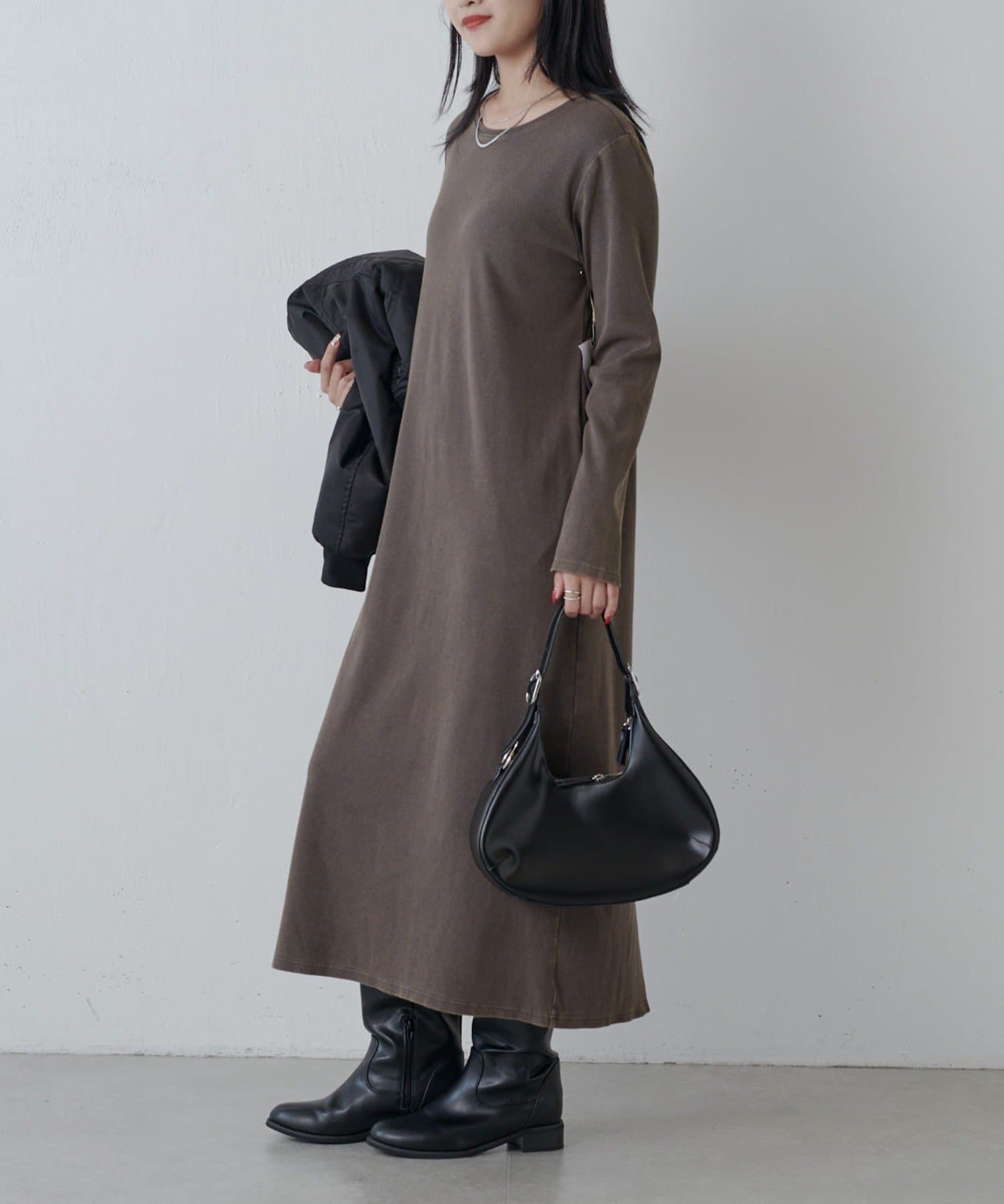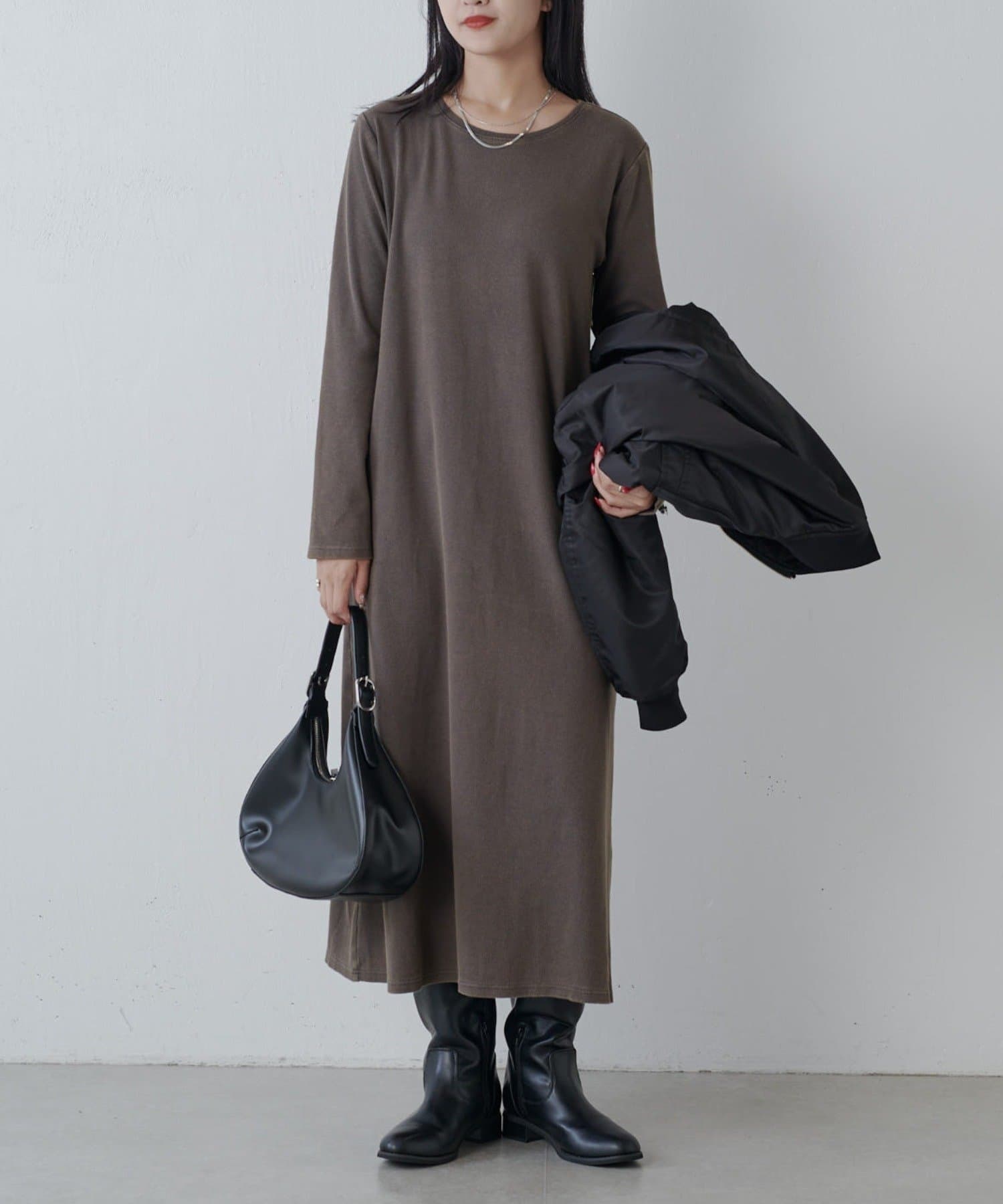 程よい肉感で、体のラインを拾いにくいので一枚でもコーデの主役になります。