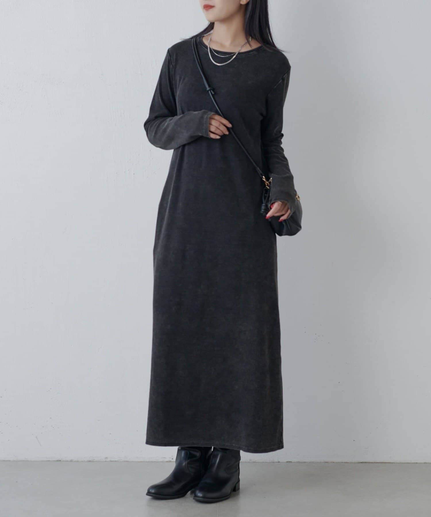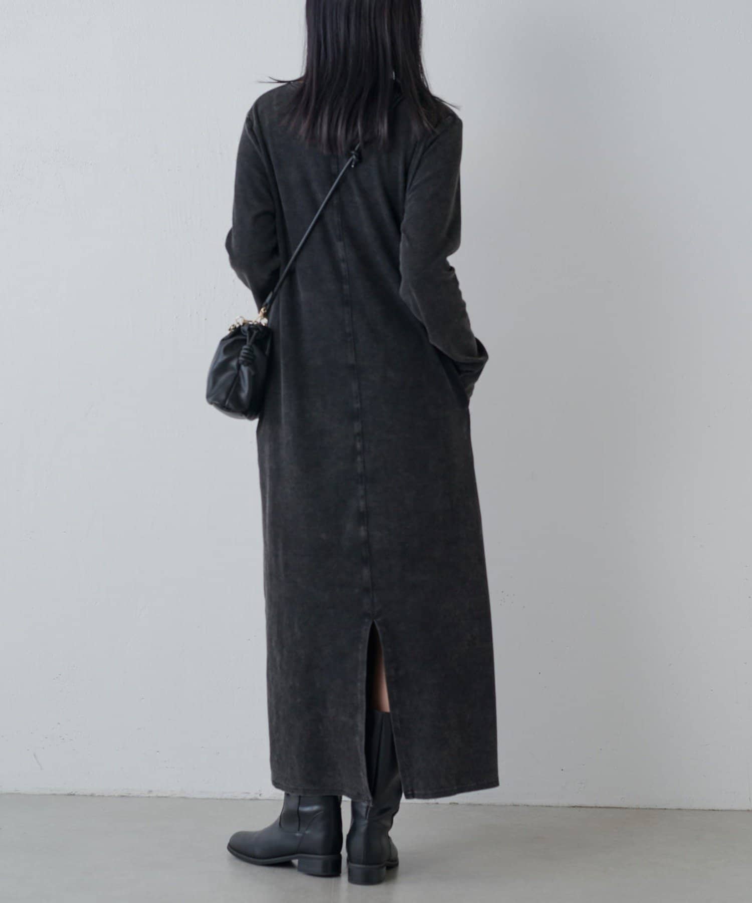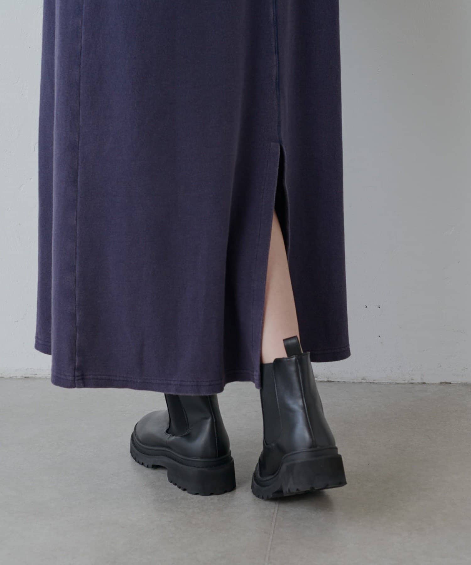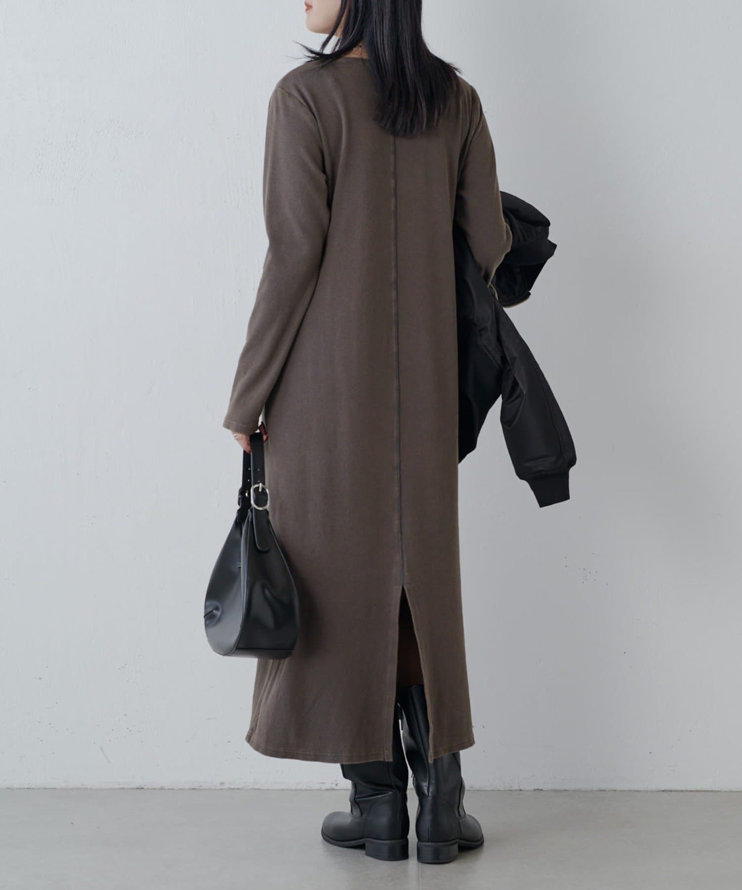 ヴィンテージ加工バックスリットリブワンピース