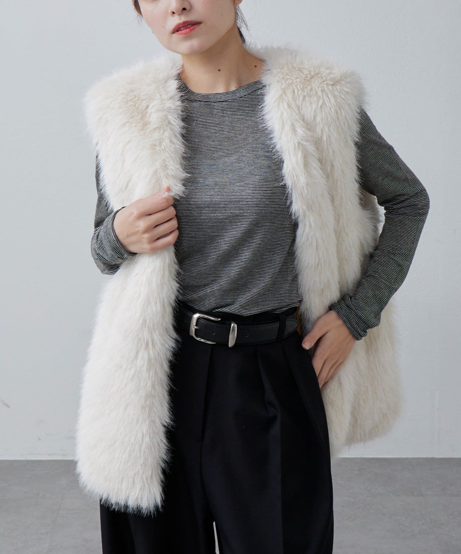 テーラードジャケットなど肩回りが少々コンパクトめなアウターにも問題なく着用していただけます◎