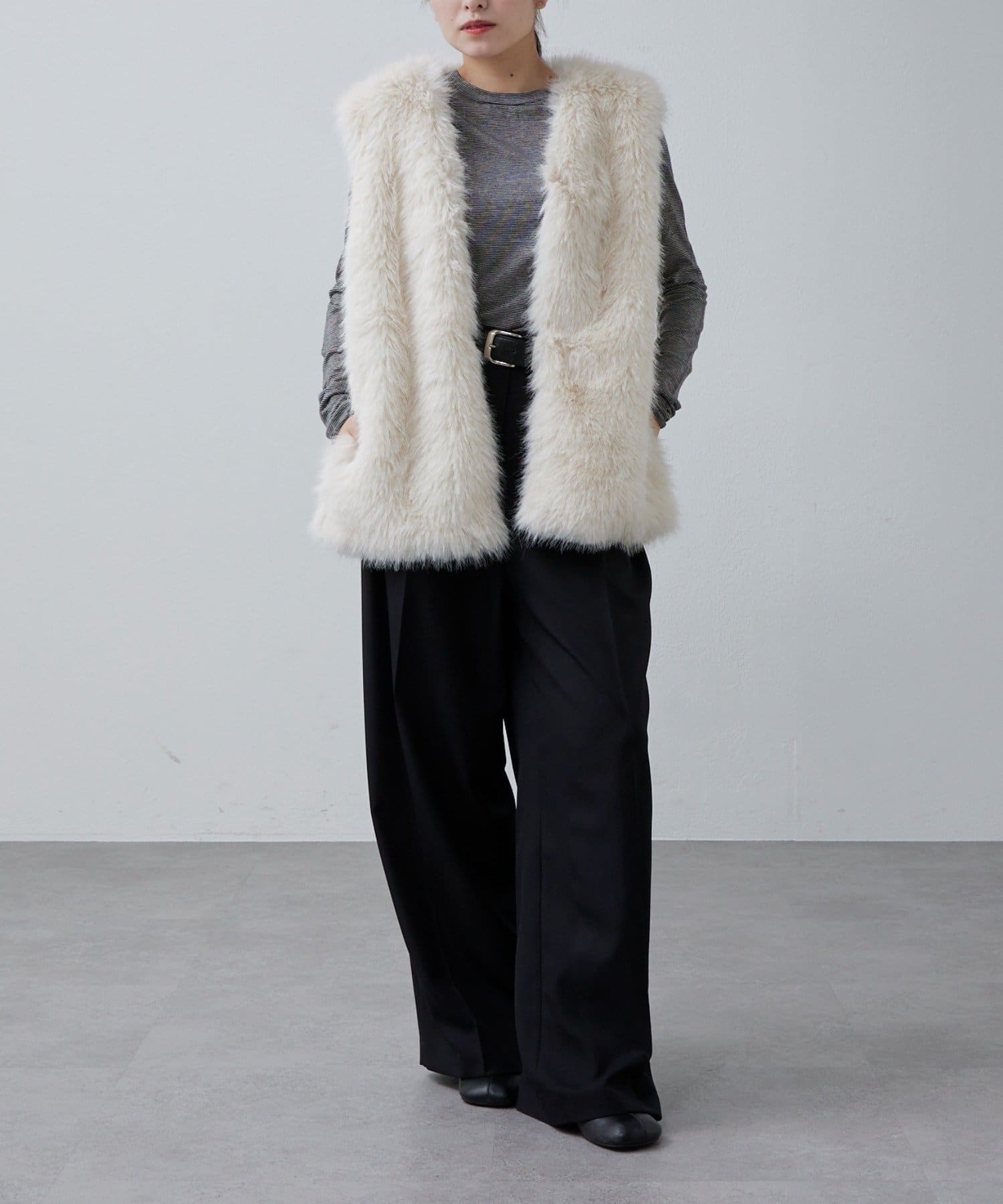 ワイドなスラックス合わせでもバランスのとりやすいコンパクトなシルエット。