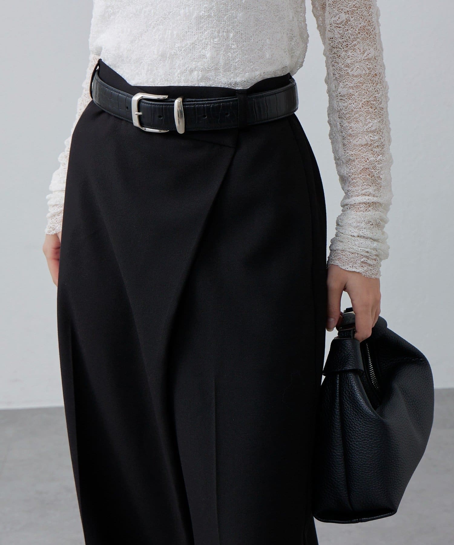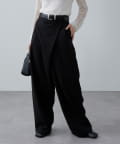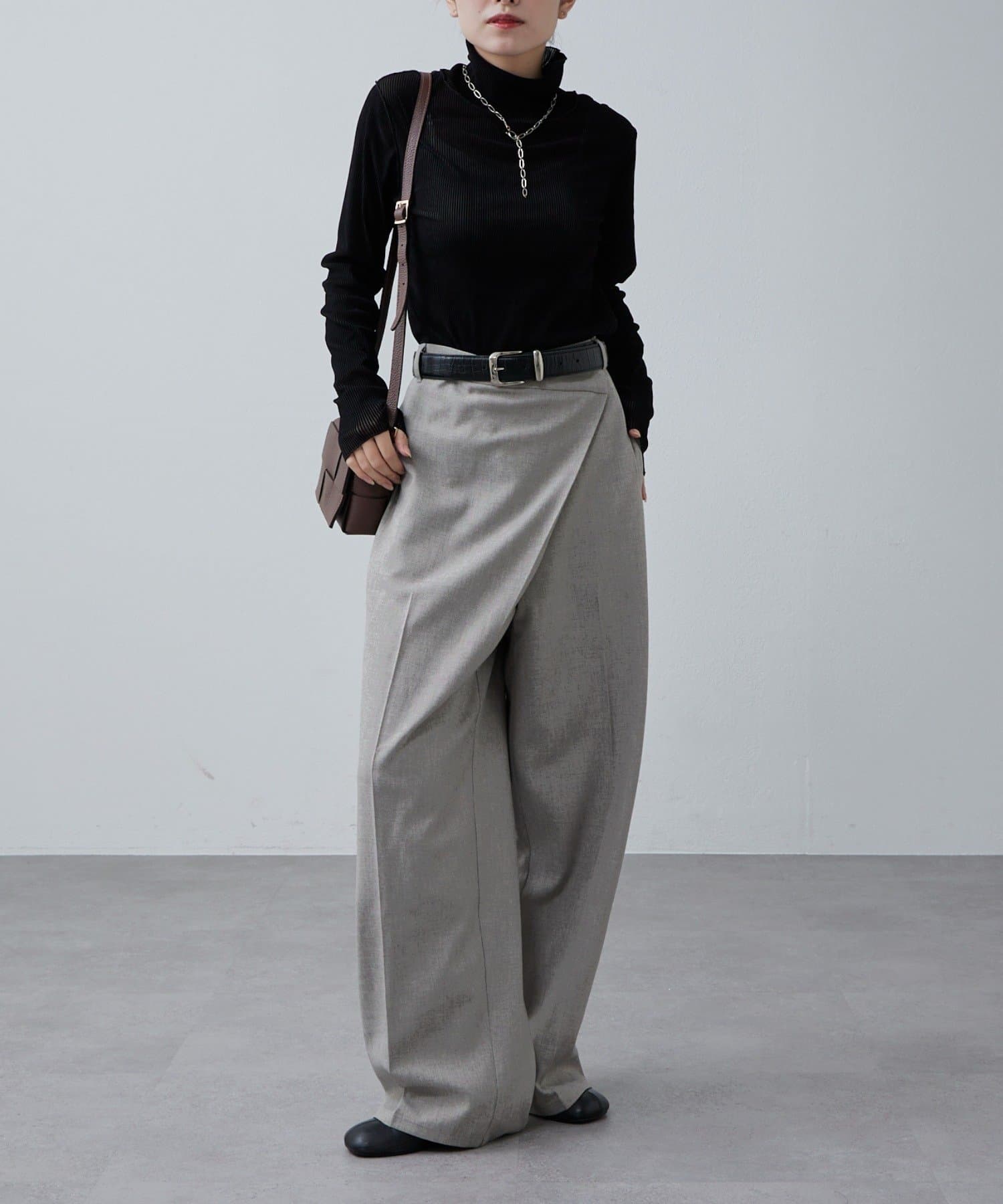 ラップ風に仕上げたお洒落見え抜群のこなれスラックスで、ややワイドな程よい太さが綺麗めで手持ちの服と合わせやすい。
