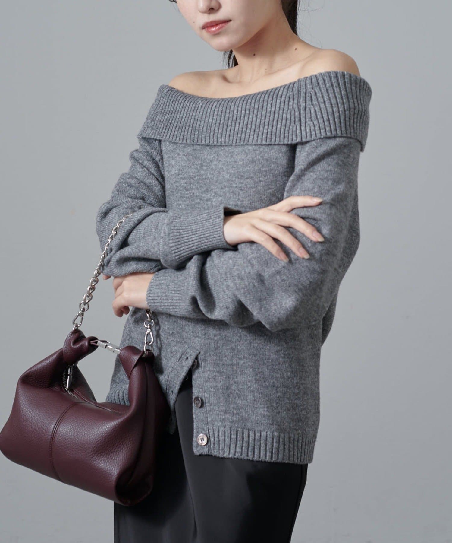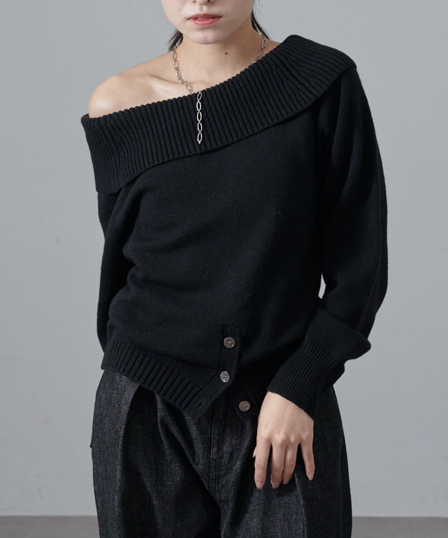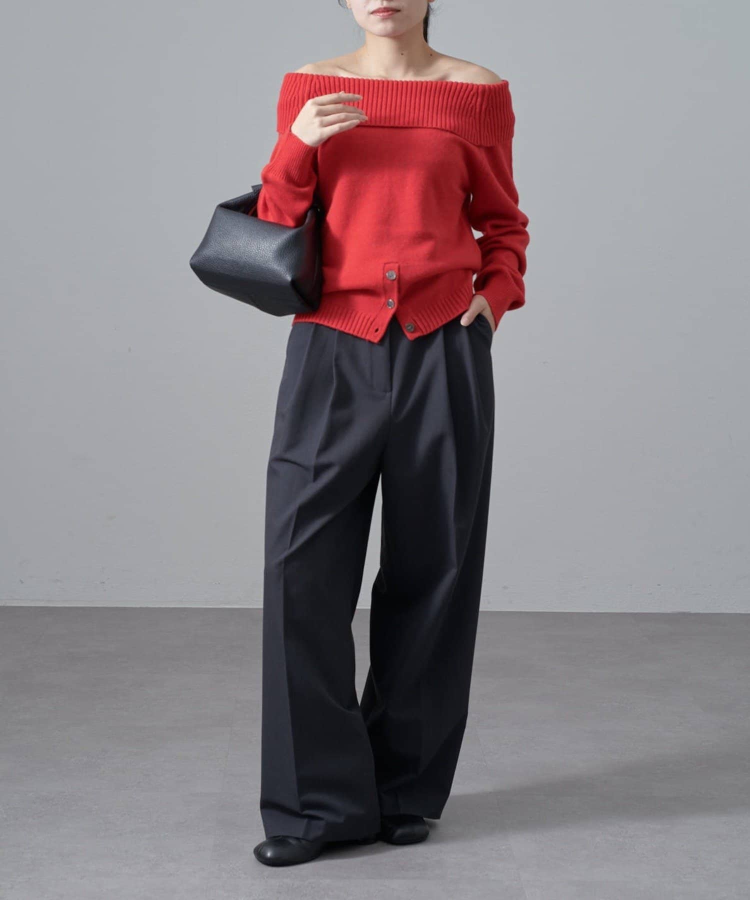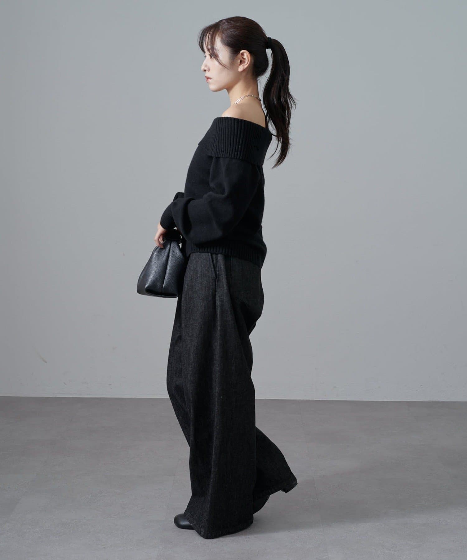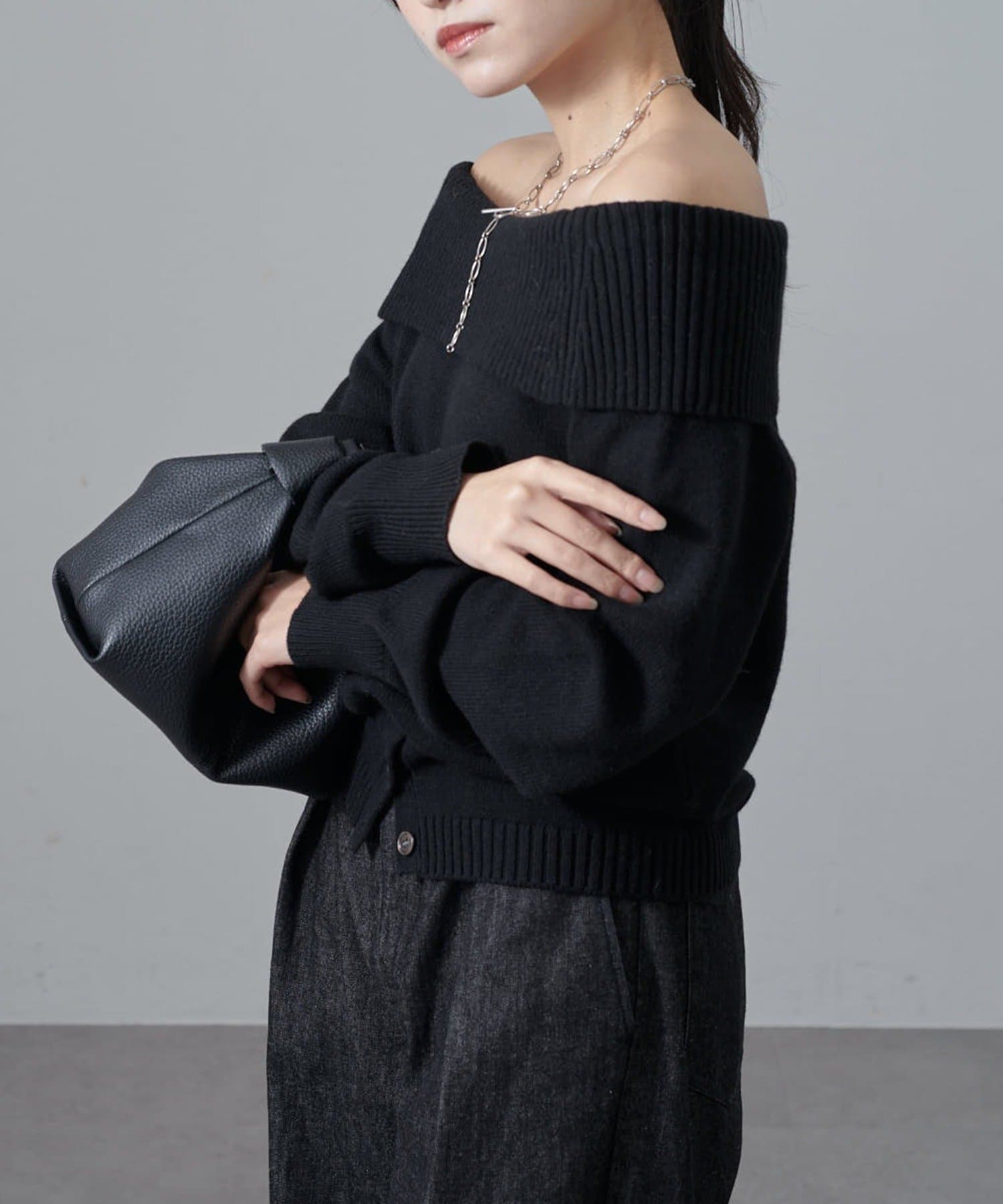ワンショルで着ることも可能で、秋冬の肌見せコーデにピッタリなアイテムです。