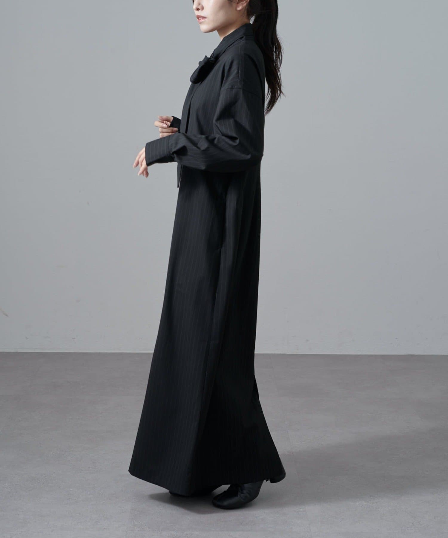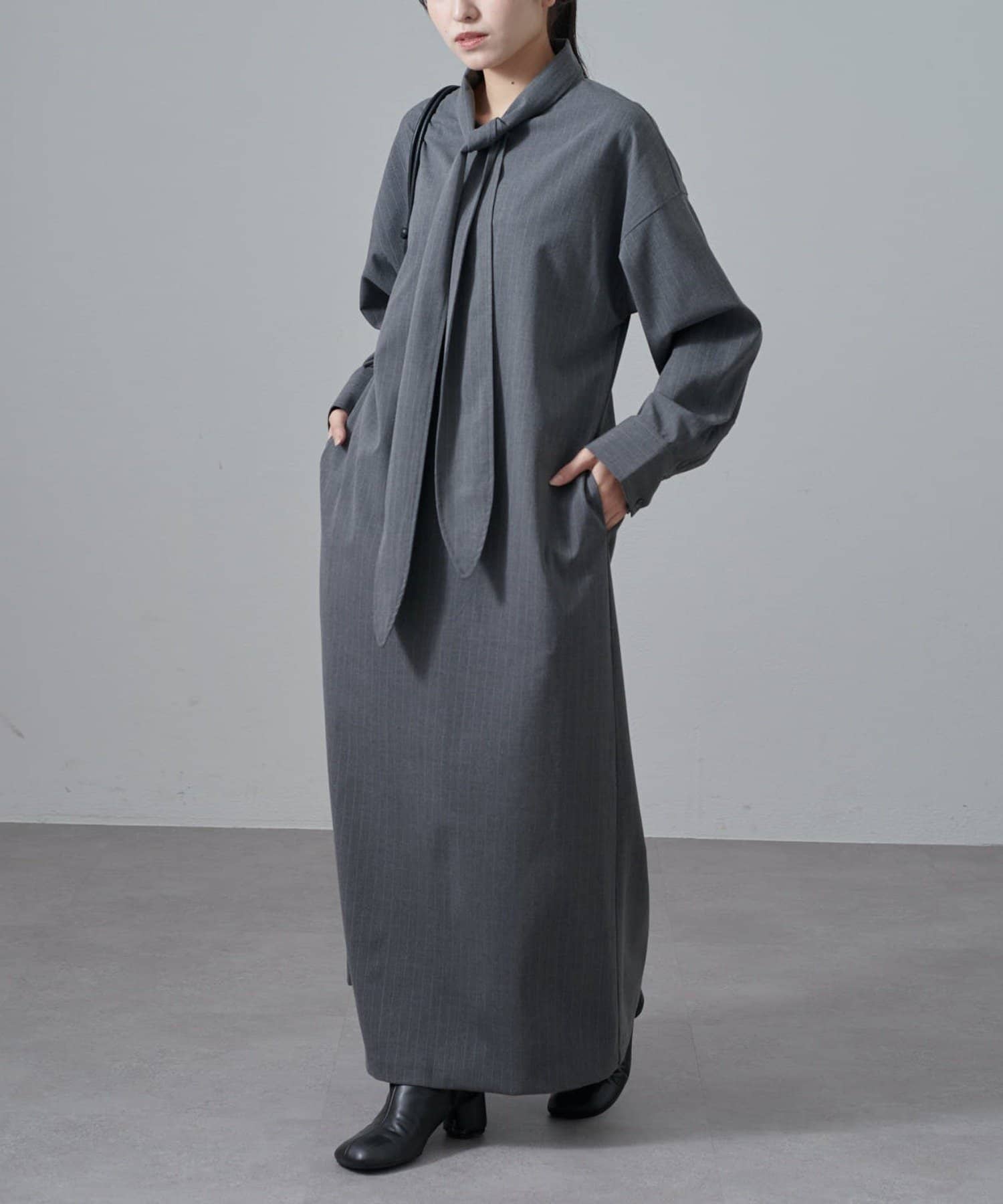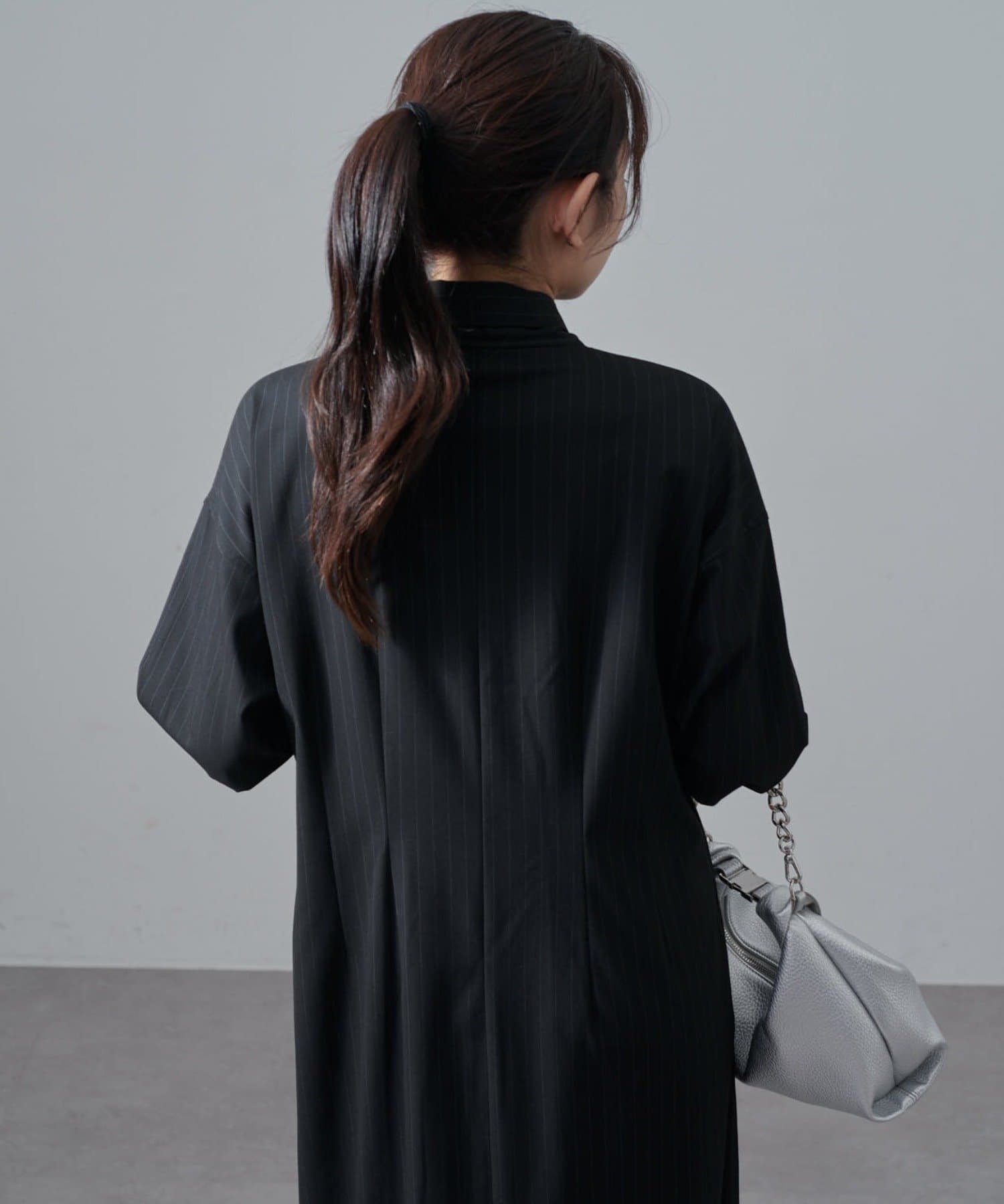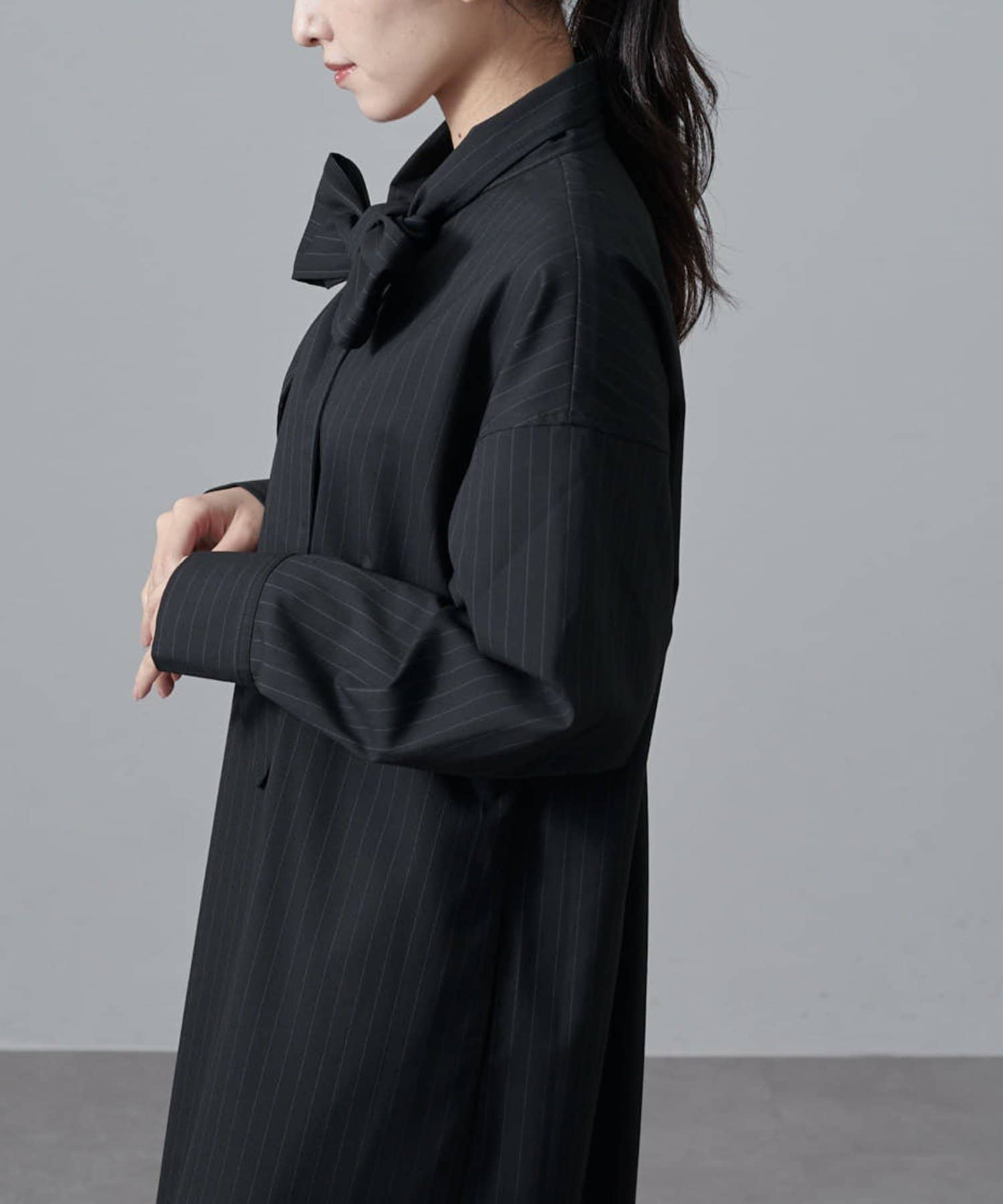 ハンサムな雰囲気で着られるボウタイ付きシャツワンピ♡