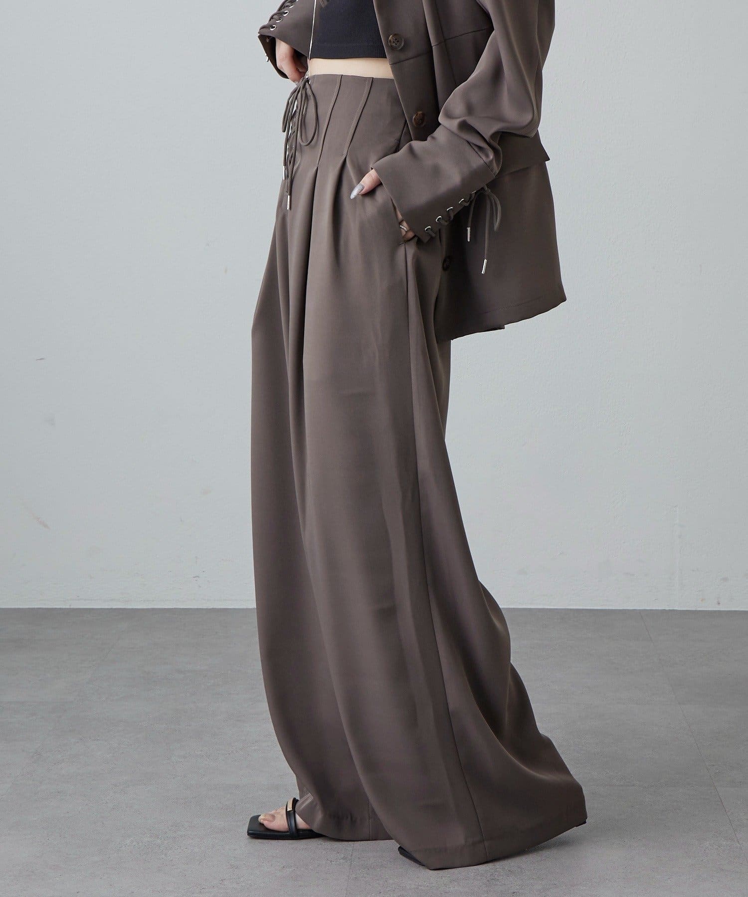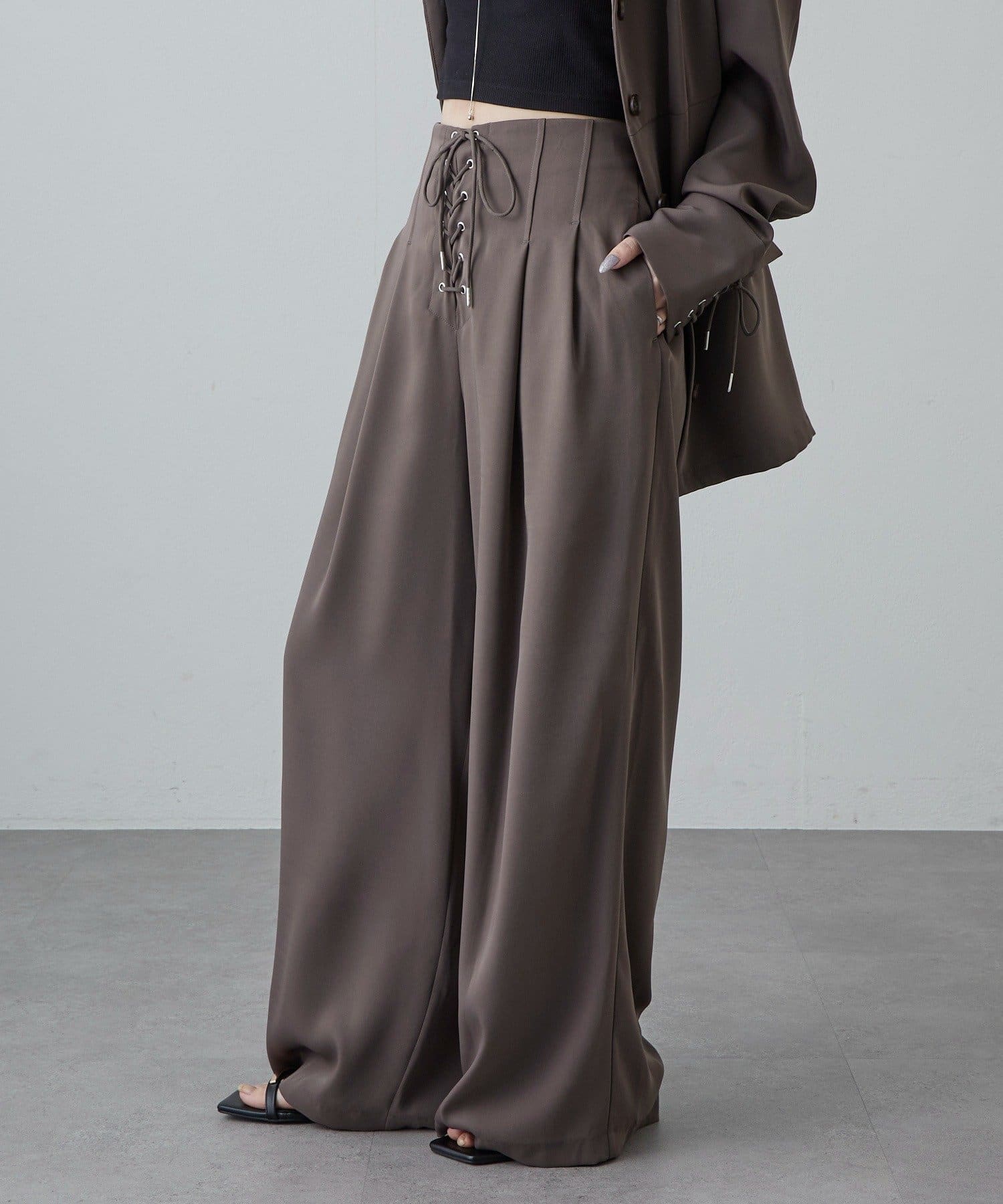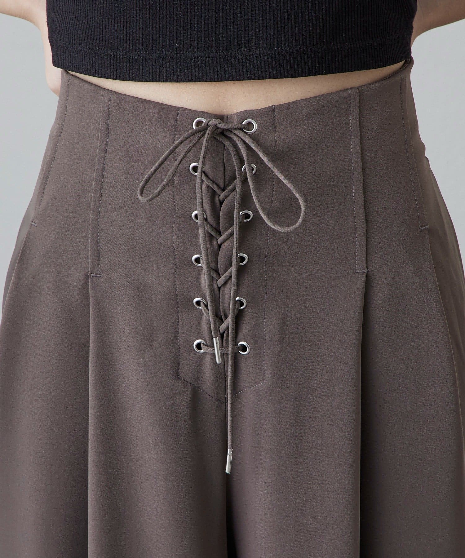 レースアップデザインワイドパンツ