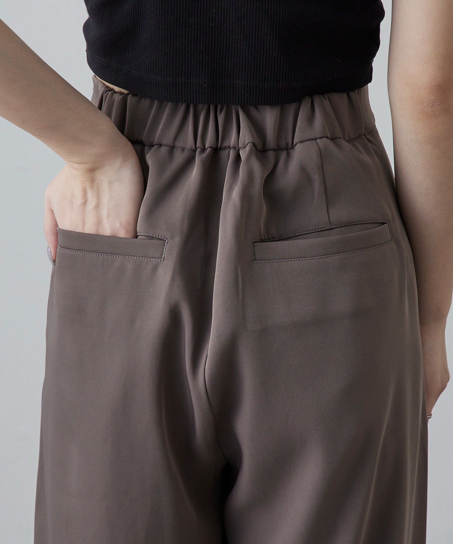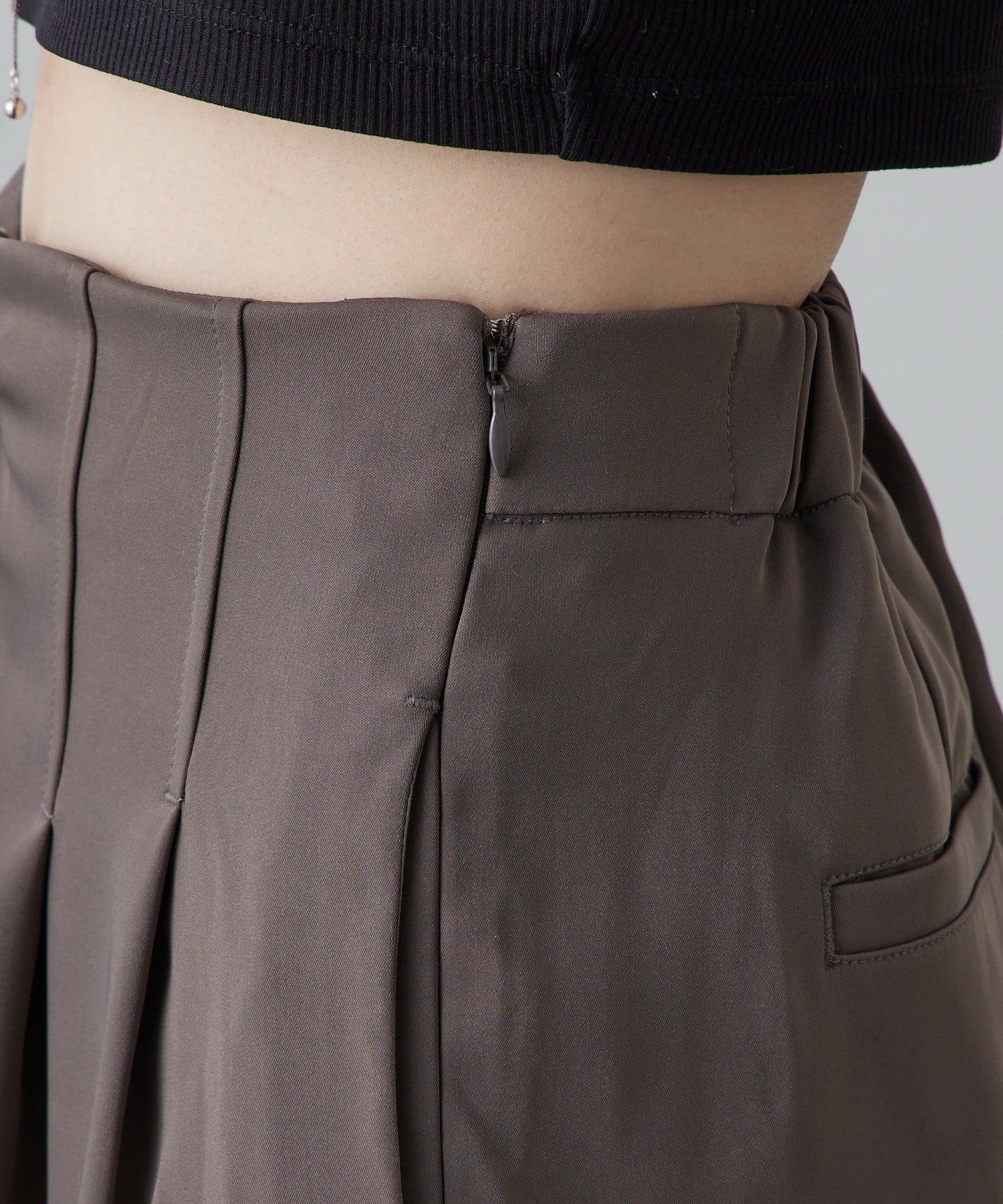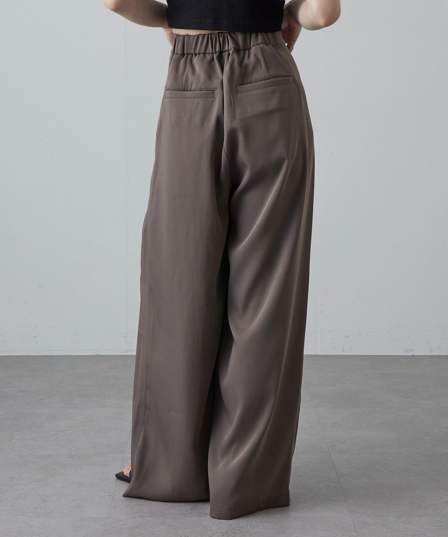 ・ボリュームのあるワイドシルエットなので、トップスはコンパクトなものとの相性抜群◎
