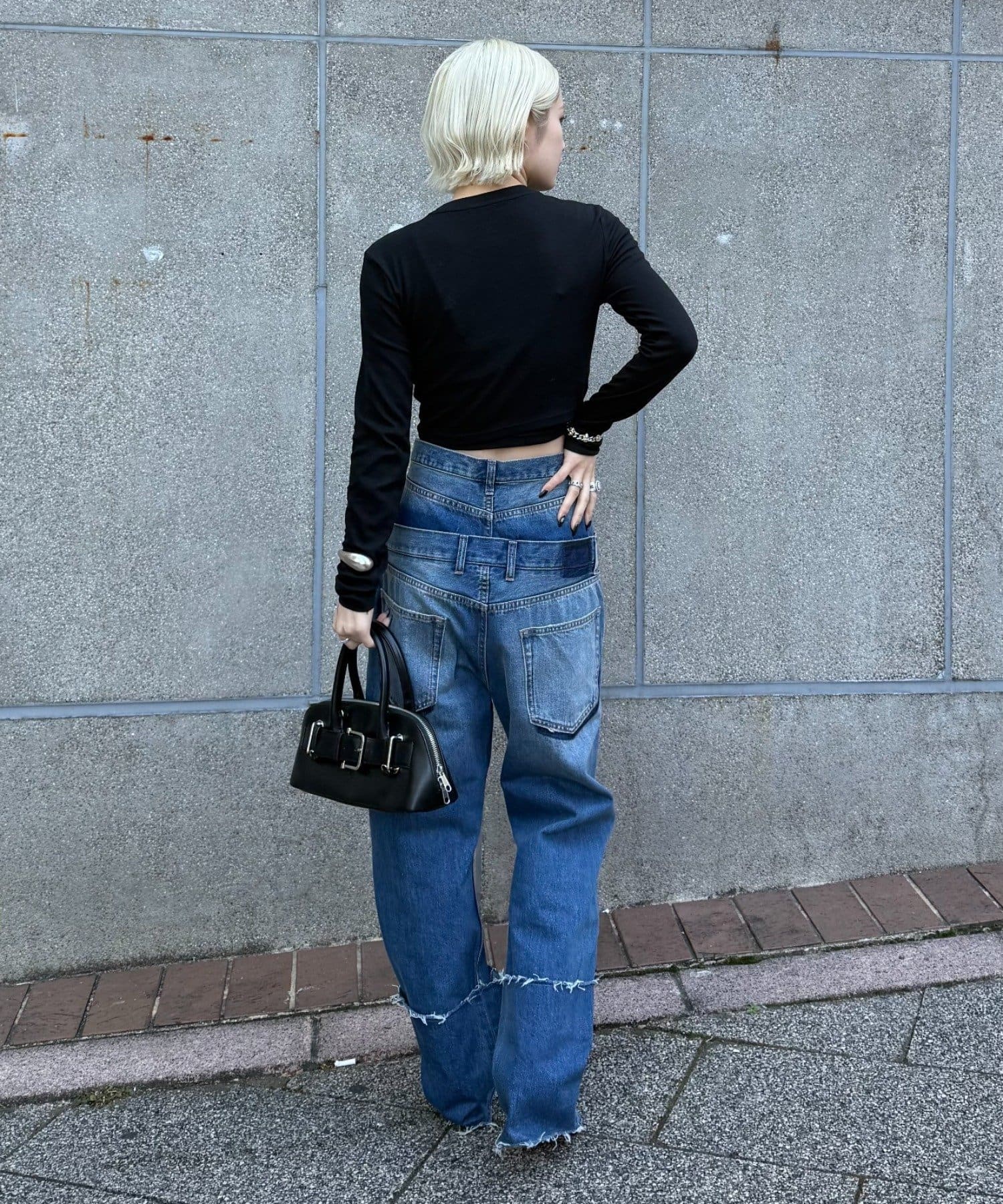 ・レイヤードデザイン:デニムパンツを2枚重ねたような新鮮で独創的なスタイルが特徴。