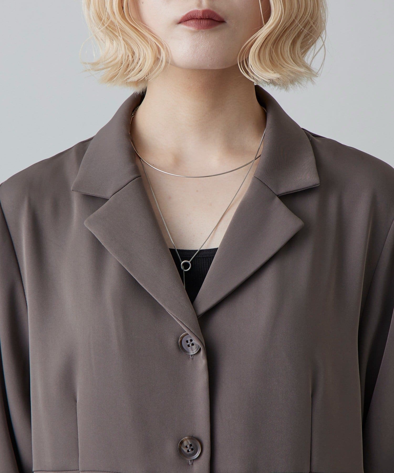 ・テーラードカラーで大人っぽくモードな雰囲気を演出。