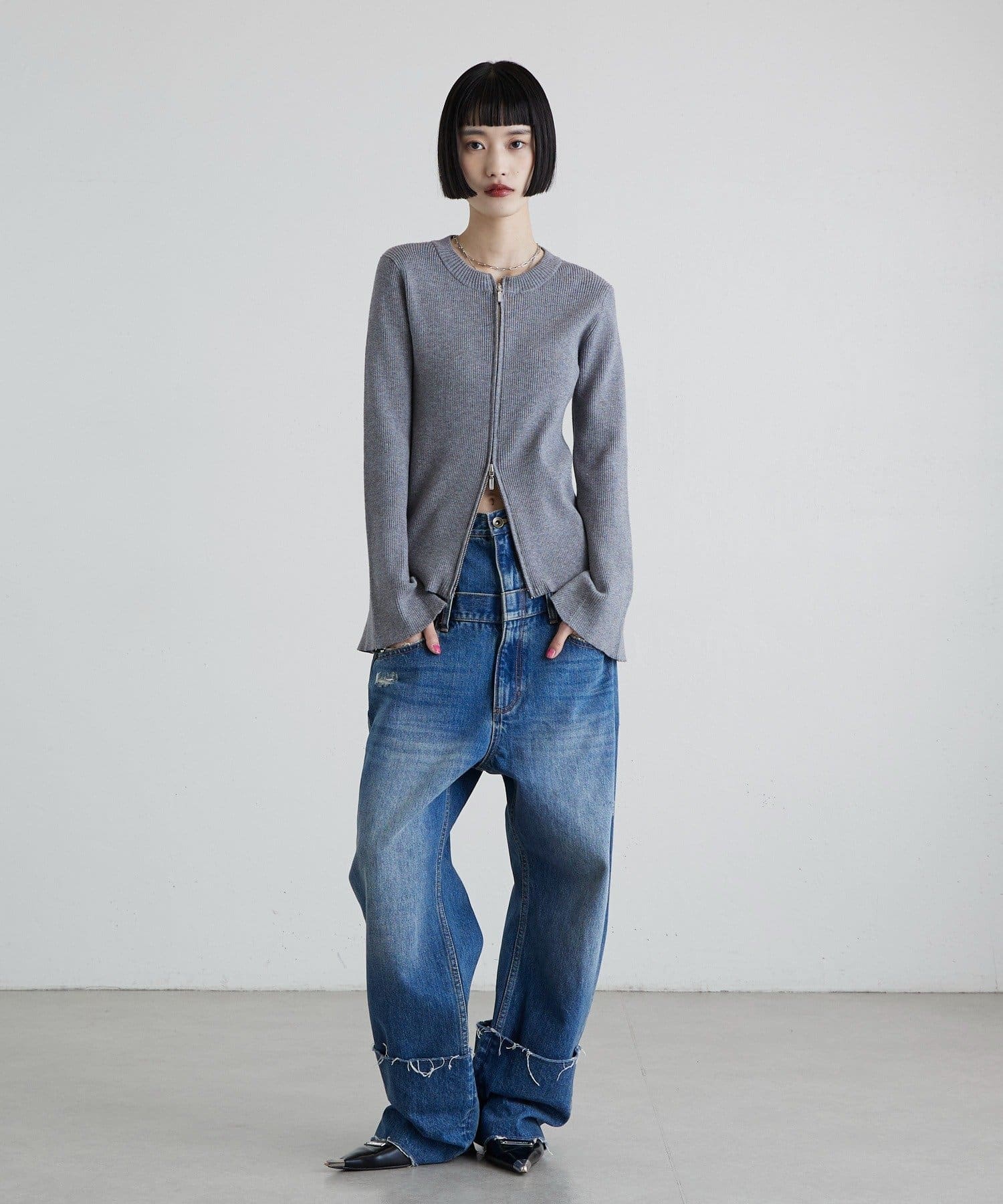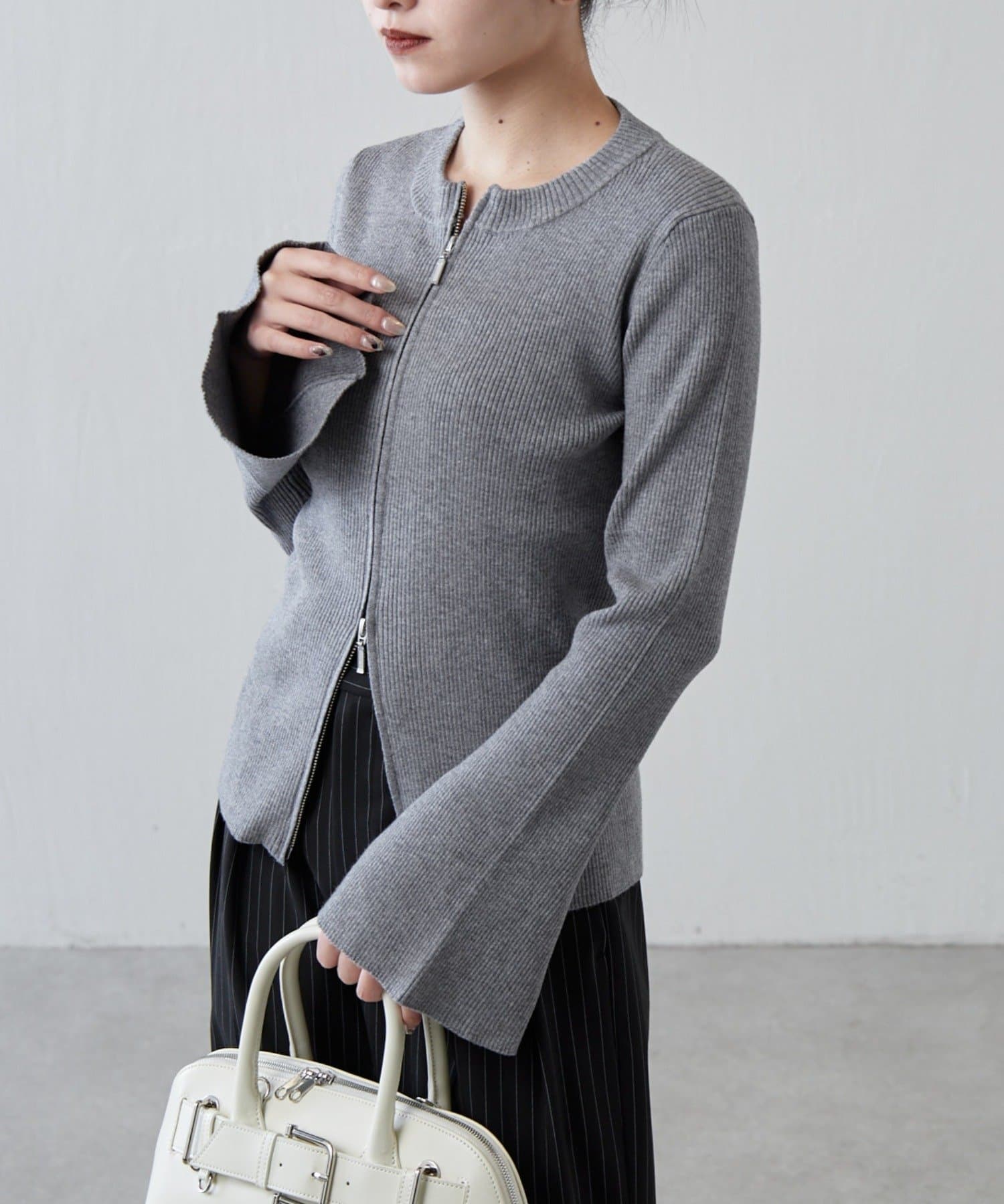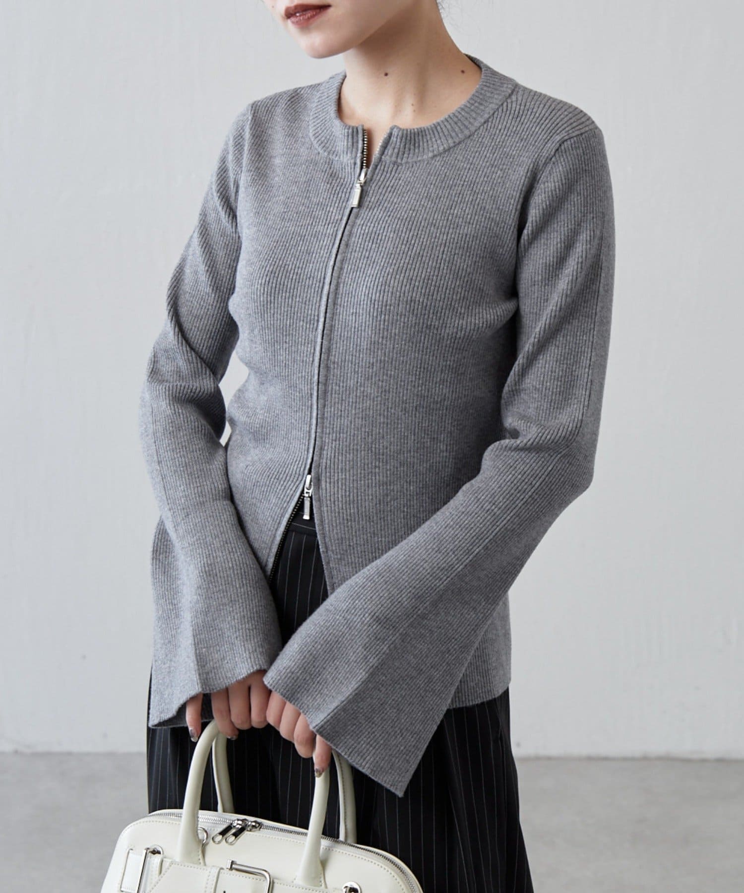ジップはダブルジップになっていて、肌見せも叶うニットです。