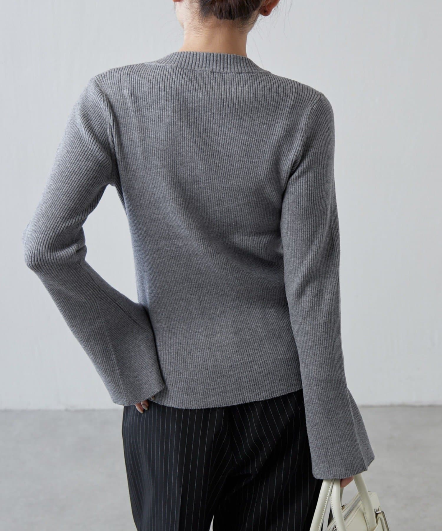 袖フレアZIPニットプルオーバー