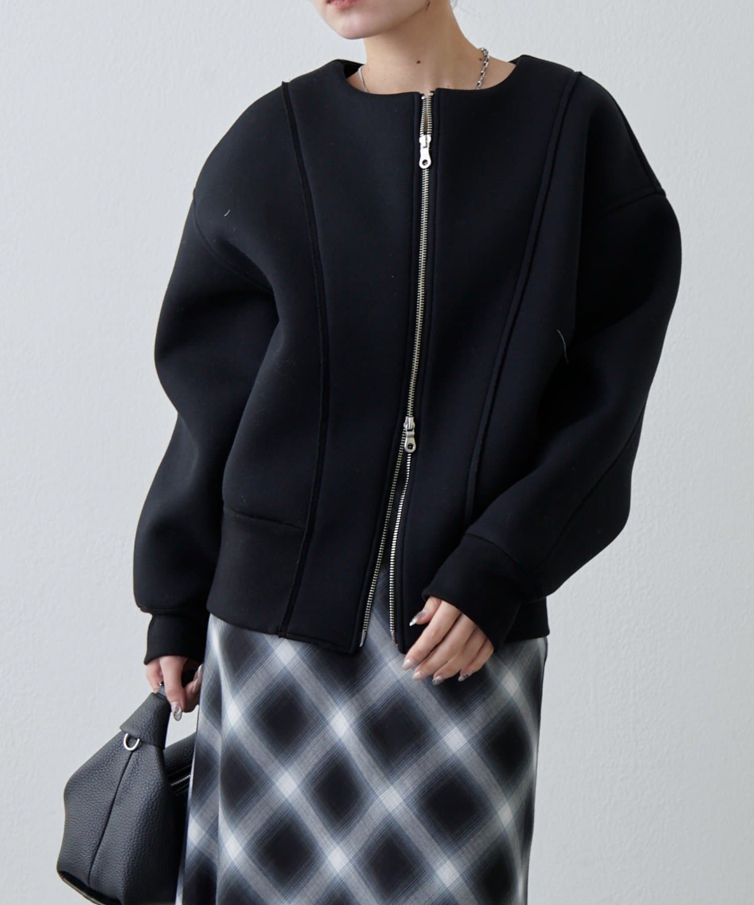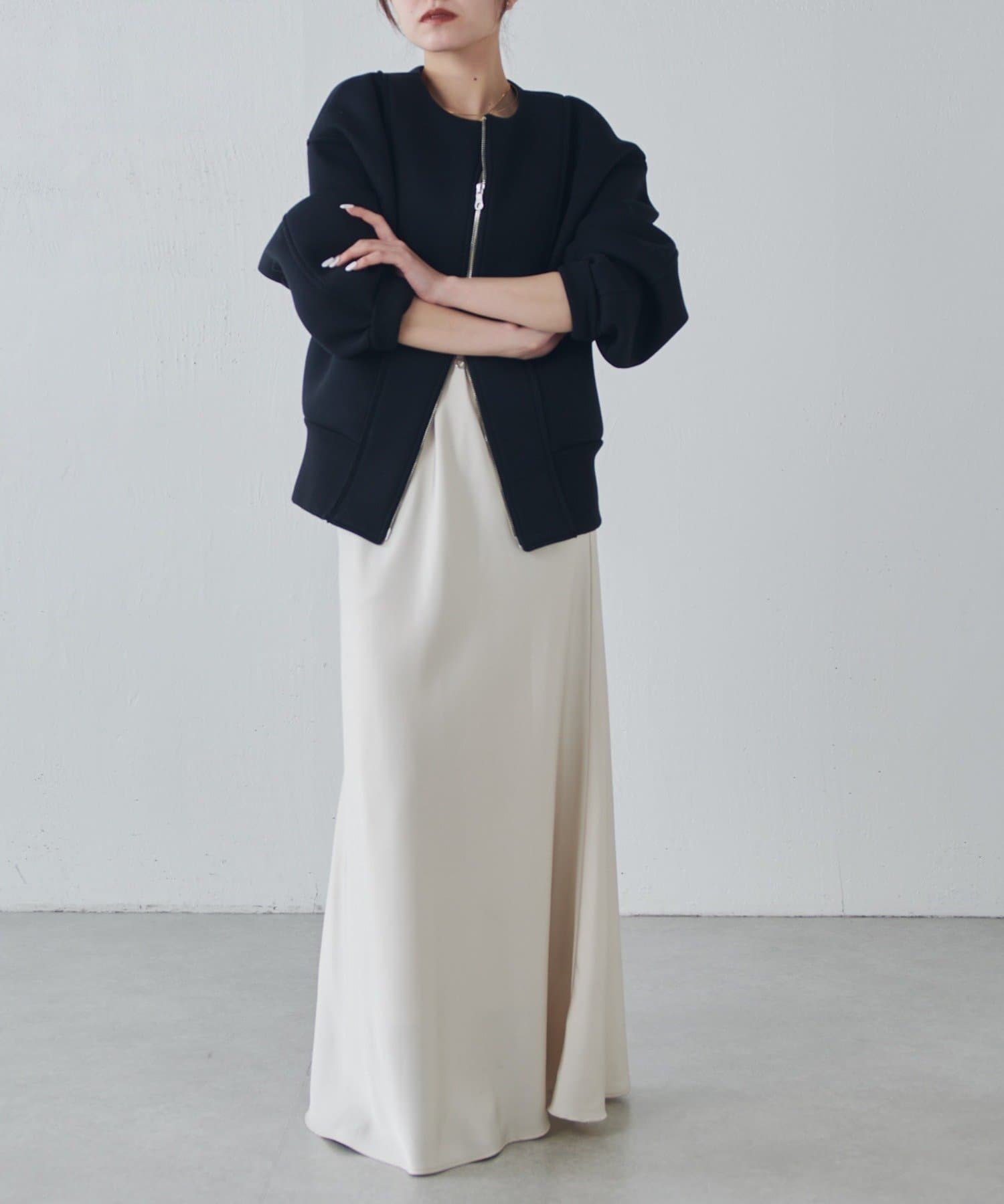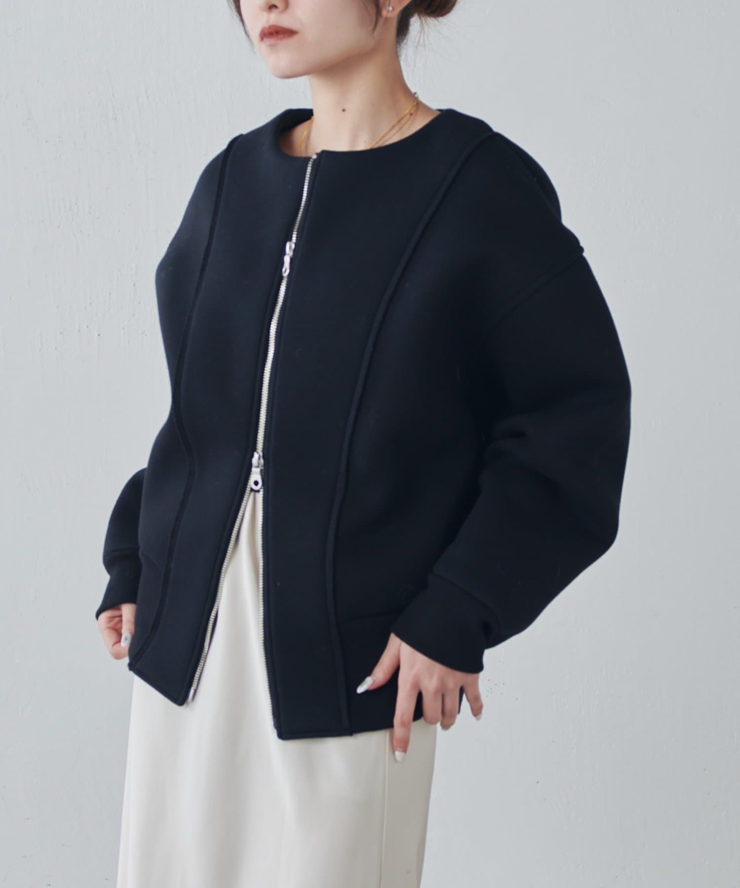 ・フロントのダブルジップは開け方次第で色んな着こなしが楽しめます。