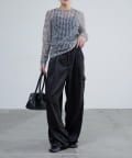 シアー素材の透け感を活かして、ニットやベスト等をレイヤードすると奥行きのある着こなしに。