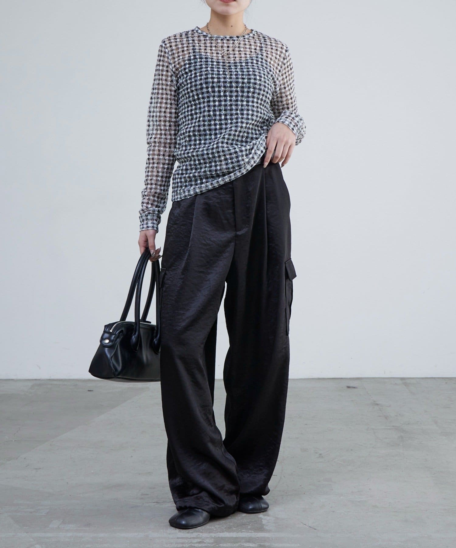 さりげないシアー感とトレンドライクなチェック柄がポイント。