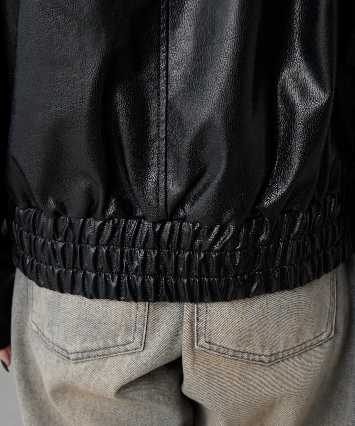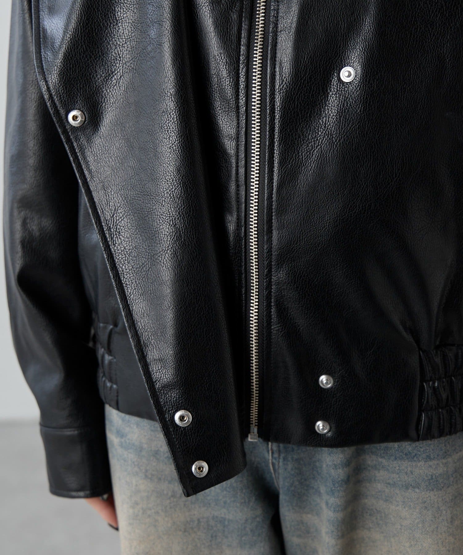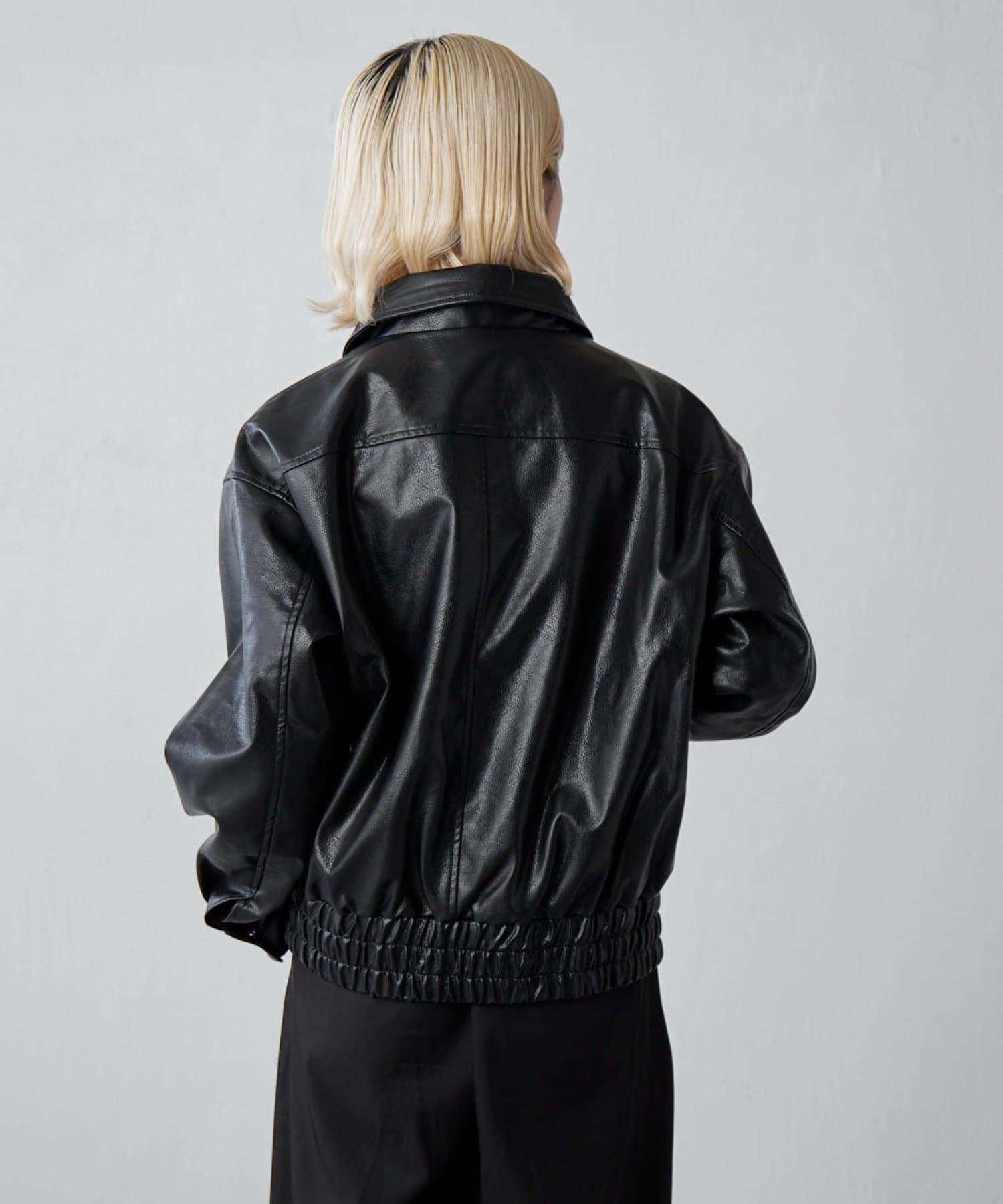 モードな雰囲気漂うフェイクレザーブルゾン。