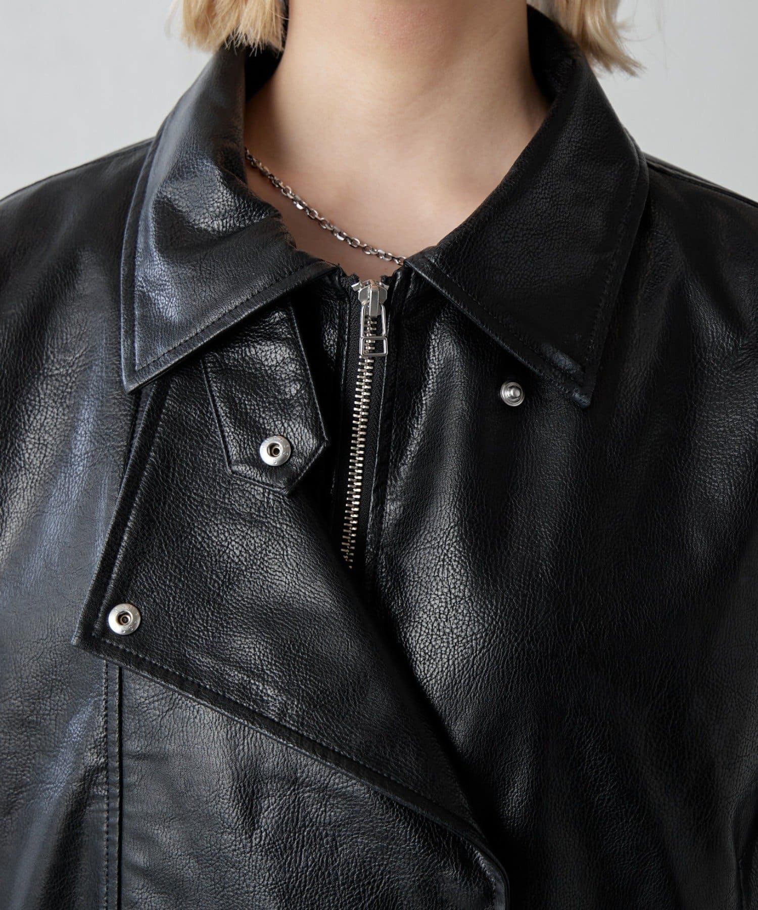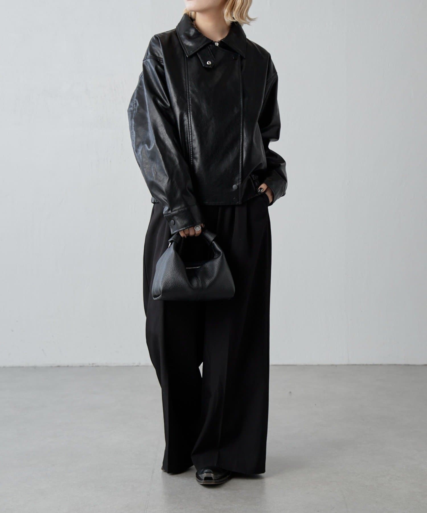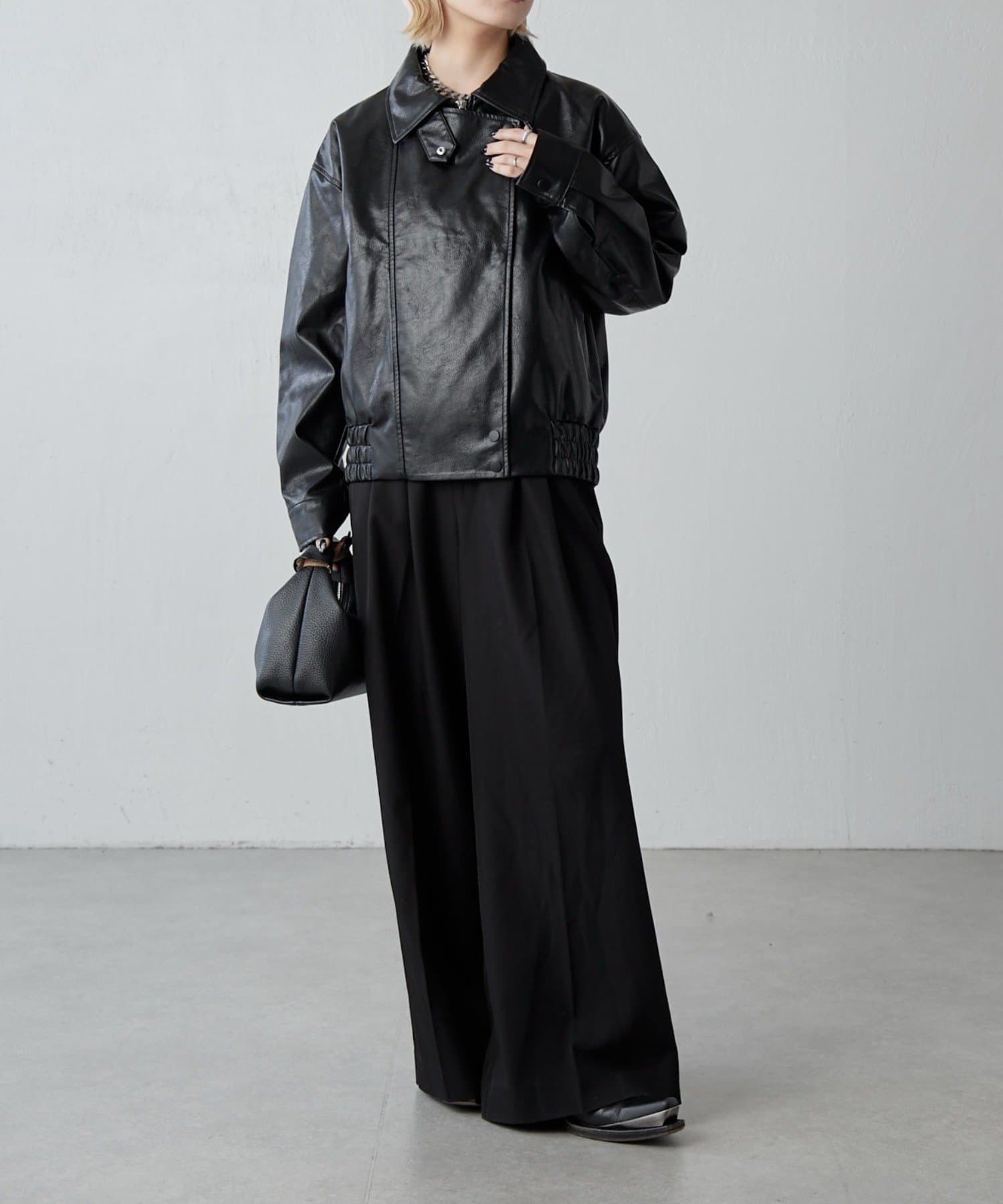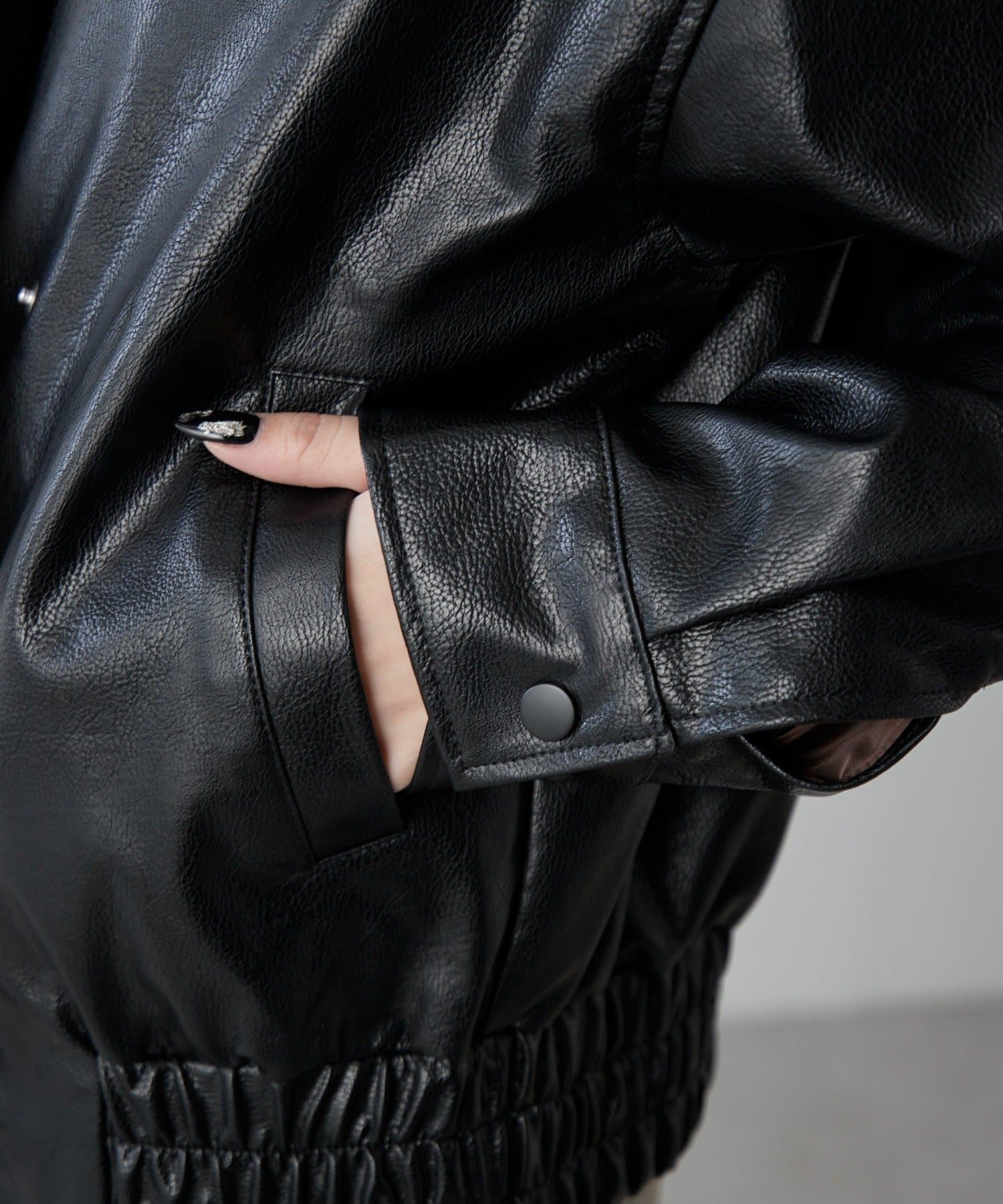 モードな雰囲気漂うフェイクレザーブルゾン。