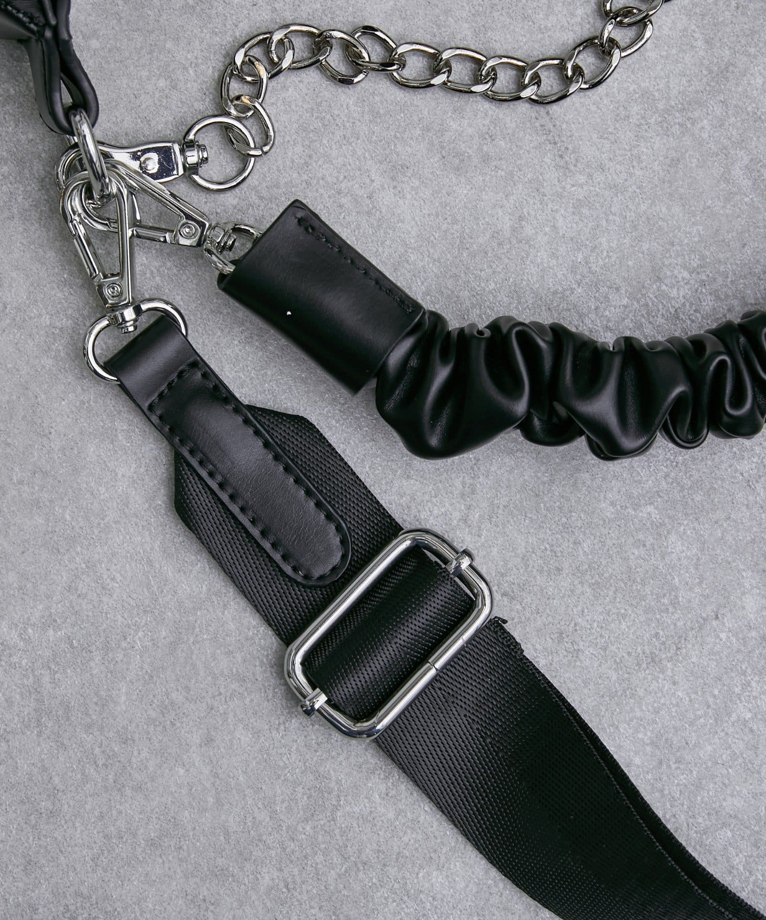 チェーン部分は持ち手としてもアクセントとしてもお使い頂けます。長めのストラップ部分はショルダーバッグとしてお使い頂けます。