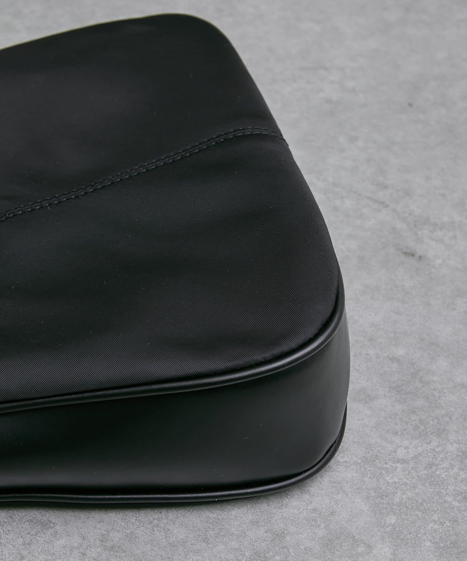 シンセティックレザーとナイロンがコンビになったハーフムーン型のバッグ。