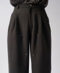 フロントにはダブルニーのデザインを配置。ハトメデザインがさりげないアクセントに。ワークパンツですが、クリーンな見た目のユニークなアイテムです。