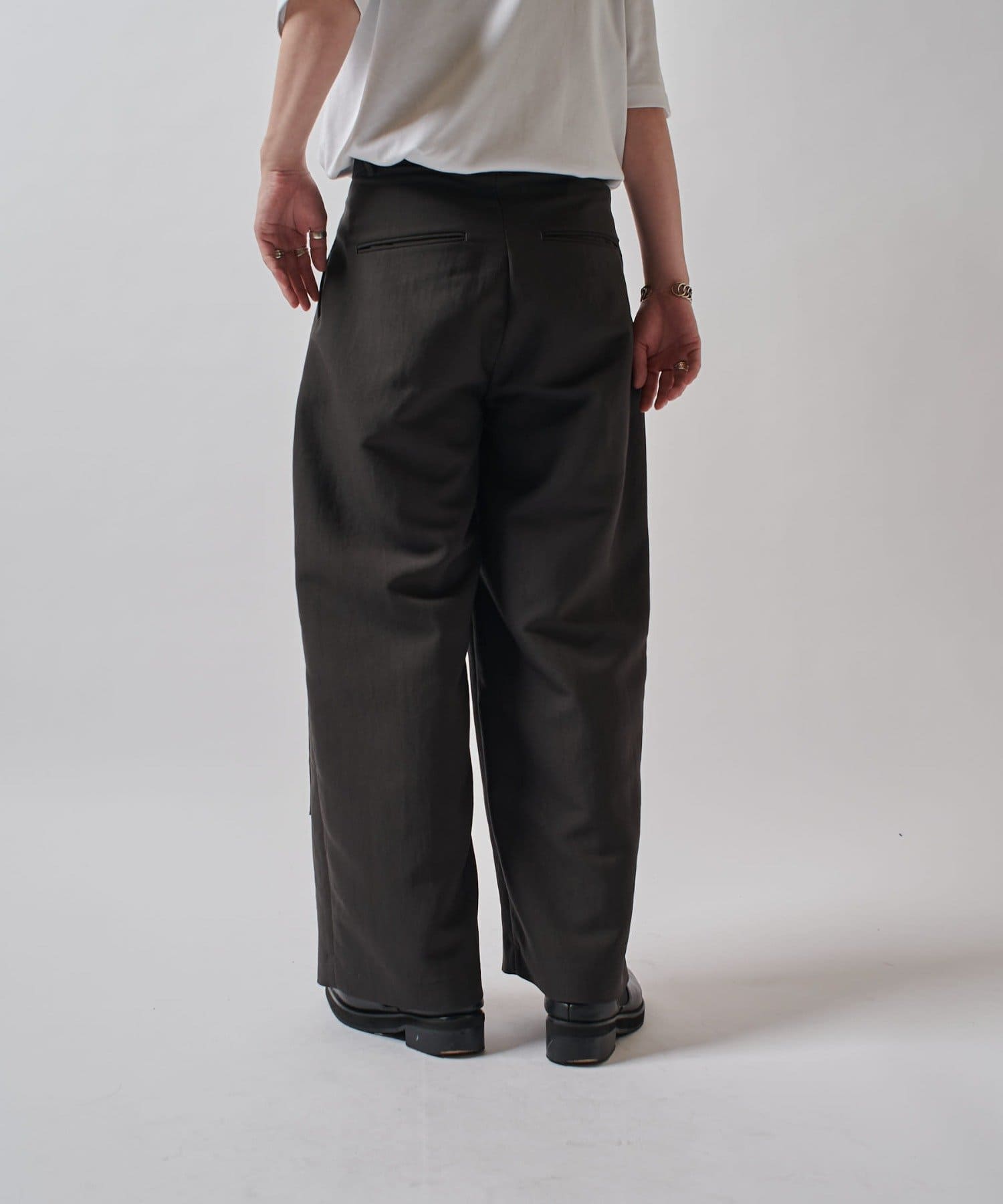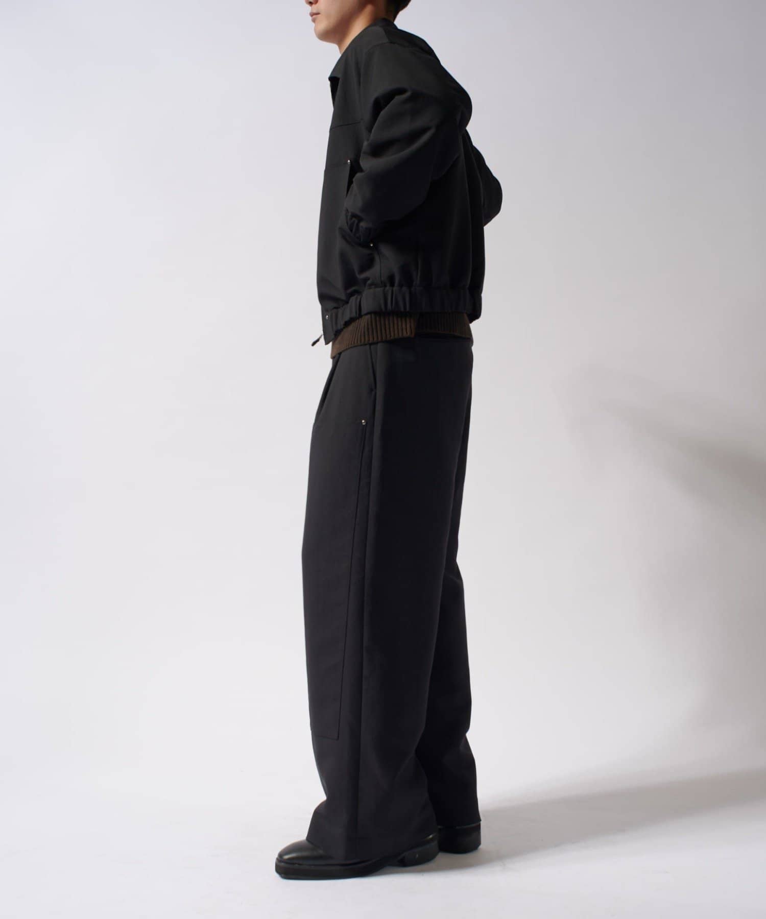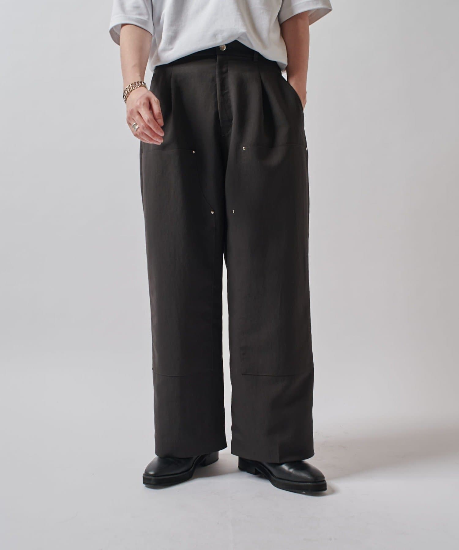 ワークパンツでも名の知れた、ダブル二ーパンツをスラックスで表現したキレイめなアイテム。ウエストからストンと落ちる、ワイドストレートシルエット。