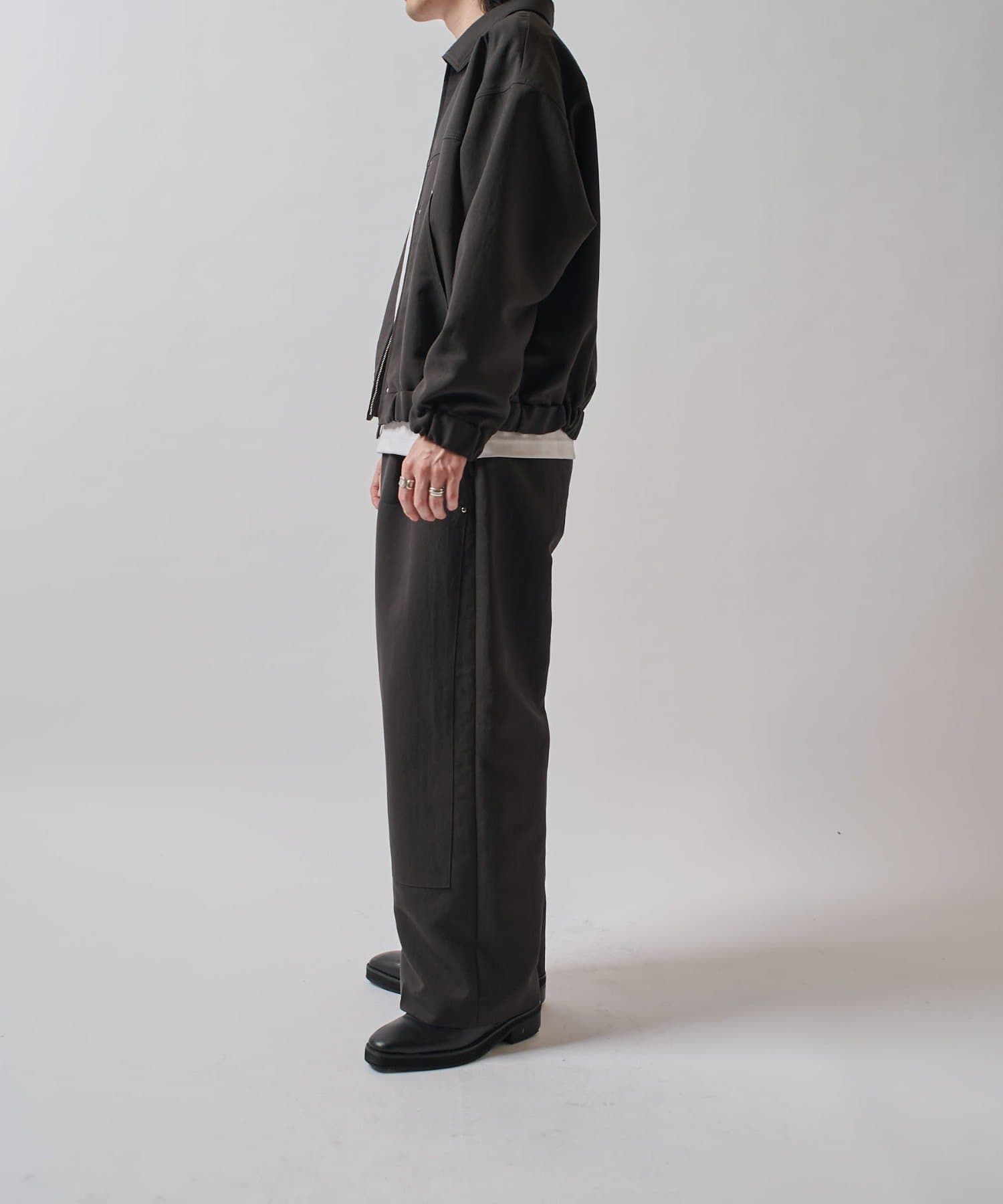 クリーンでさりげないアクセントが効いたスラックスなので、シンプルな無地のプルオーバーに、レザーシューズを組み合わせたキレイめカジュアルなスタイルがオススメ。また同素材で展開しているブルゾンと組み合わせたセットアップスタイルもオススメです。