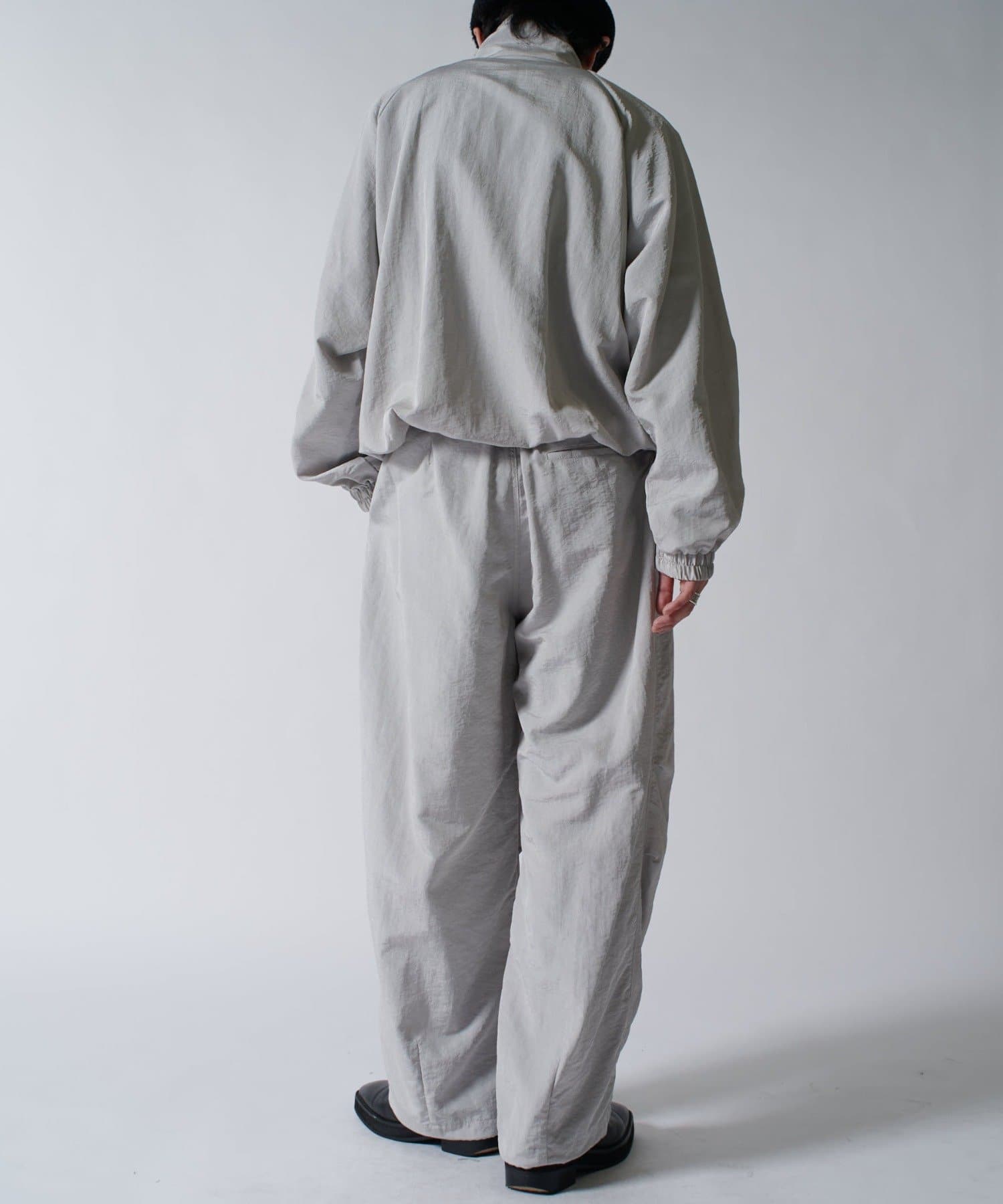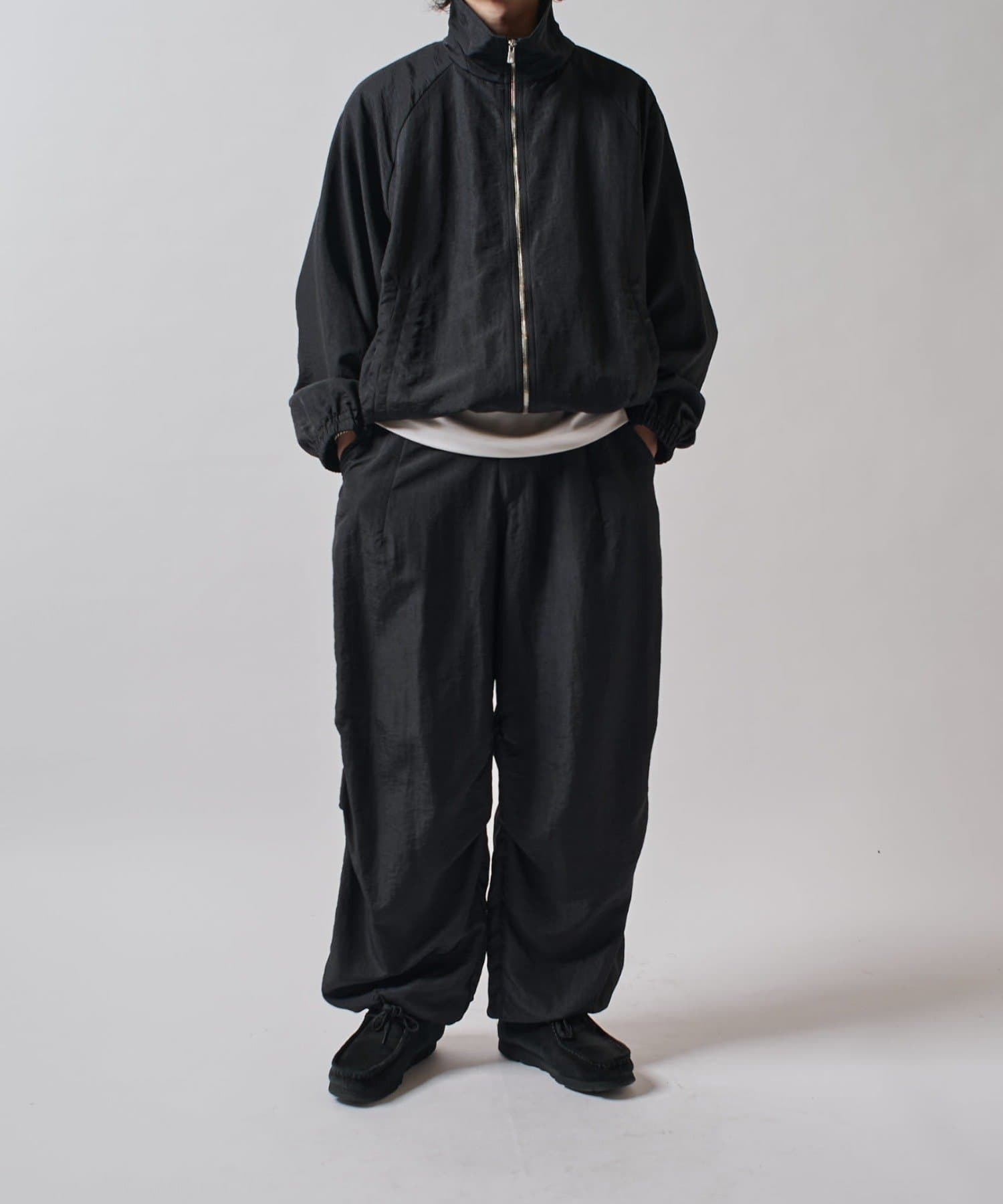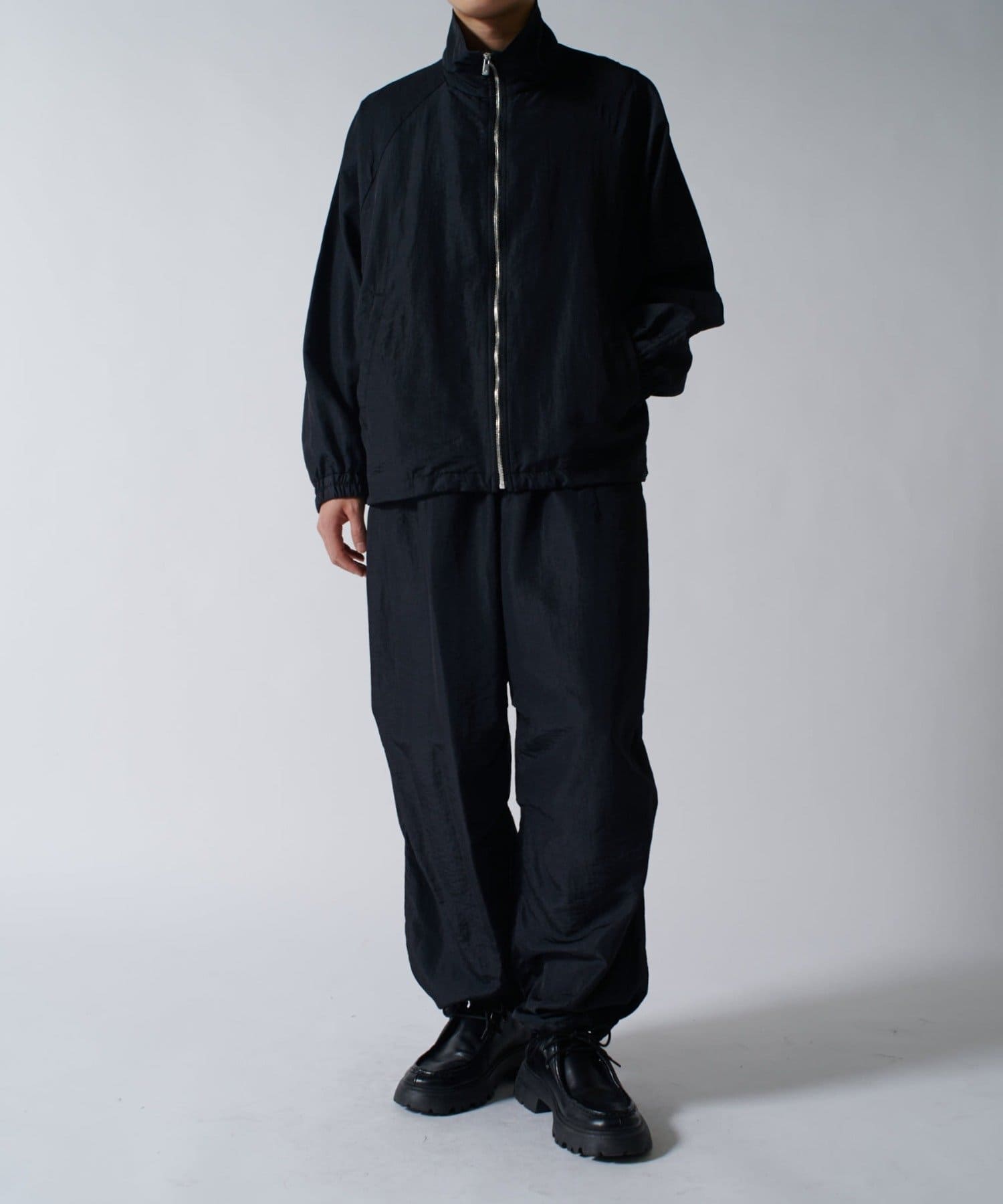 スポーティーかつ上品な見た目のトラックジャケットなので、クルーネックのスウェットやニットに、スラックスを組み合わせた都会的なキレイなストリートスタイルがオススメ。また同素材で展開しているトラックパンツと組み合わせたセットアップスタイルもオススメ。