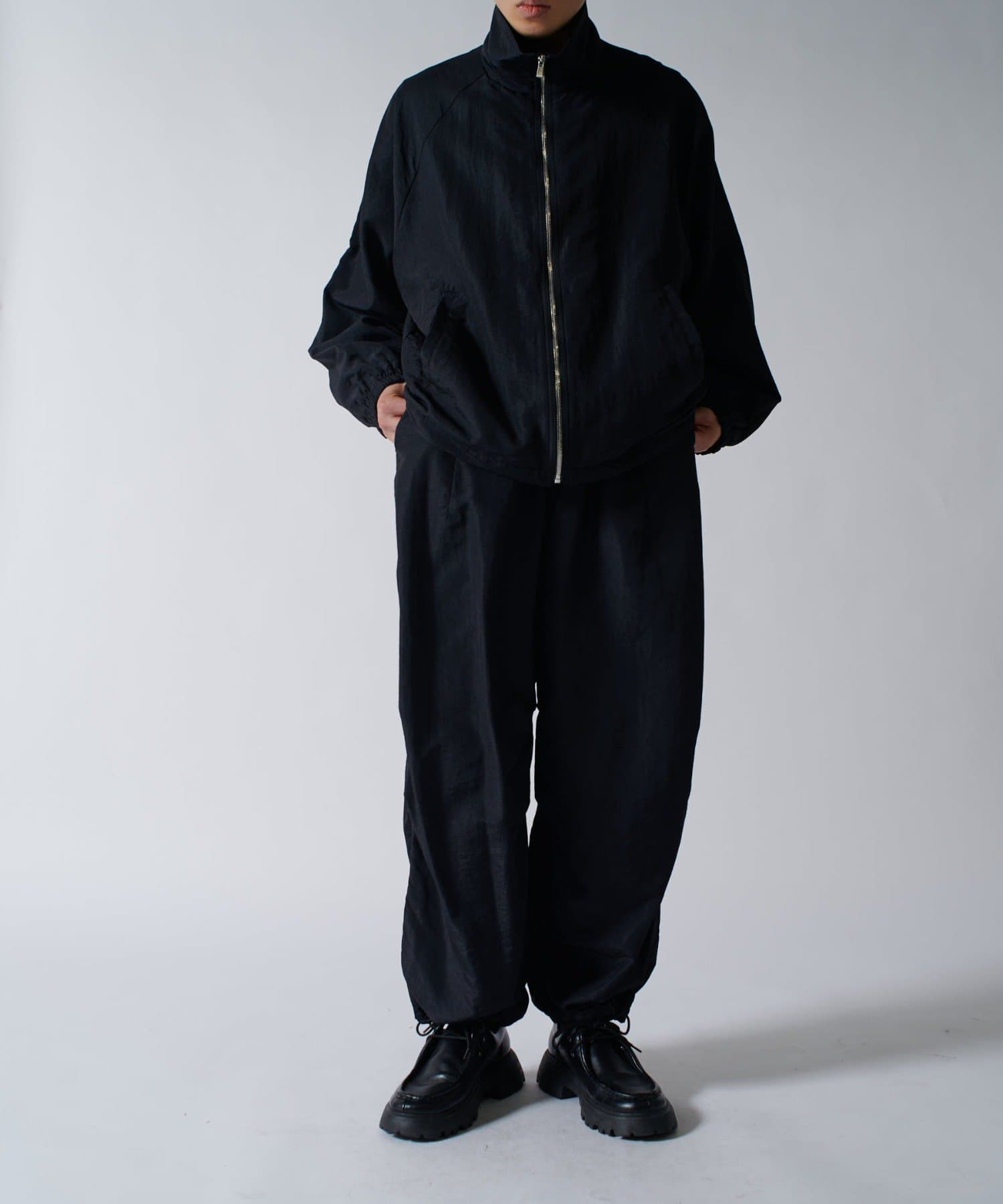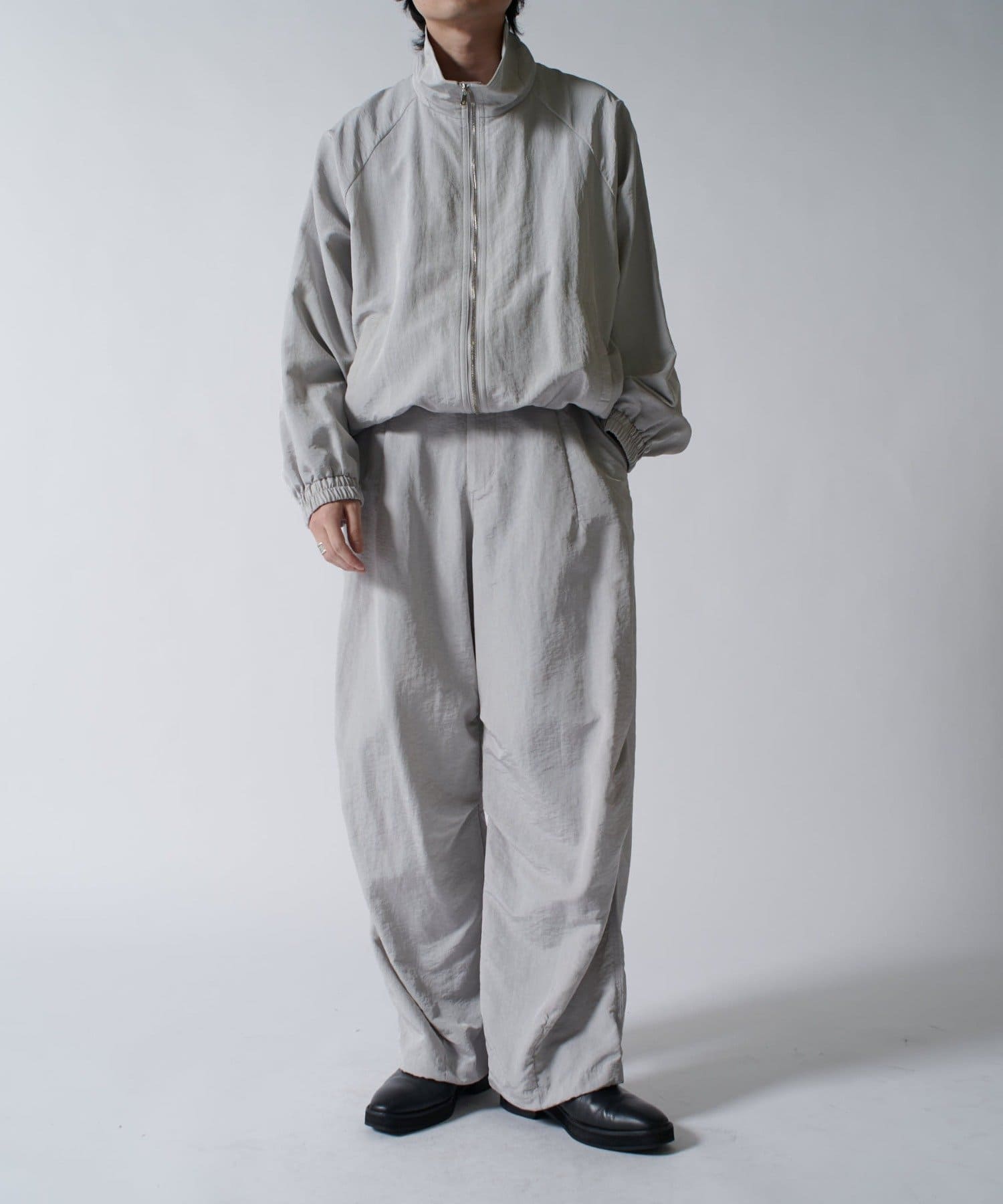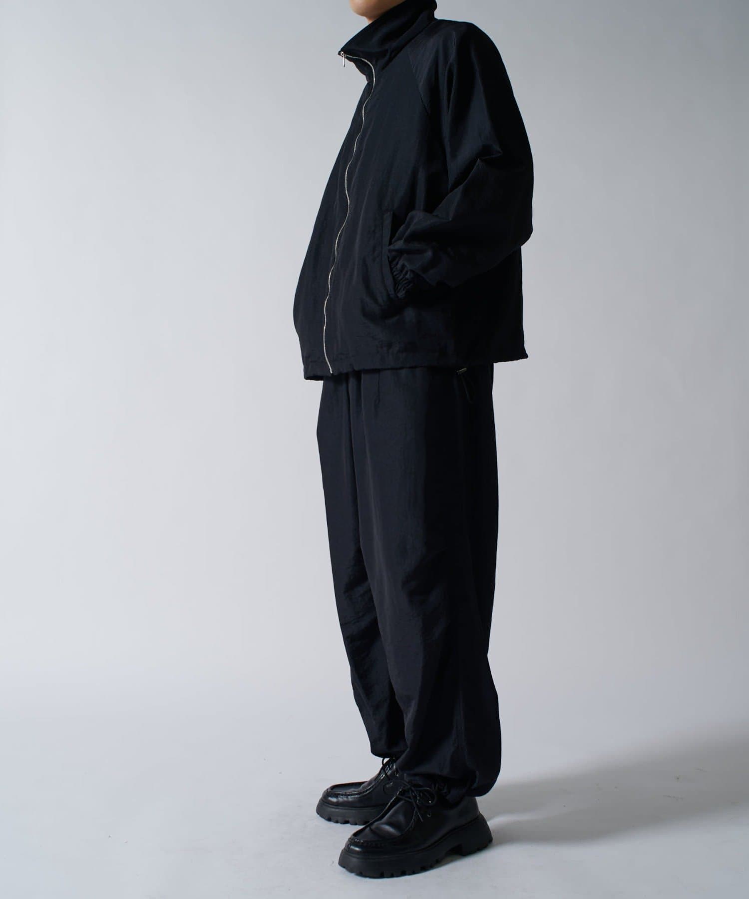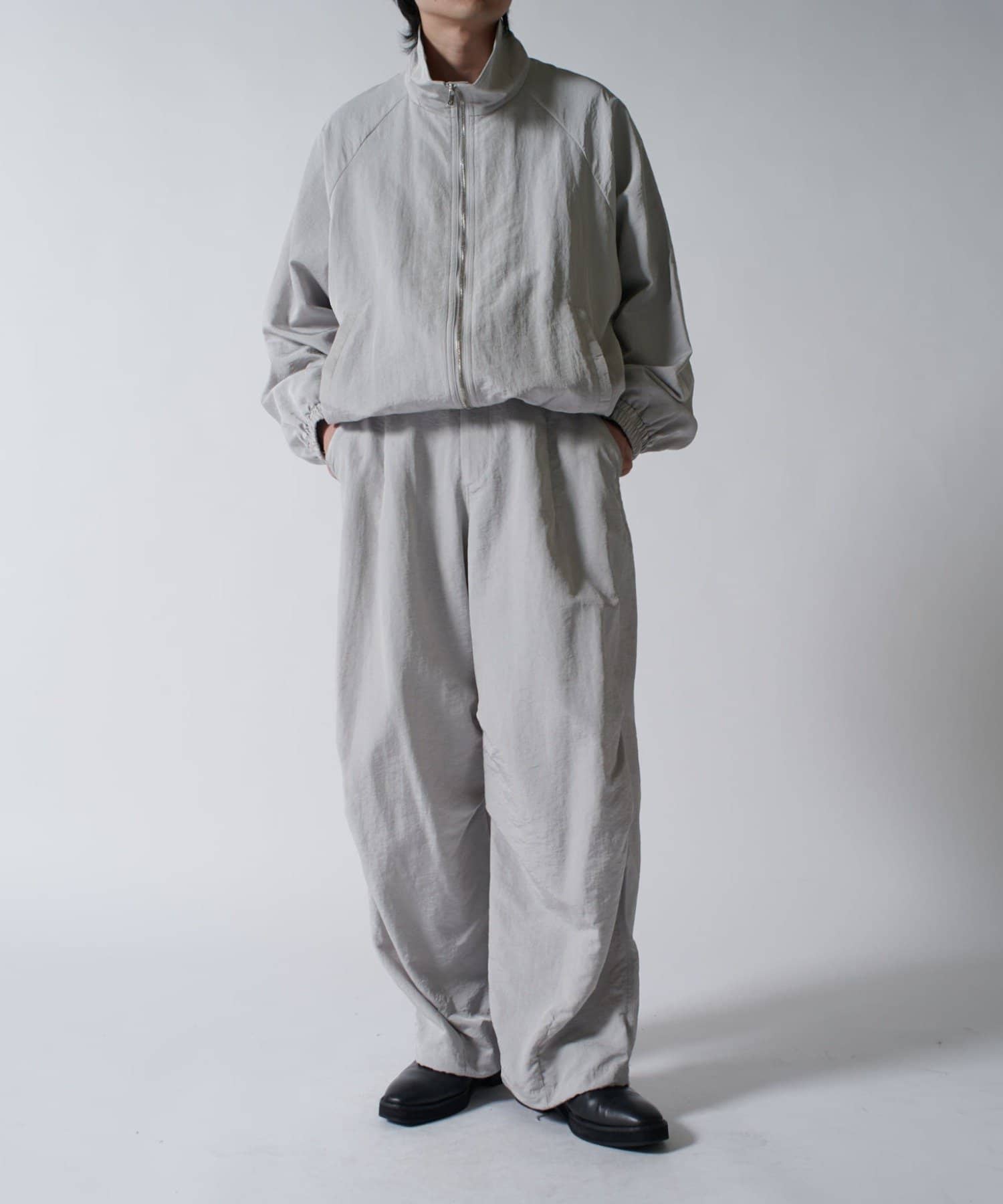 スポーティーかつ上品な見た目のトラックジャケットなので、クルーネックのスウェットやニットに、スラックスを組み合わせた都会的なキレイなストリートスタイルがオススメ。また同素材で展開しているトラックパンツと組み合わせたセットアップスタイルもオススメ。