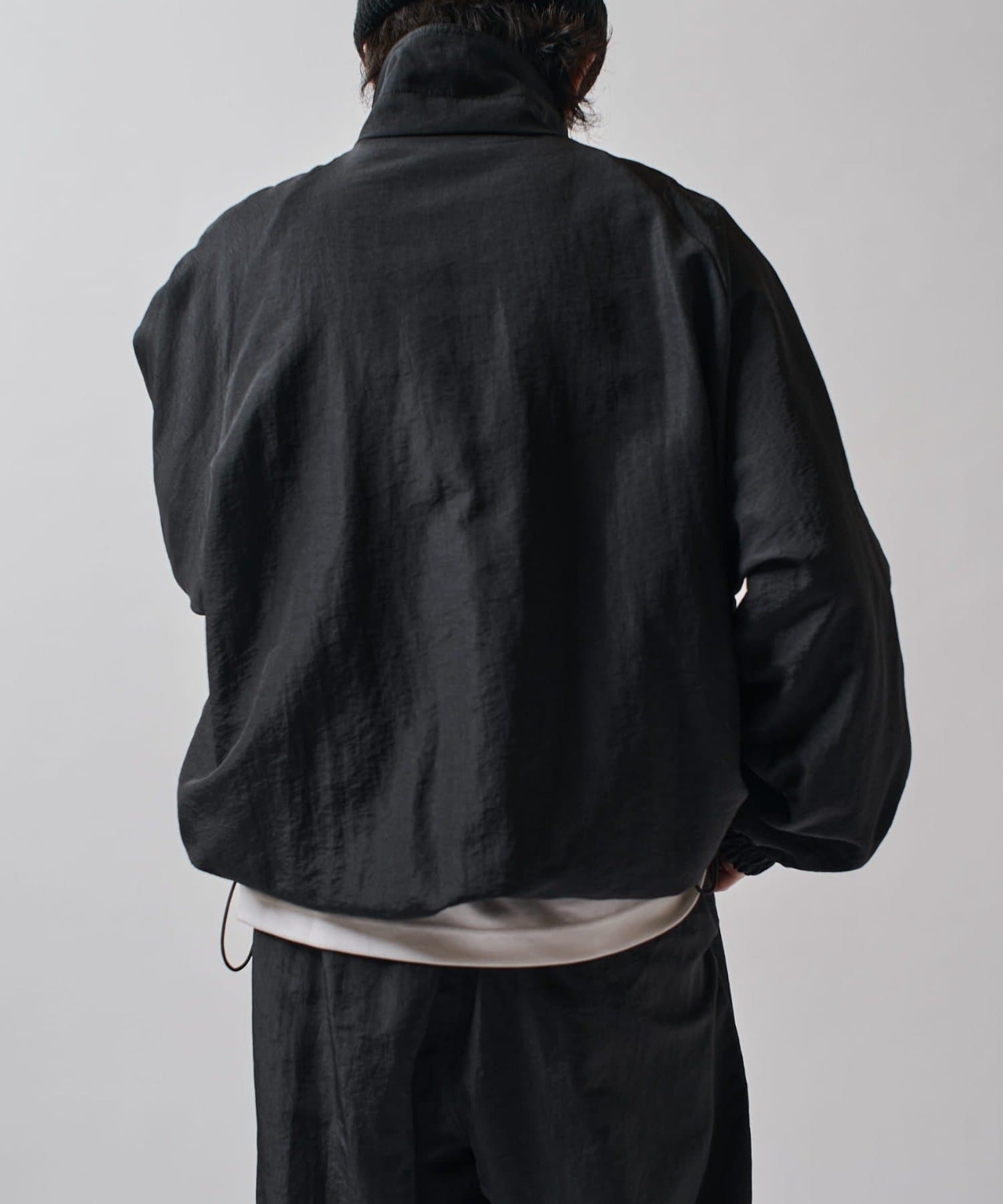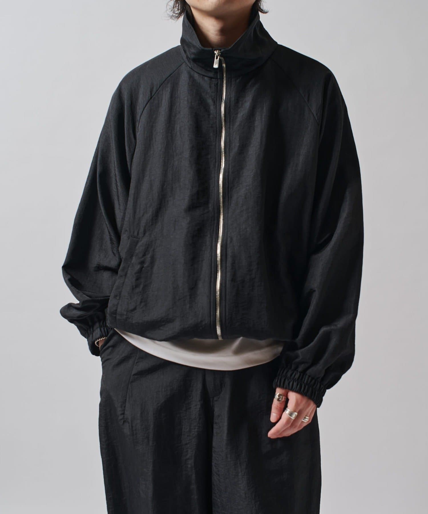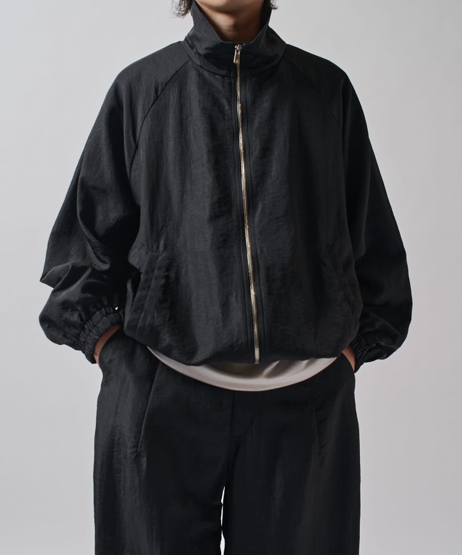 90'sのトラックジャケットをモチーフにして、肩はラグラン仕様にし、裾にはシルエット調節可能なドローコードを配置。リラックスして、夏まで着ていただける気の利いたアイテムです。