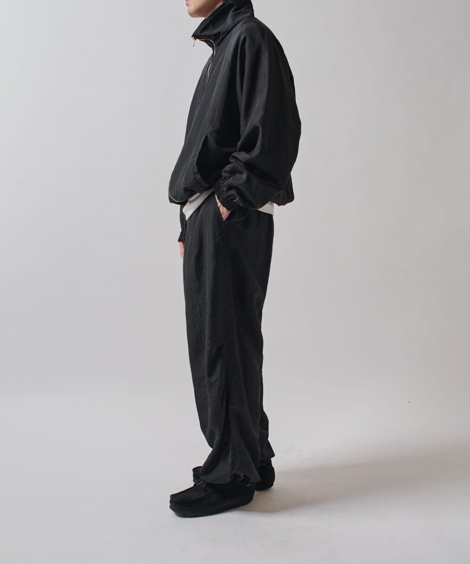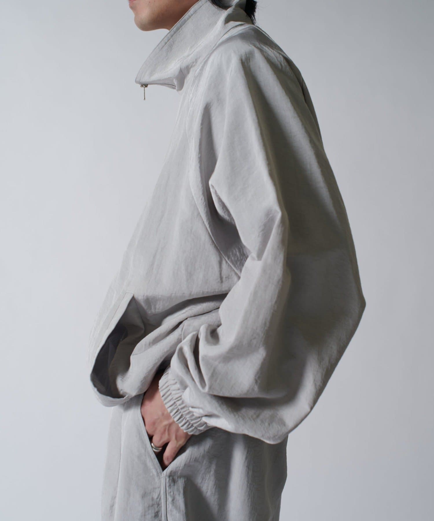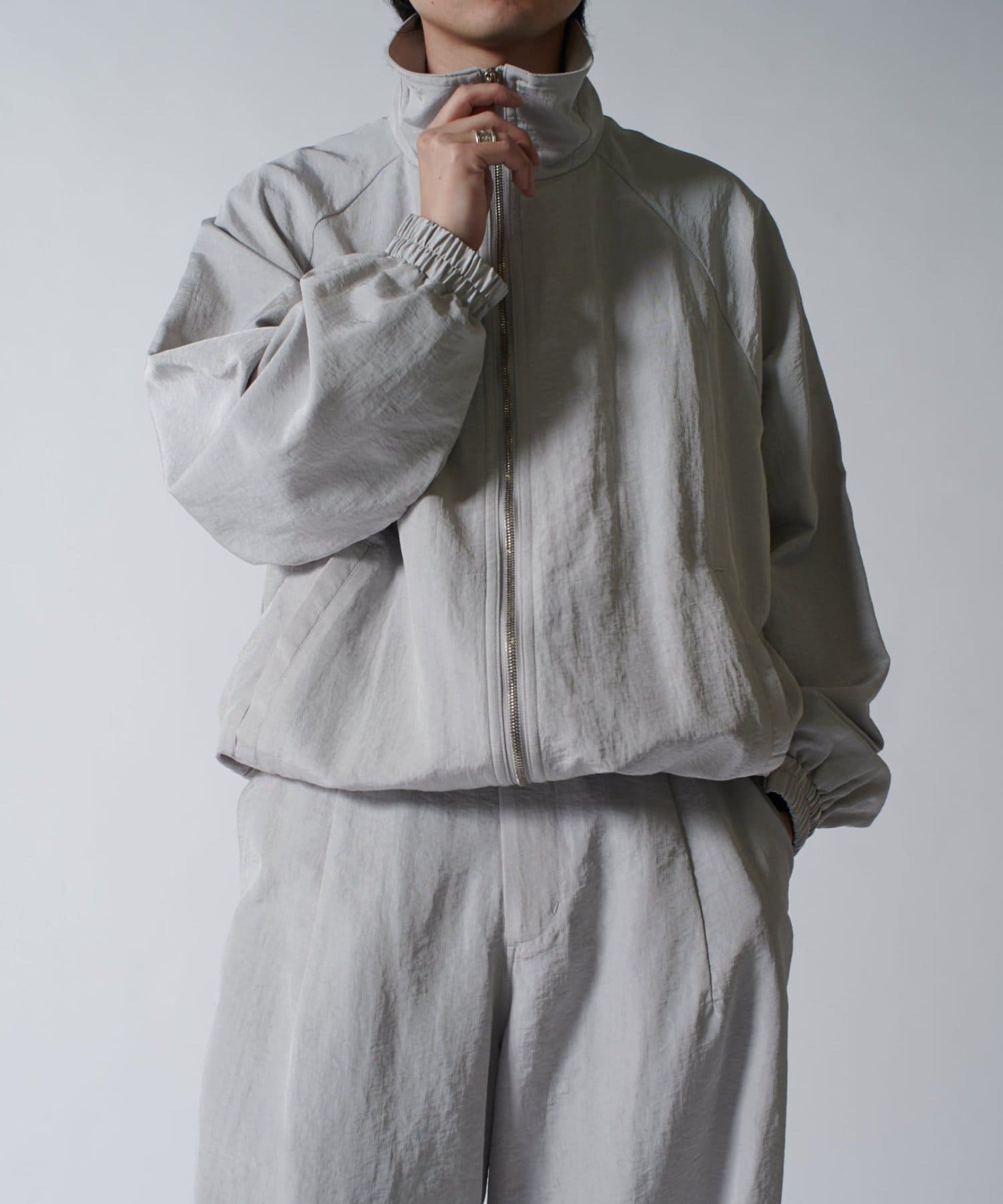 90'sのトラックジャケットをモチーフにして、肩はラグラン仕様にし、裾にはシルエット調節可能なドローコードを配置。リラックスして、夏まで着ていただける気の利いたアイテムです。