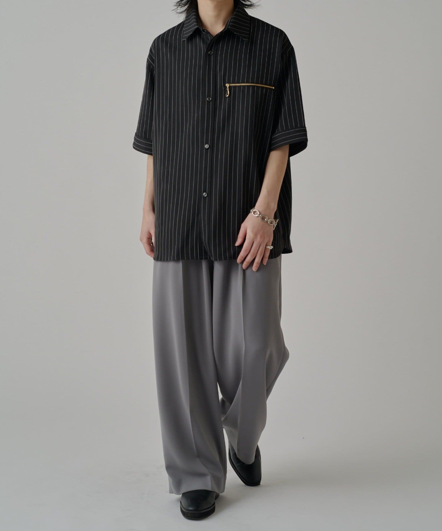 ・広がるようなワイドパンツではなくストンとした落ちるストレートシルエットなので、ワイドパンツを穿いた事がない方でも挑戦しやすいアイテムです。