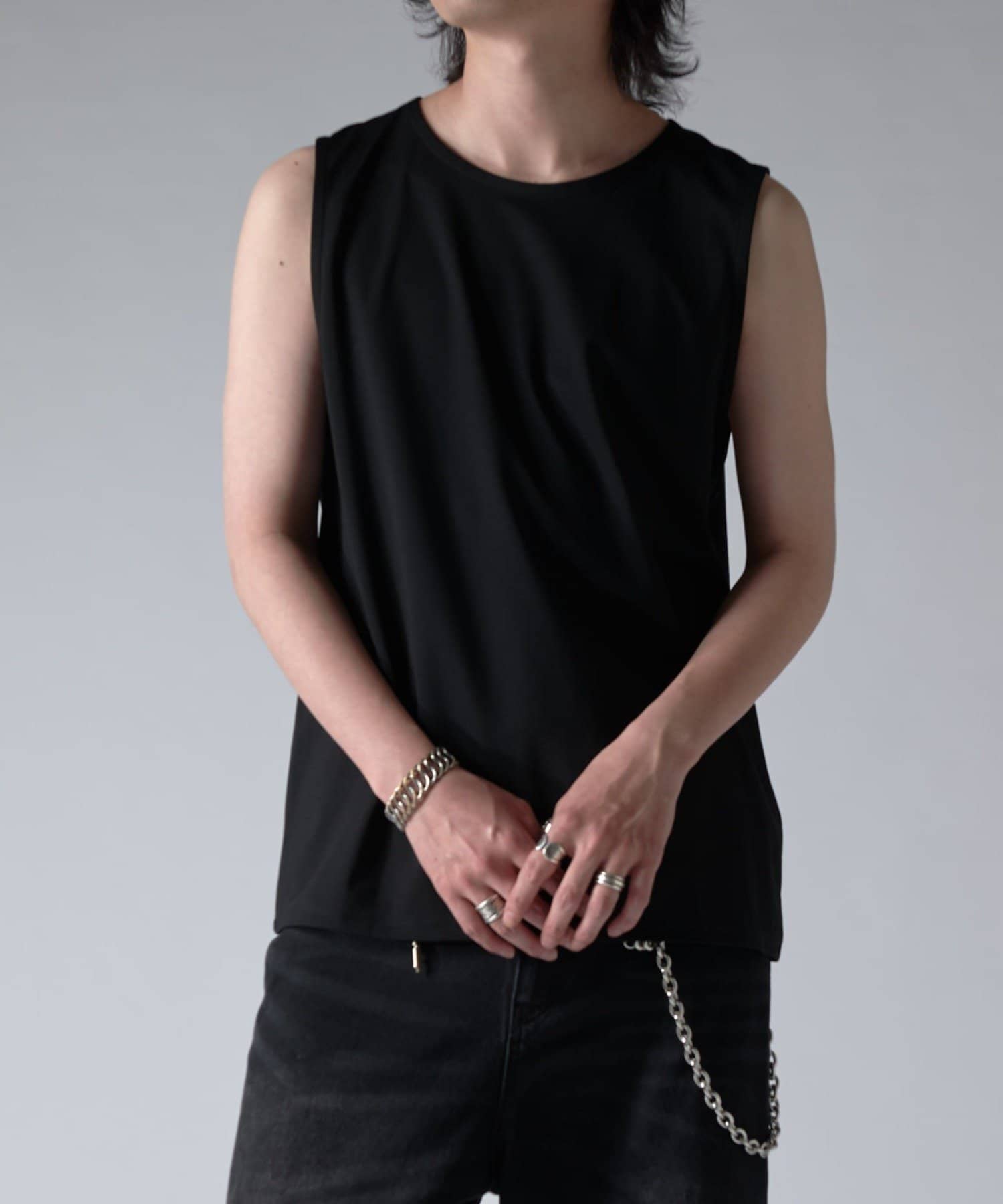 通常のタンクトップよりもやや身幅を広く取っている為、リラックスして着て頂けます。