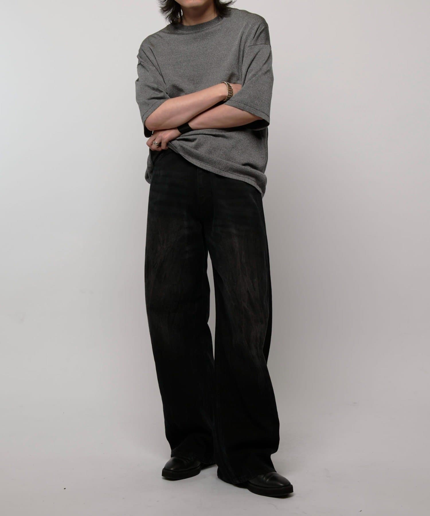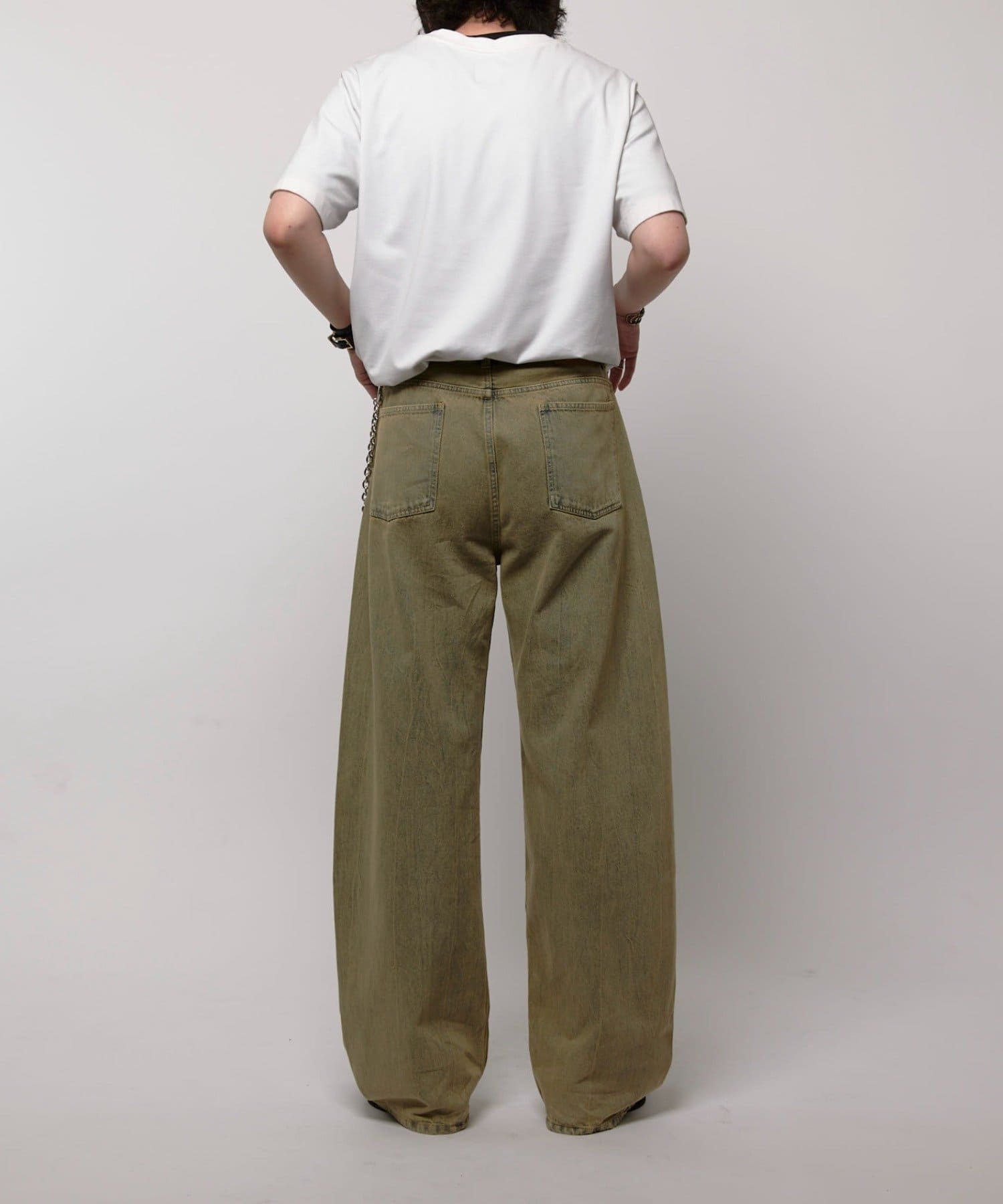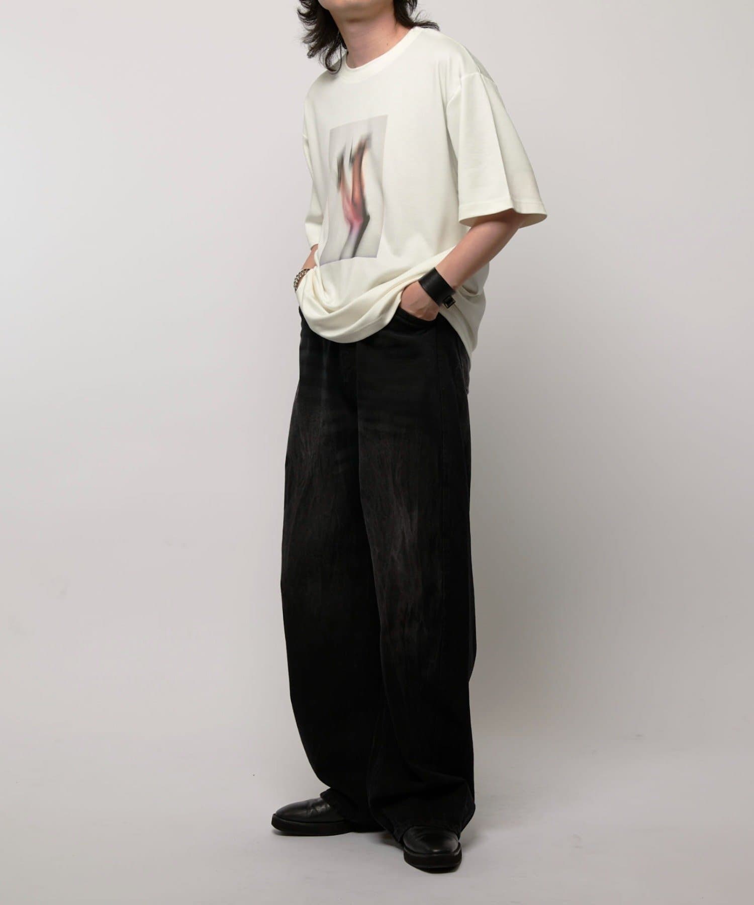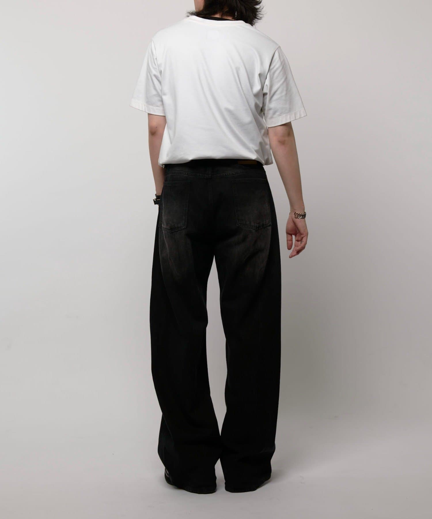 カーブシルエットが特徴的なデニムパンツなので、ベーシックなTシャツや、シャツに組み合わせたキレイめカジュアルなスタイルがオススメです。