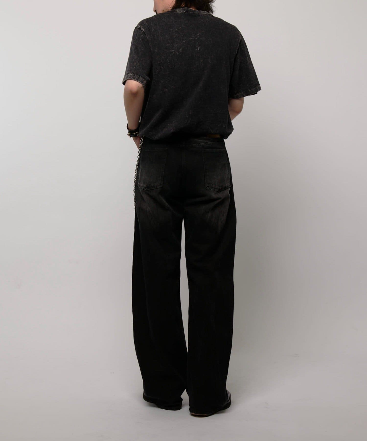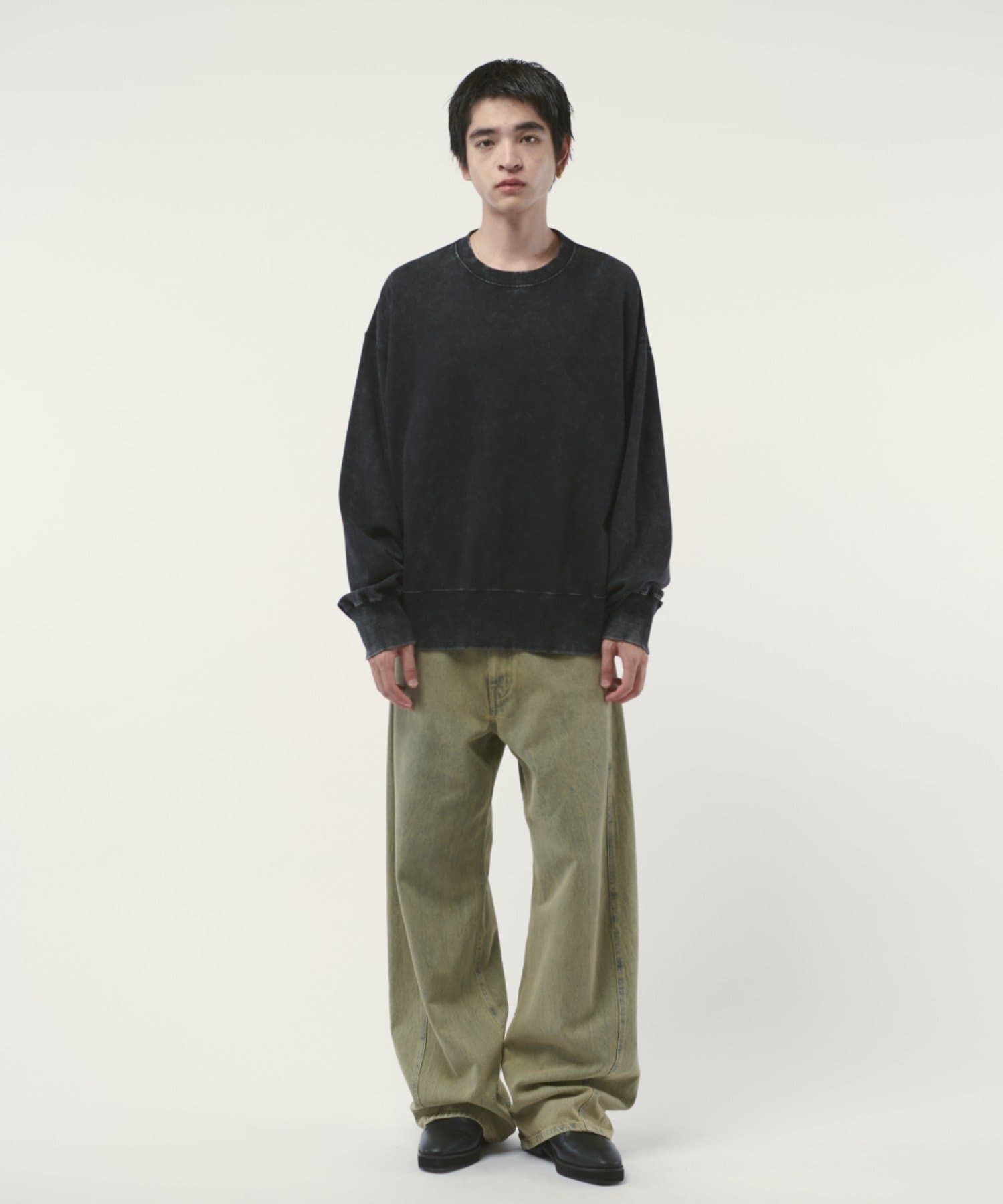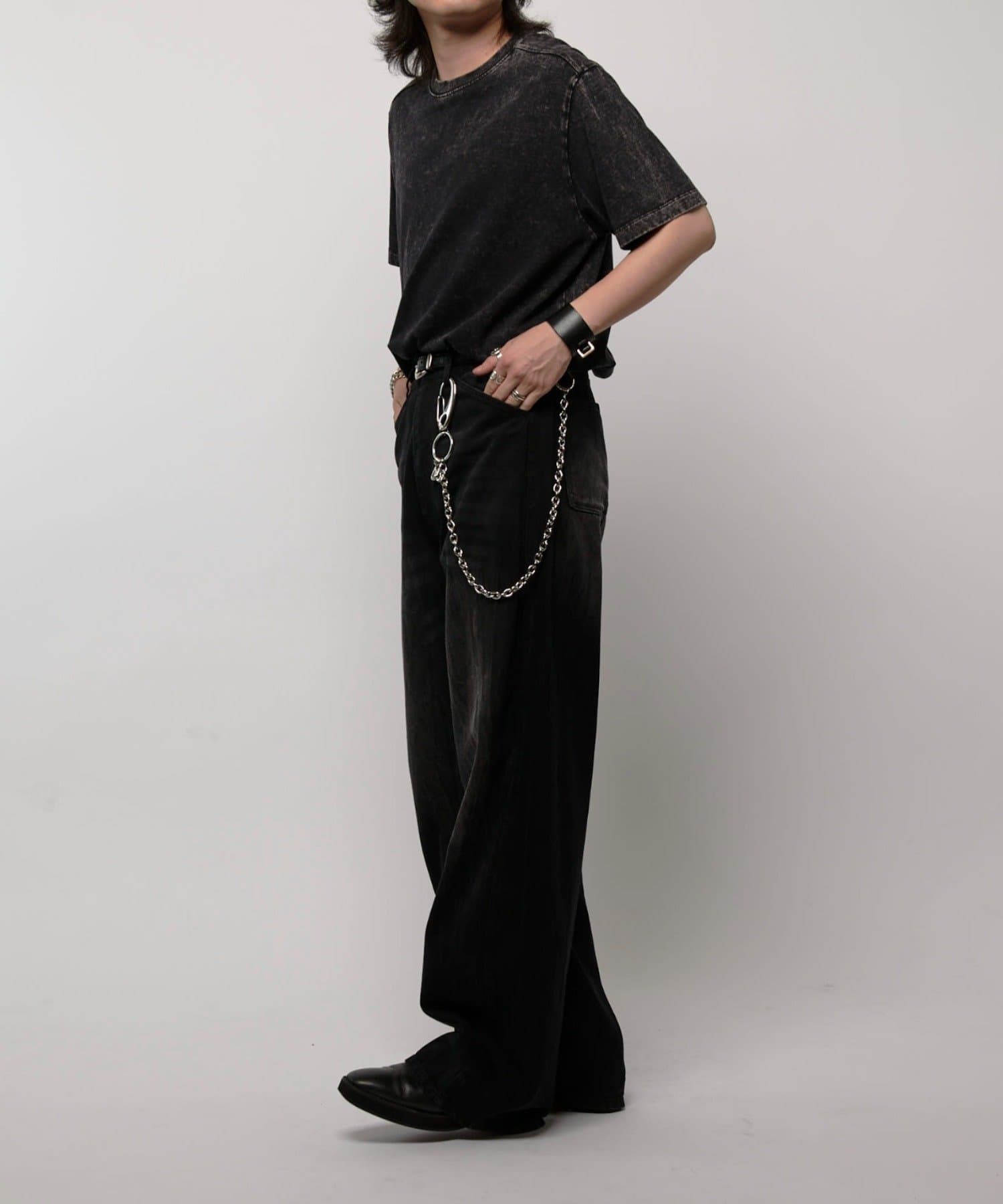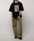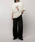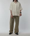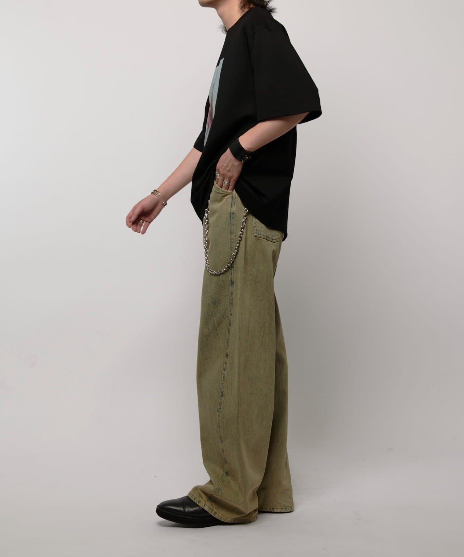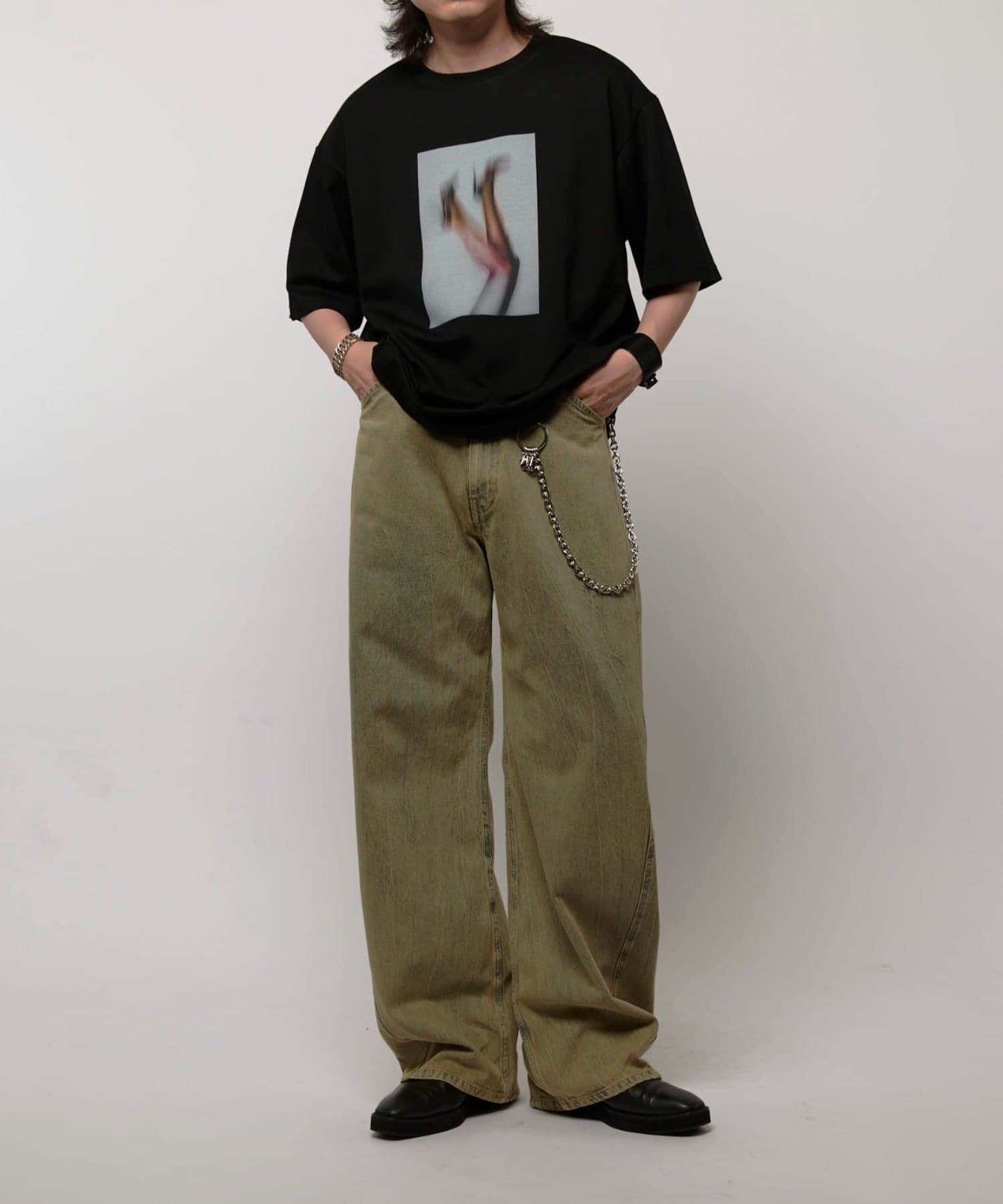 カーブシルエットが特徴的なデニムパンツなので、ベーシックなTシャツや、シャツに組み合わせたキレイめカジュアルなスタイルがオススメです。