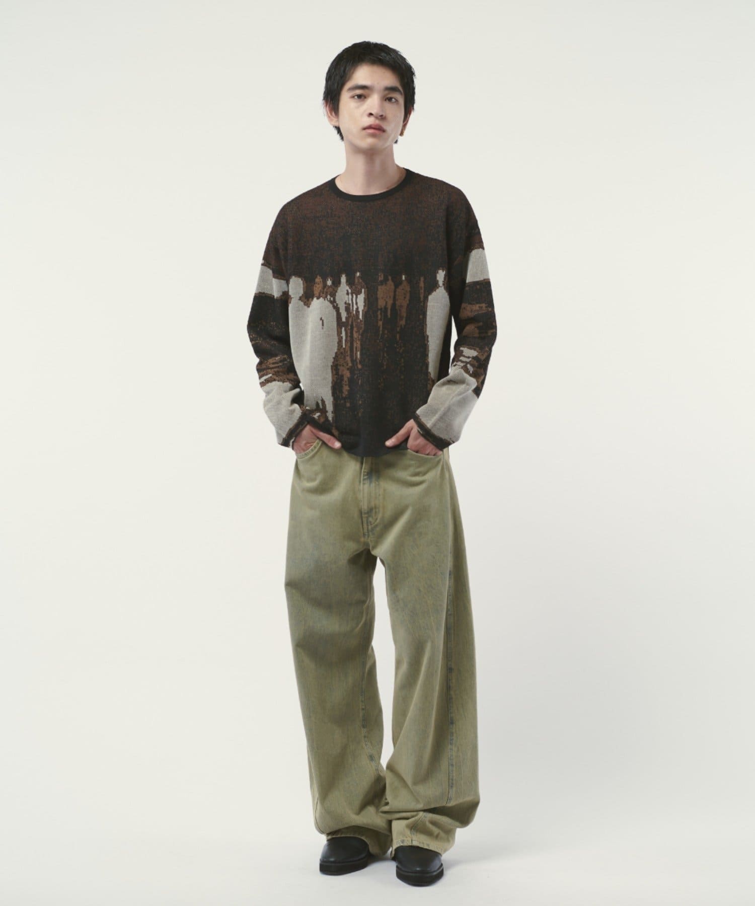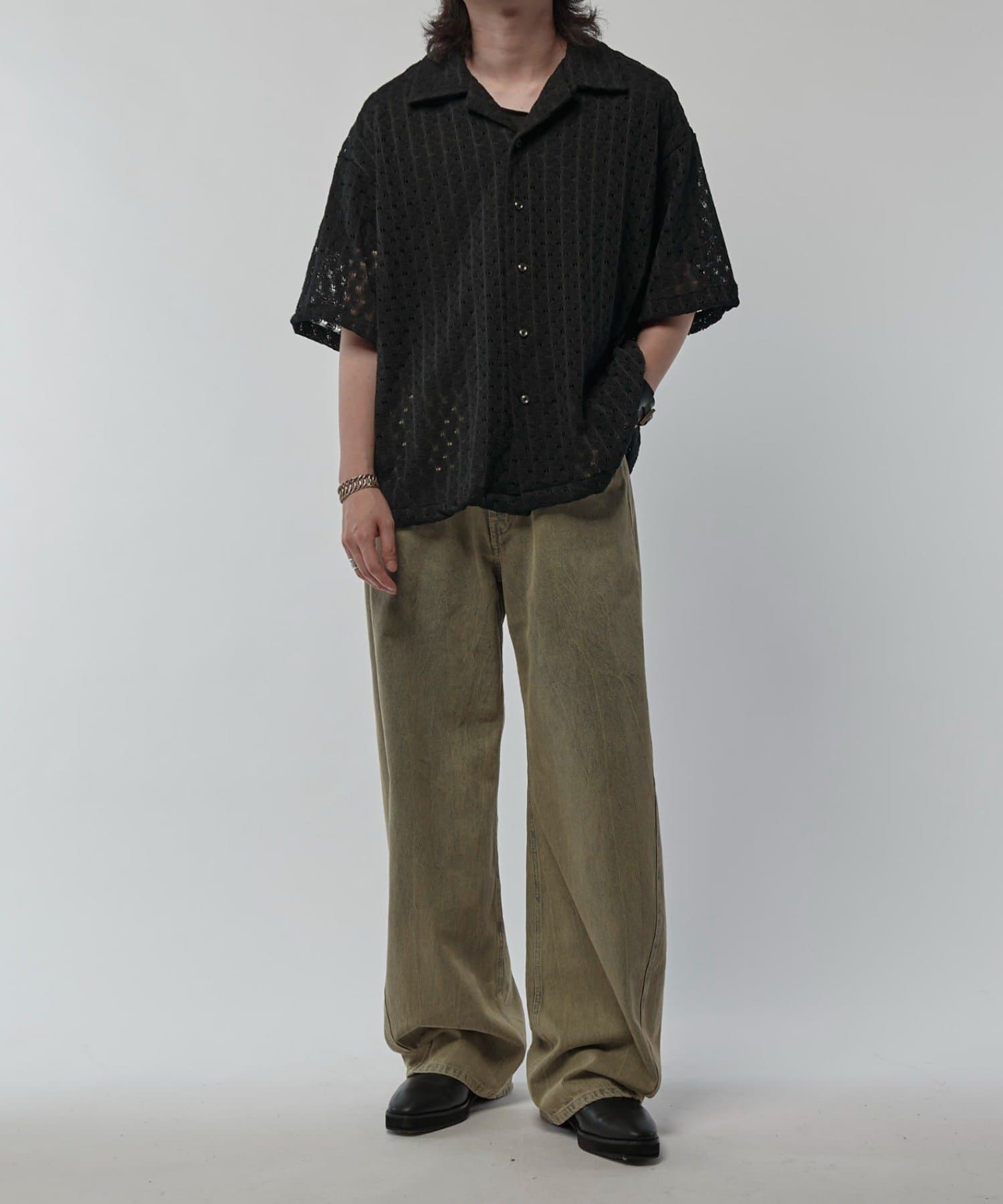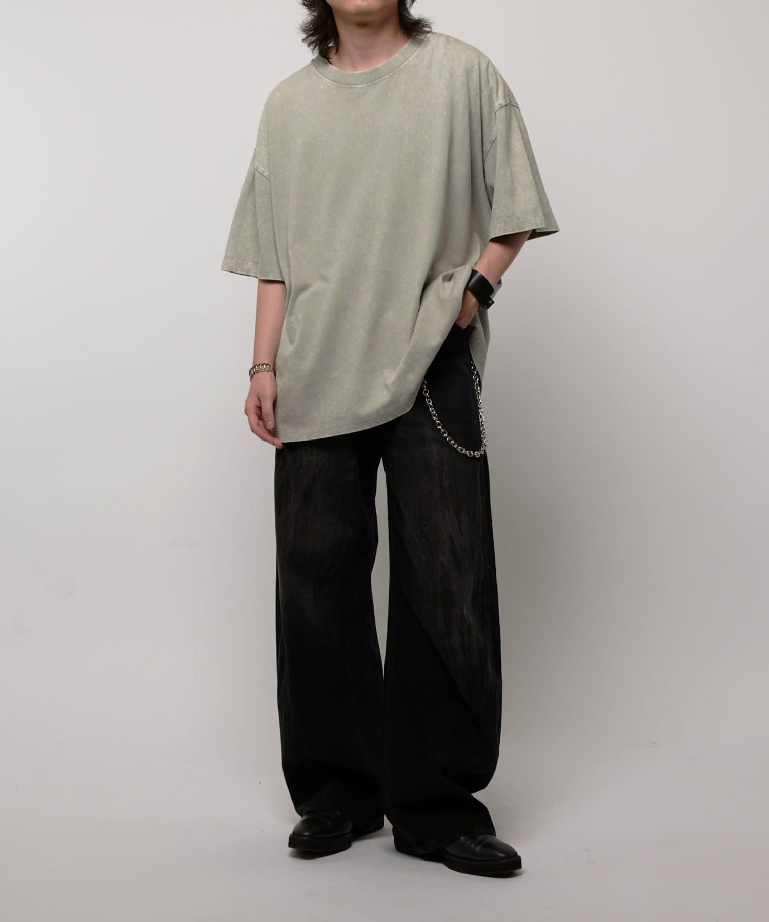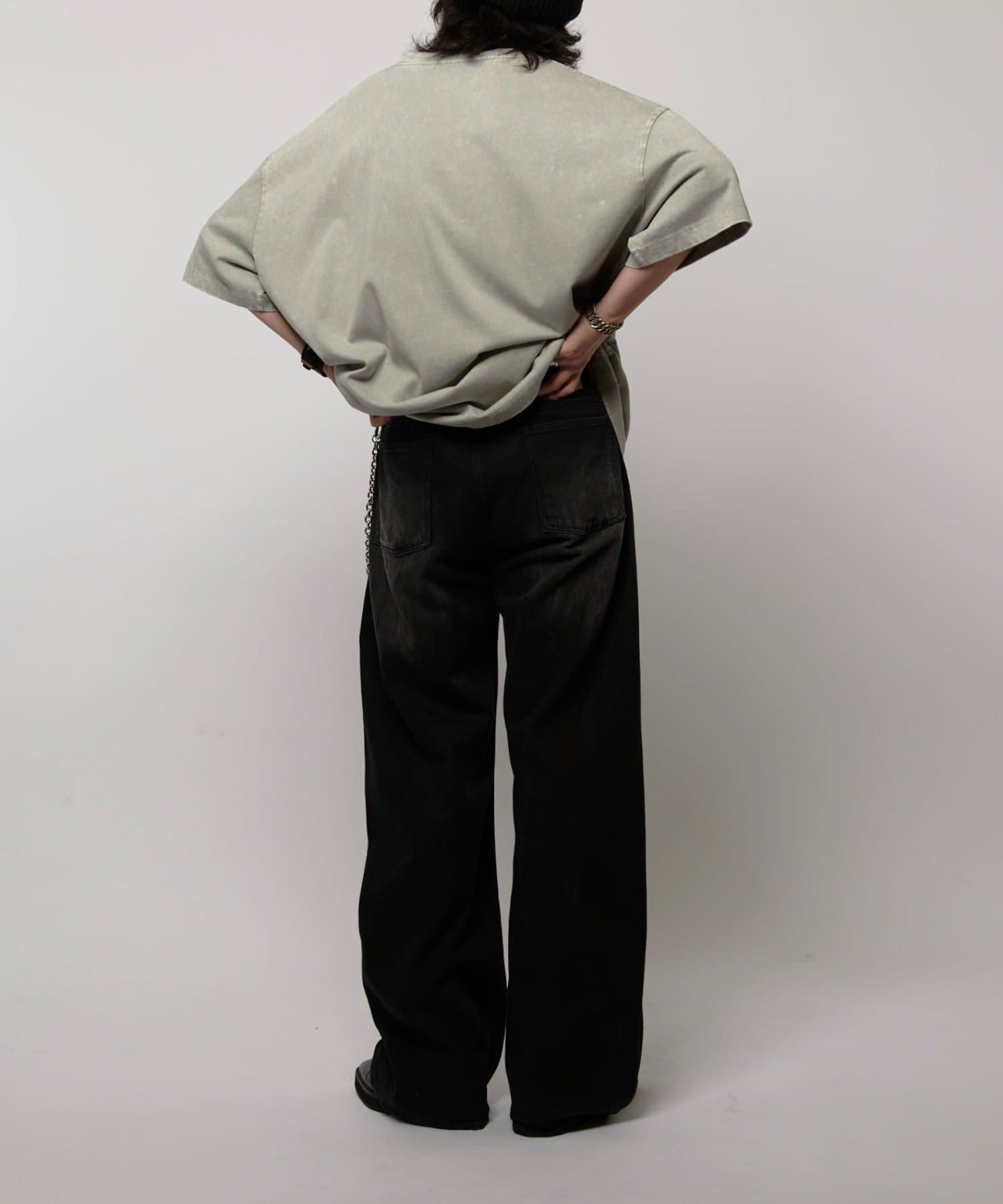 カーブシルエットが特徴的なデニムパンツなので、ベーシックなTシャツや、シャツに組み合わせたキレイめカジュアルなスタイルがオススメです。