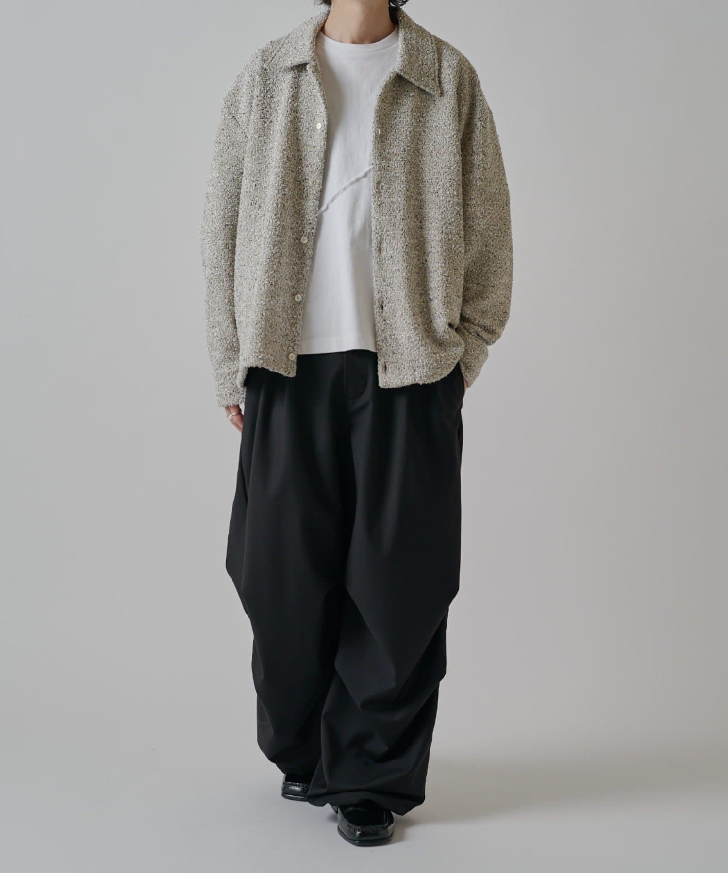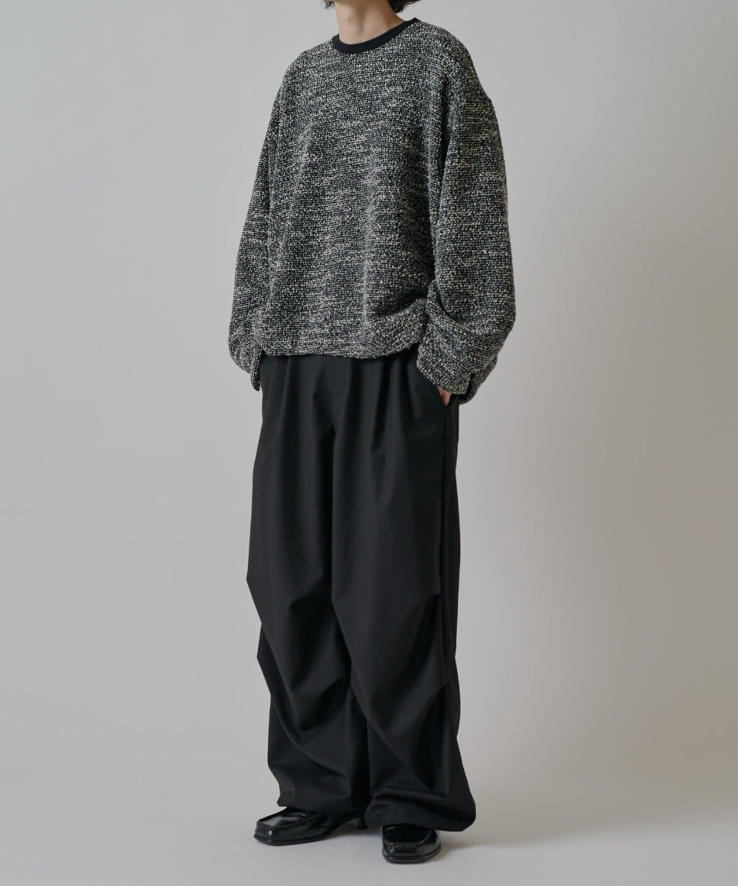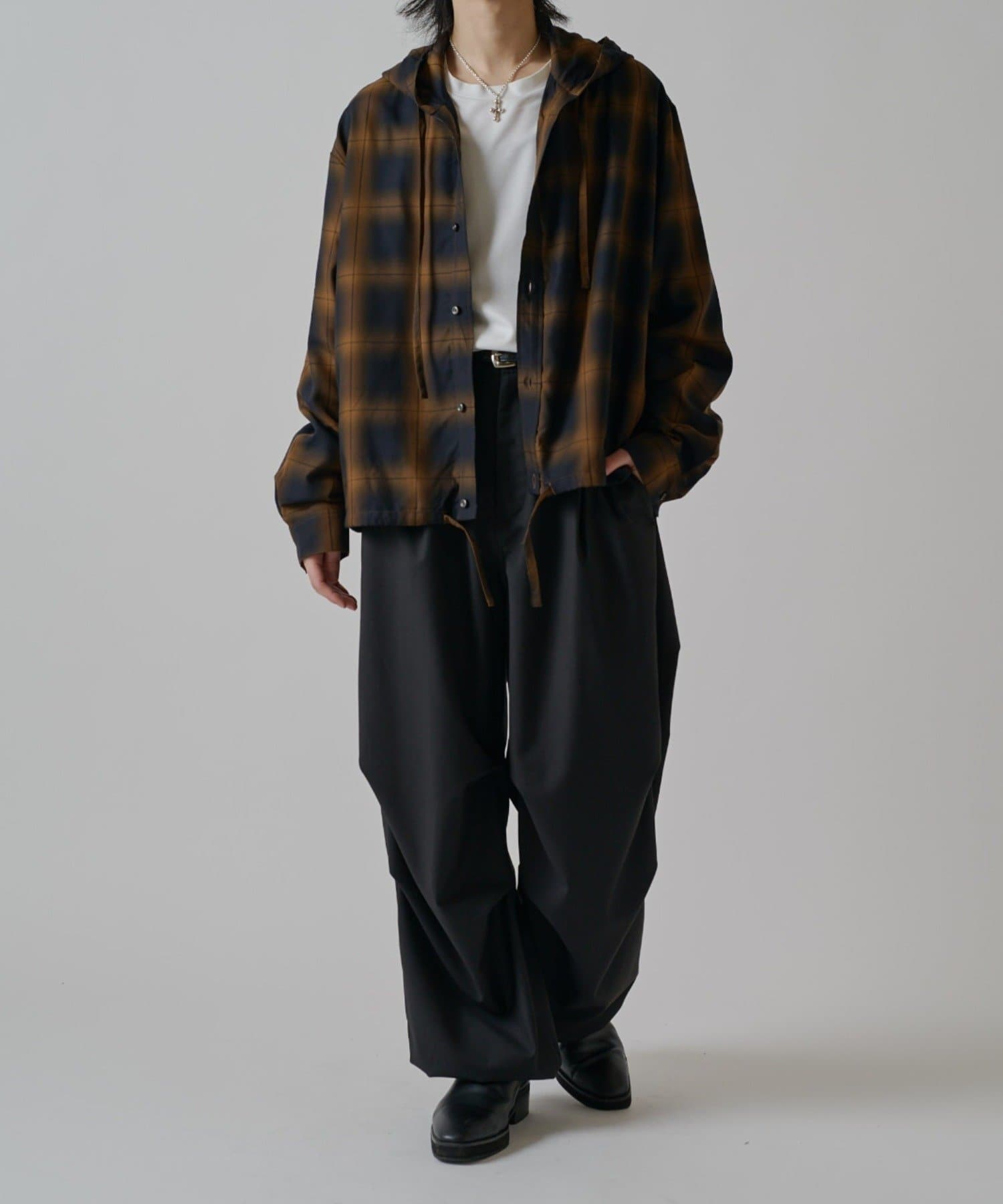 ウエストにはコードを通しており、サイズ調整可能。裾にはドローコードを通しているので、シルエットの調節が可能。キレイめでもカジュアルでも、幅広く着て頂けるアイテムです。