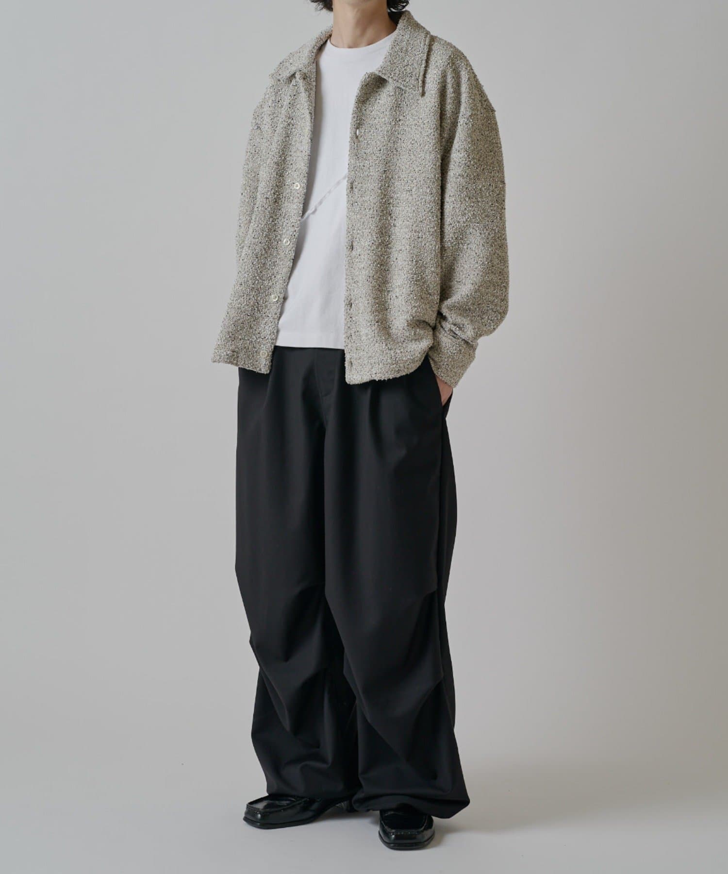 ミリタリーパンツをキレイな素材で表現したこちらのパンツ。ウエストからストンと落ちるワイドシルエット。膝にはタックを施して立体的な見え方に。