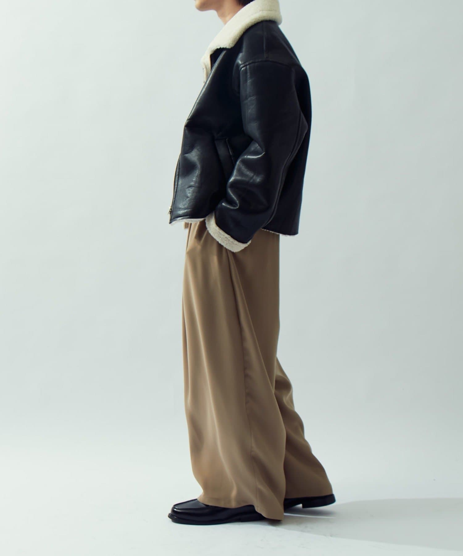 裏地のボアがポイントのシンセティックムートンブルゾン。