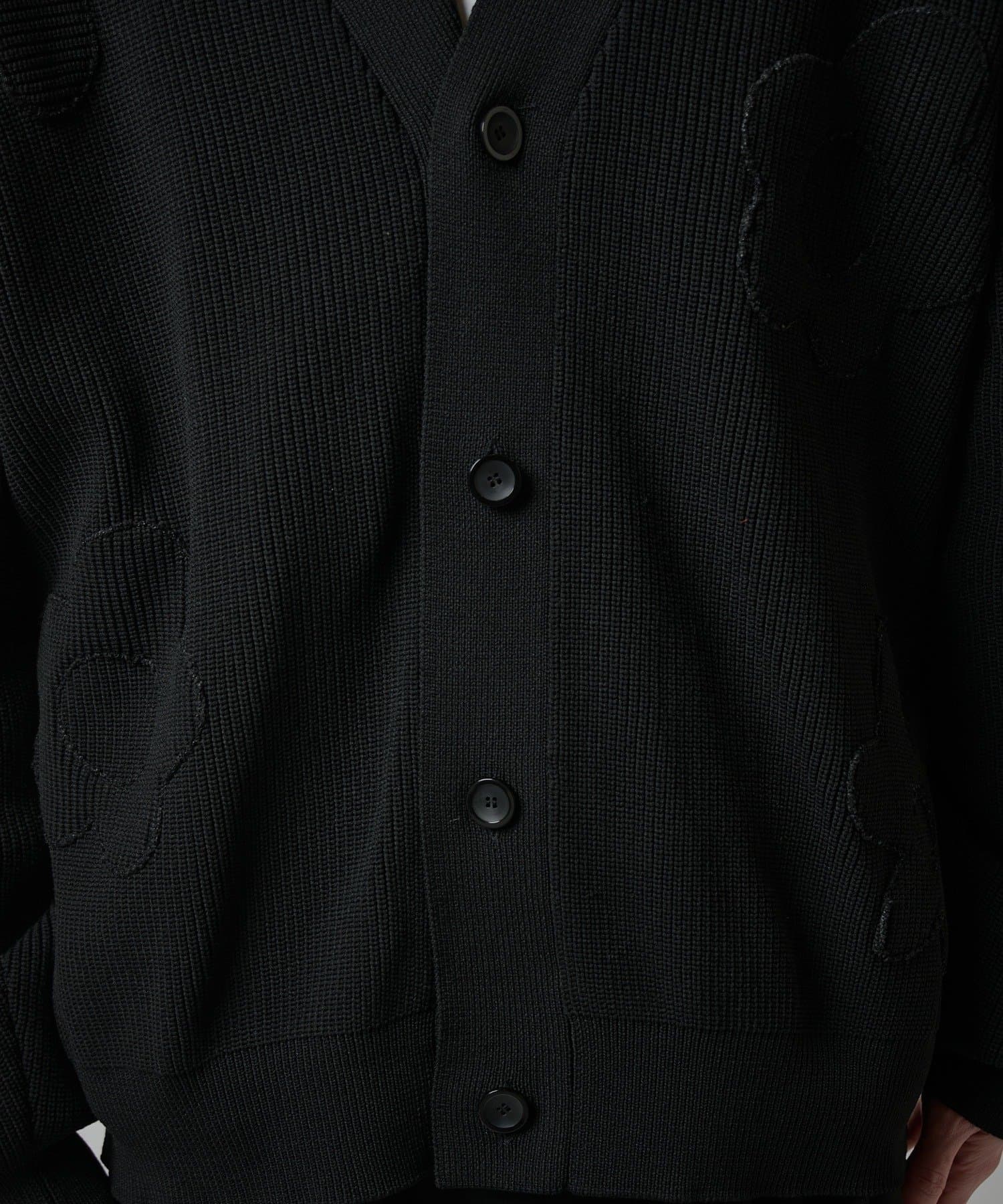 生地の凹凸により花柄を表現したカーディガン。