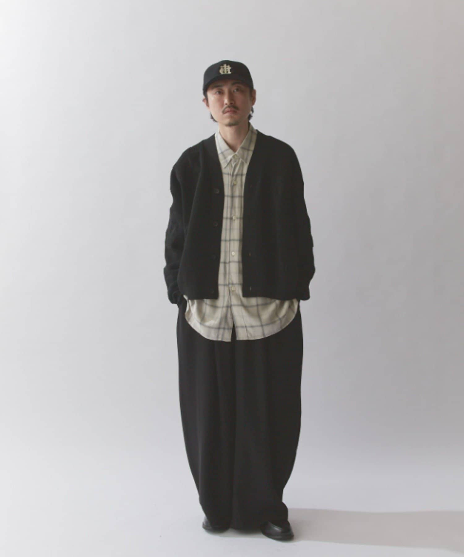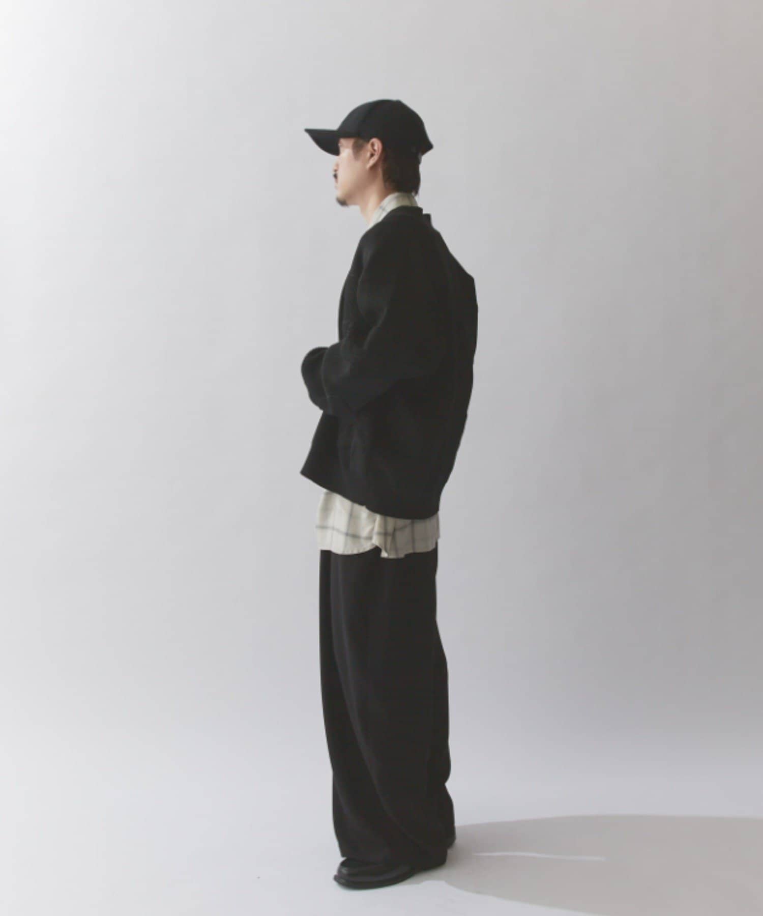 丈はすっきりとしておりますが、身幅と腕周りはボリュームがあるので様々なインナーと合わせていただけます。