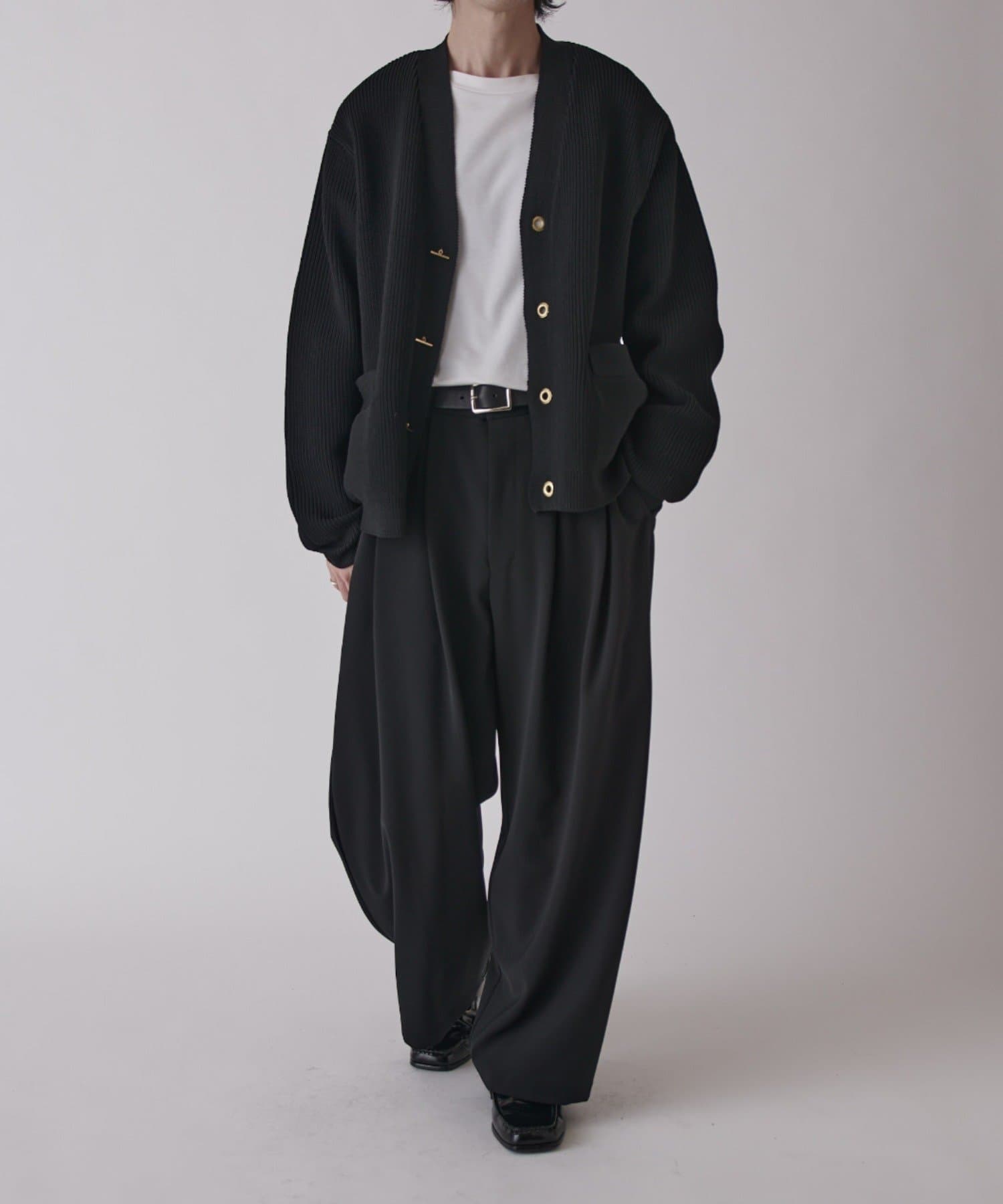 閉じて着た印象と開けて着た印象が、また違った雰囲気を感じられるようなカーディガンです。