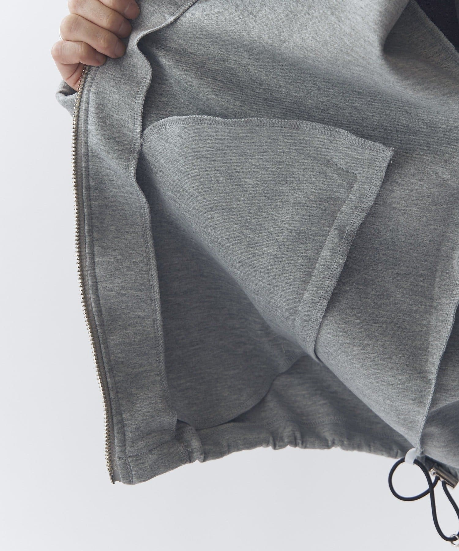 裾にはドローコードがあり、絞ってシルエットの調整をしていただけます。