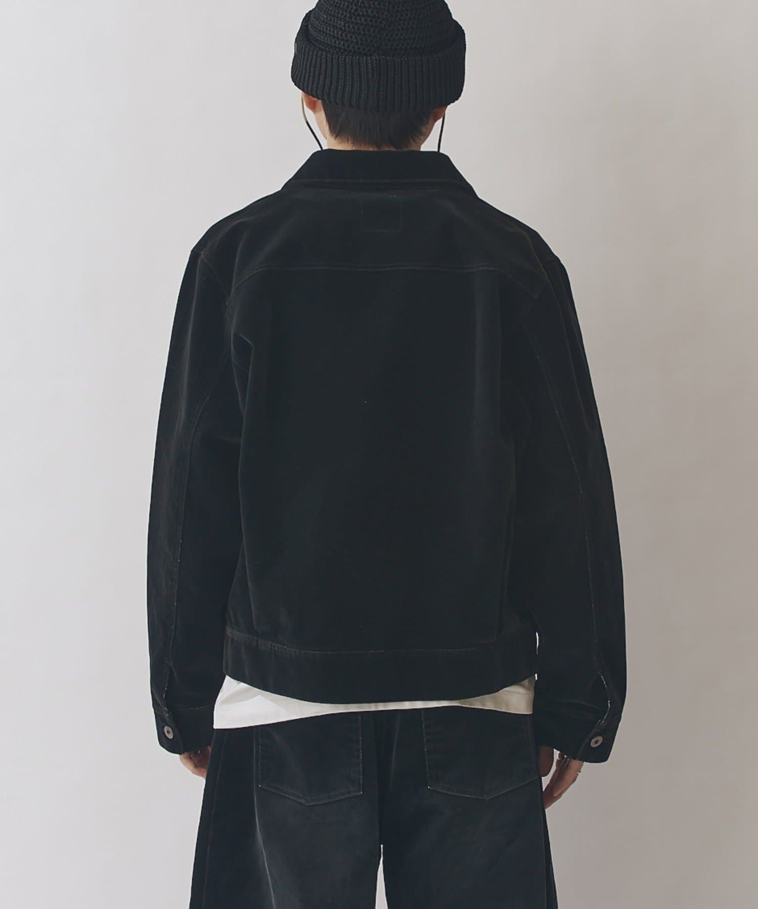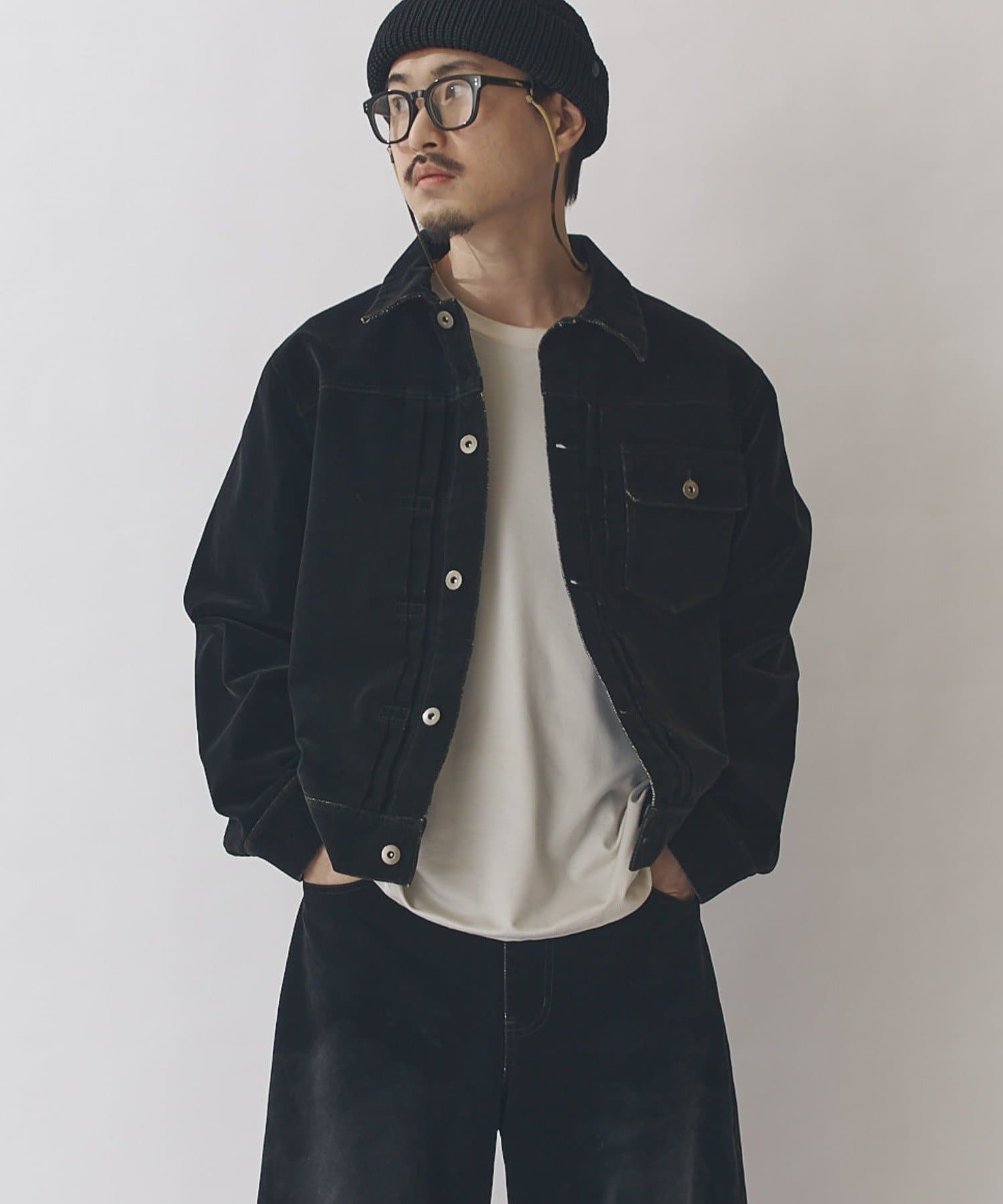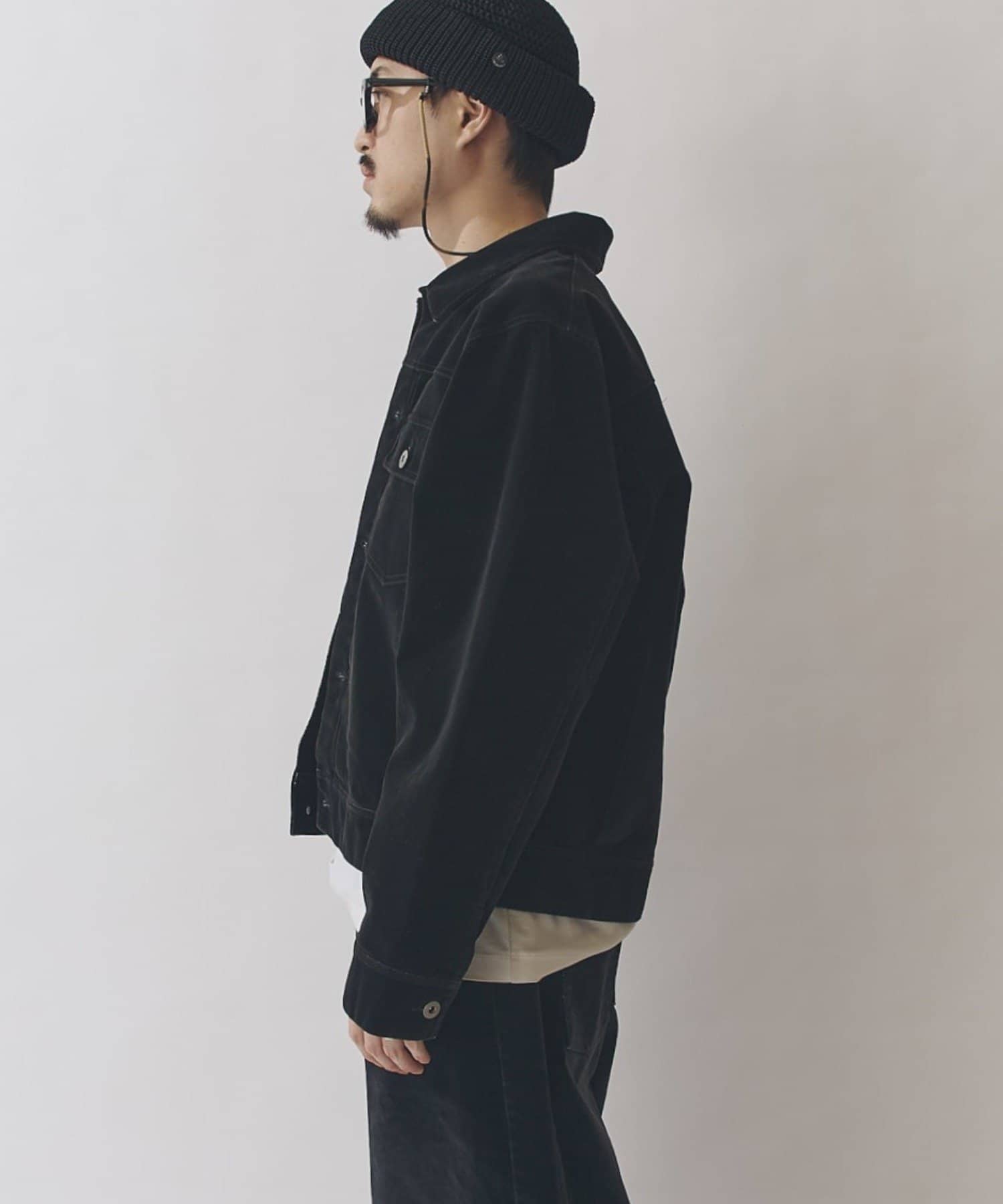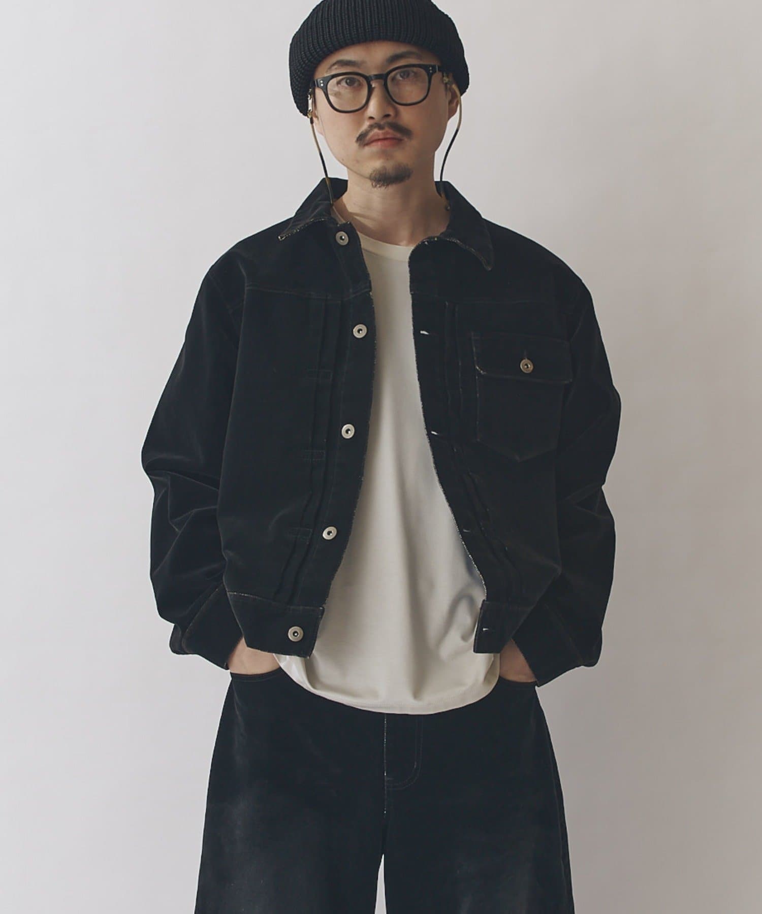 素材には、コットンデニムにフロッキー加工を重ねた、独自の奥行きと質感を持つプレミアムなフロッキーデニムを採用しました。